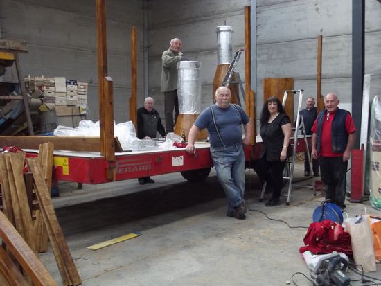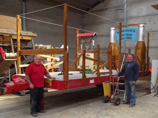 | Dimanche 07 Juin 2015 Construction d'un char, sur le thème de la Madelon servant de la bière à la fraise. |