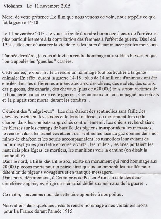 11 novembre 2015 Commémoration de l'armistice 1918 |