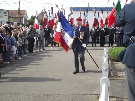Monsieur Jacques Delemotte Porte-drapeau salue alors les autres Porte-drapeau présents
