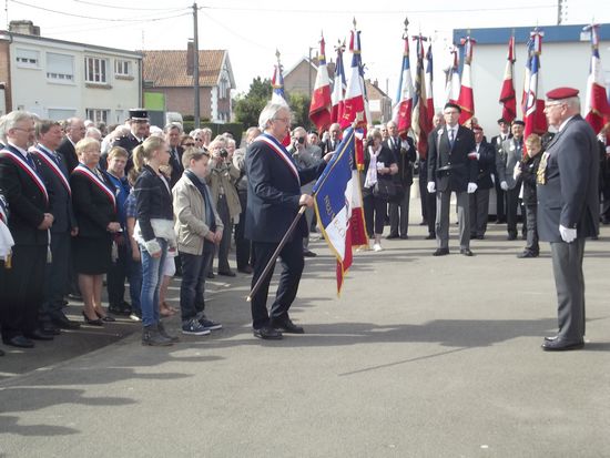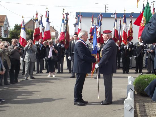Le Porte-drapeau Monsieur Jacques Delemotte reçoit de Monsieur Francis BERNARD, le drapeau.