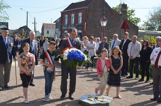 Dépôt de gerbe par Monsieur Jean-François CASTELL, Maire de Violaines, accompagné de