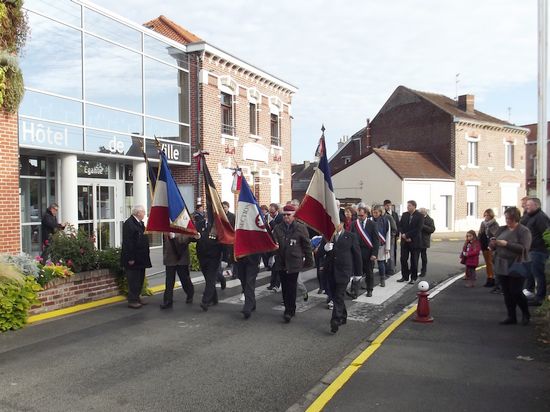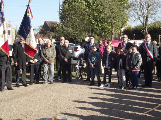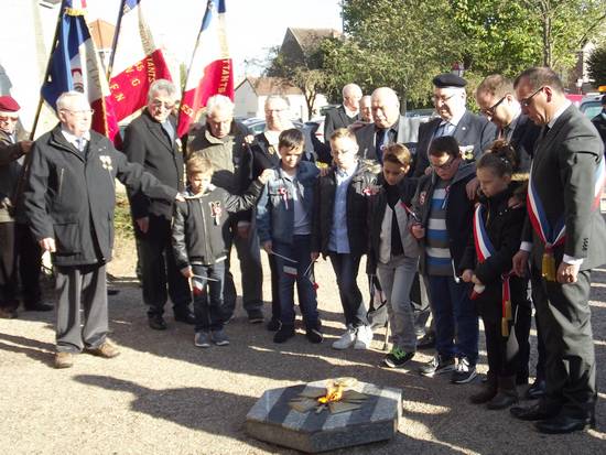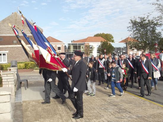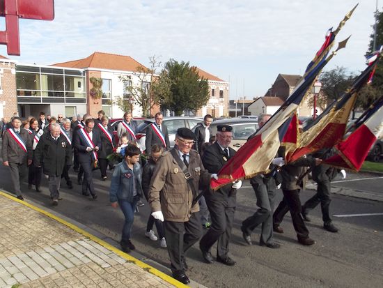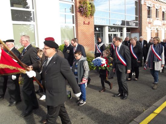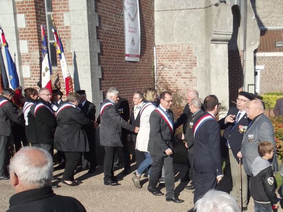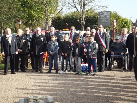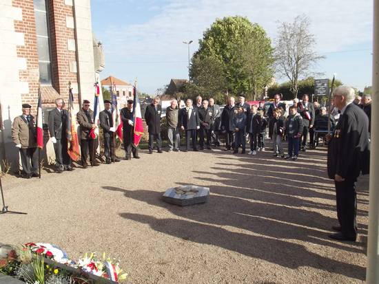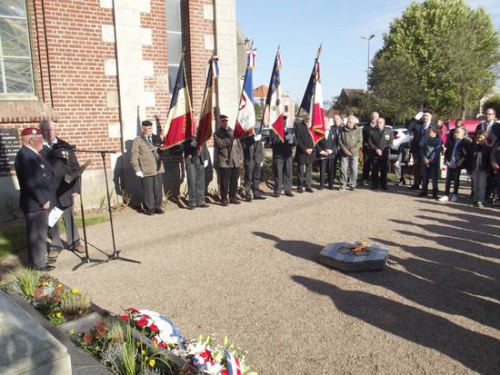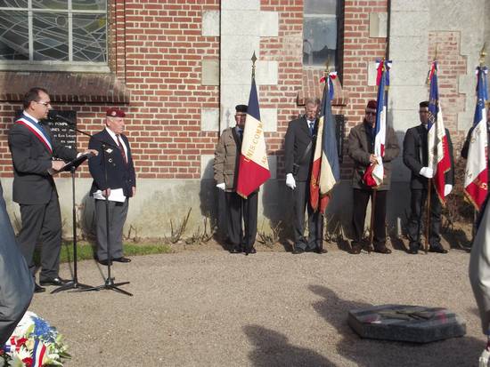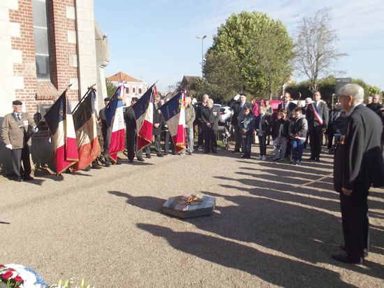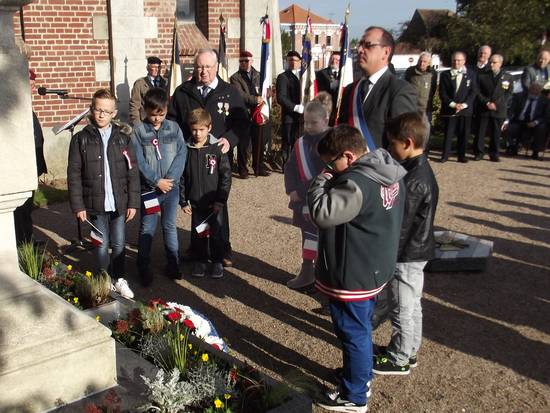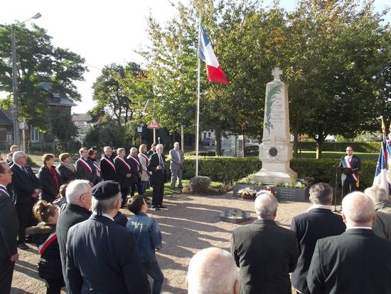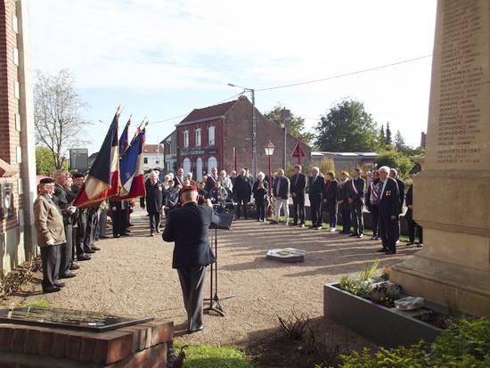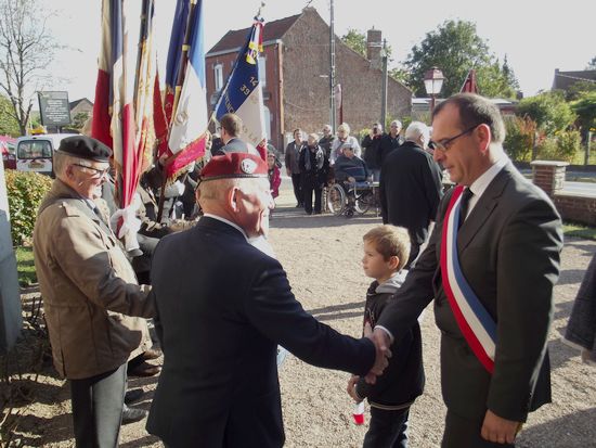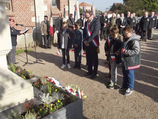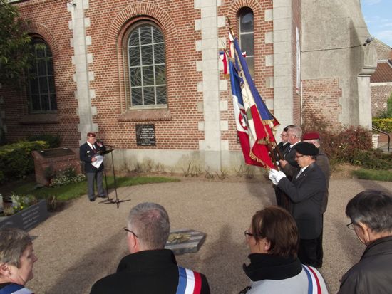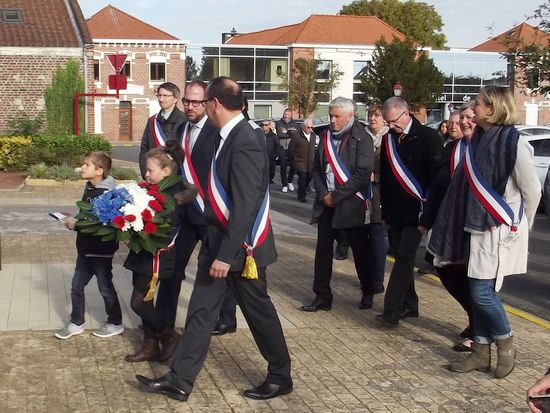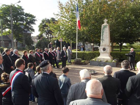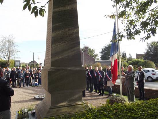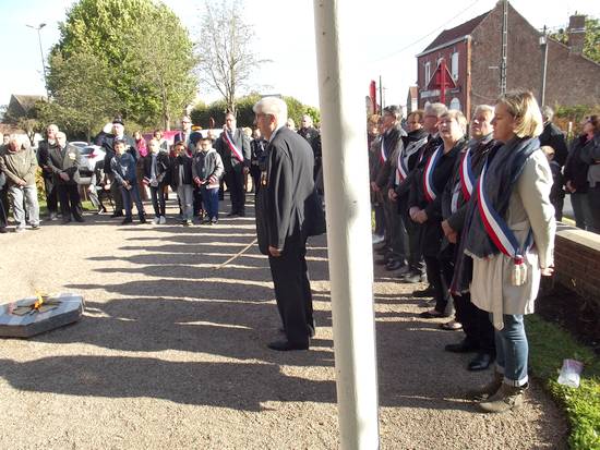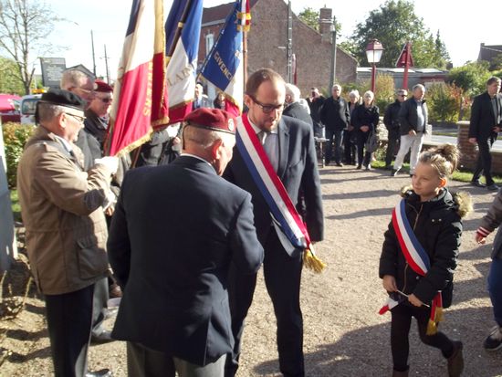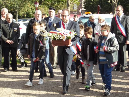 Dépôt d'une gerbe de fleurs par Monsieur Jean-François CASTELL, Maire de Violaines, accompagné de