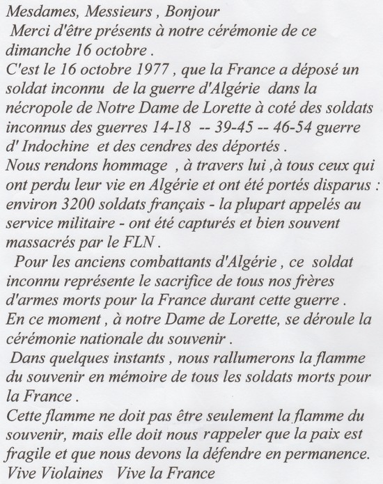 | Dimanche 16 Octobre 2016 Cérémonie commémorative de l’inhumation du Soldat Inconnu d'AFN à Notre Dame De Lorette. |