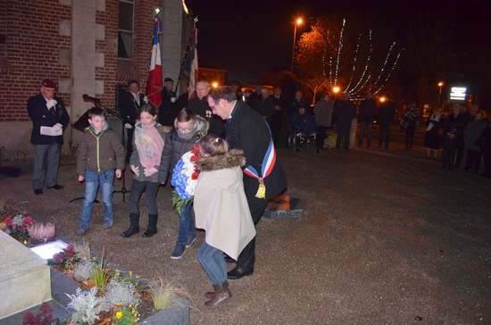 Dépôt de gerbe de fleurs par Monsieur Jean-François CASTELL, Maire de Violaines, accompagnié de