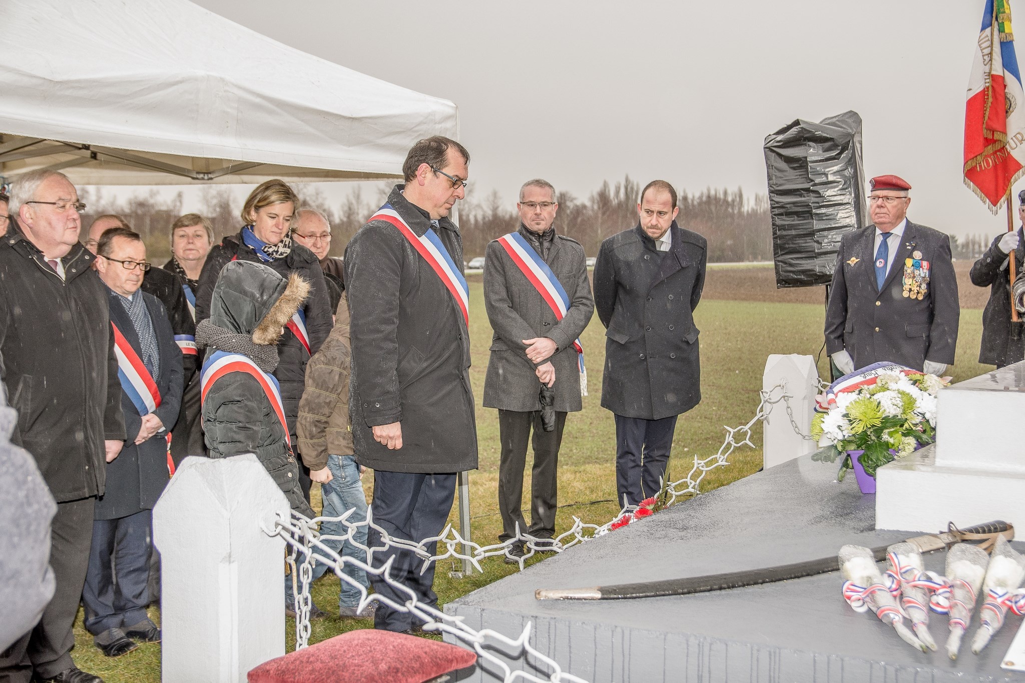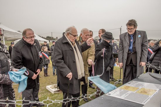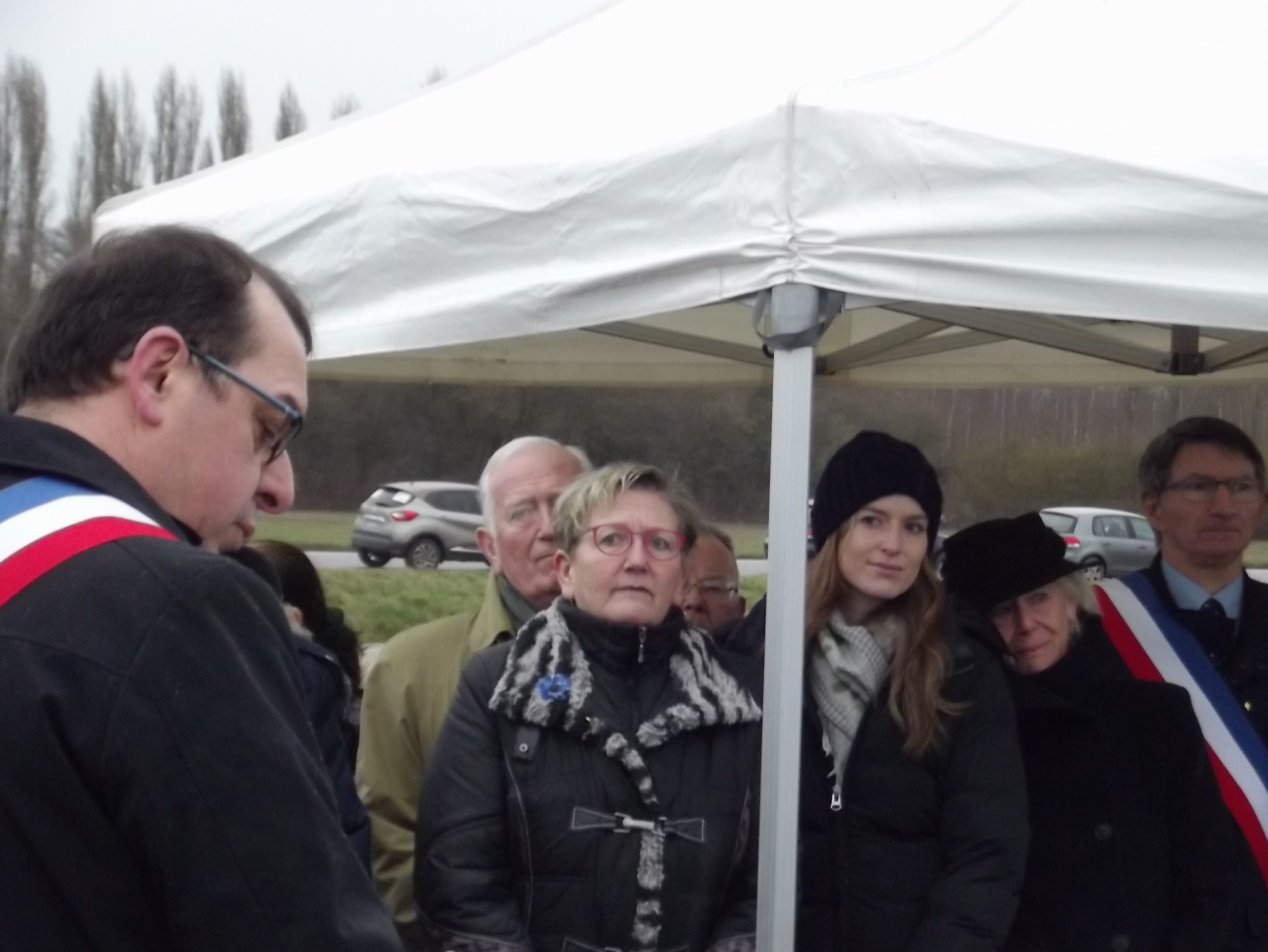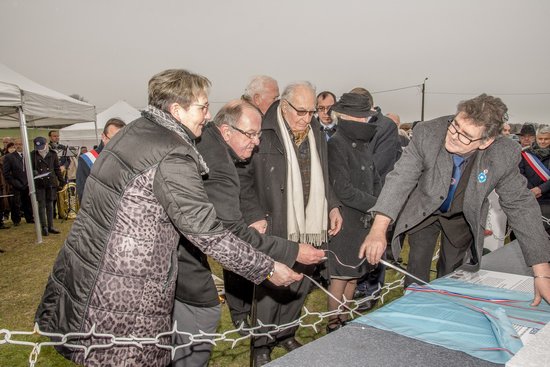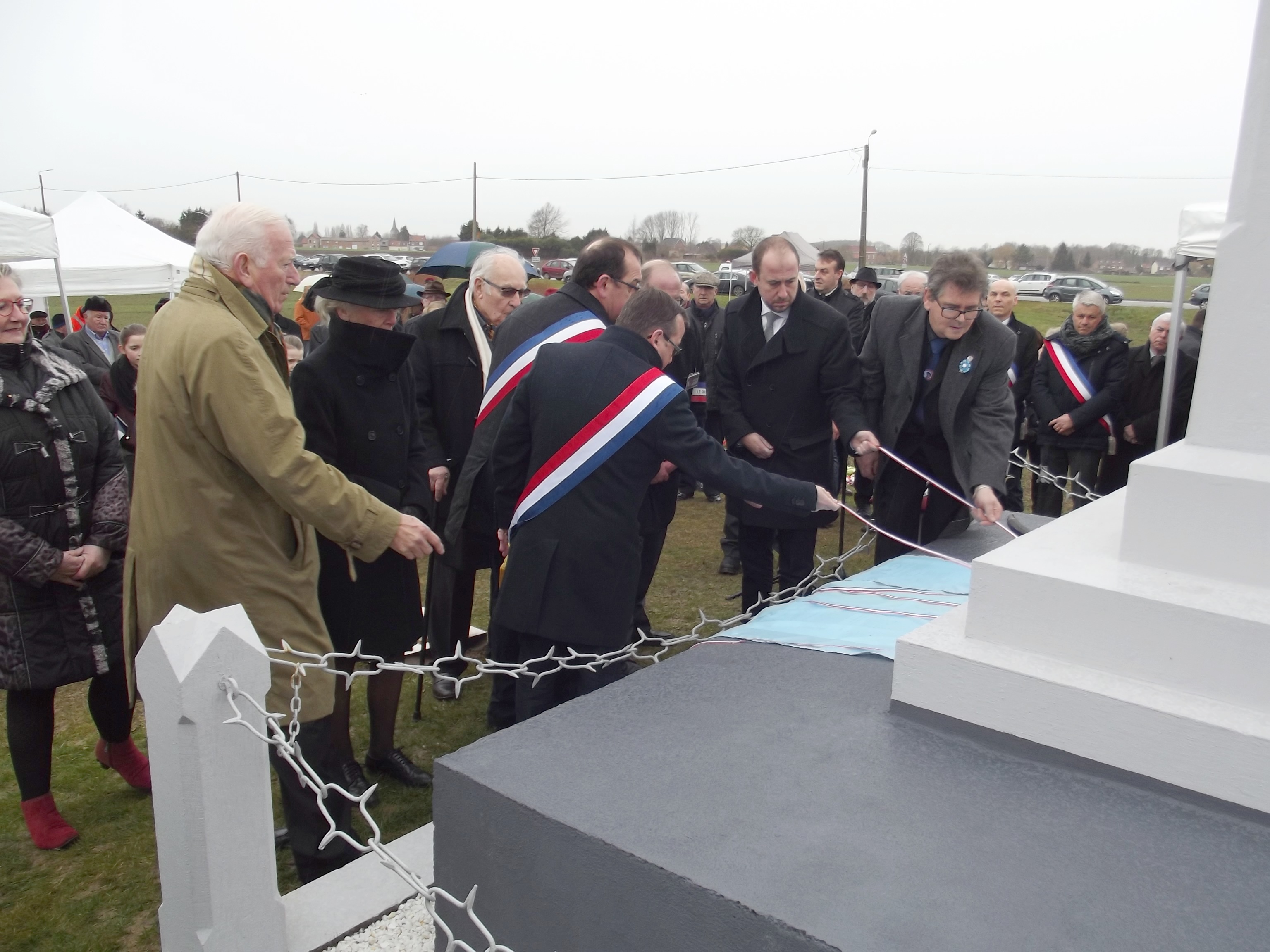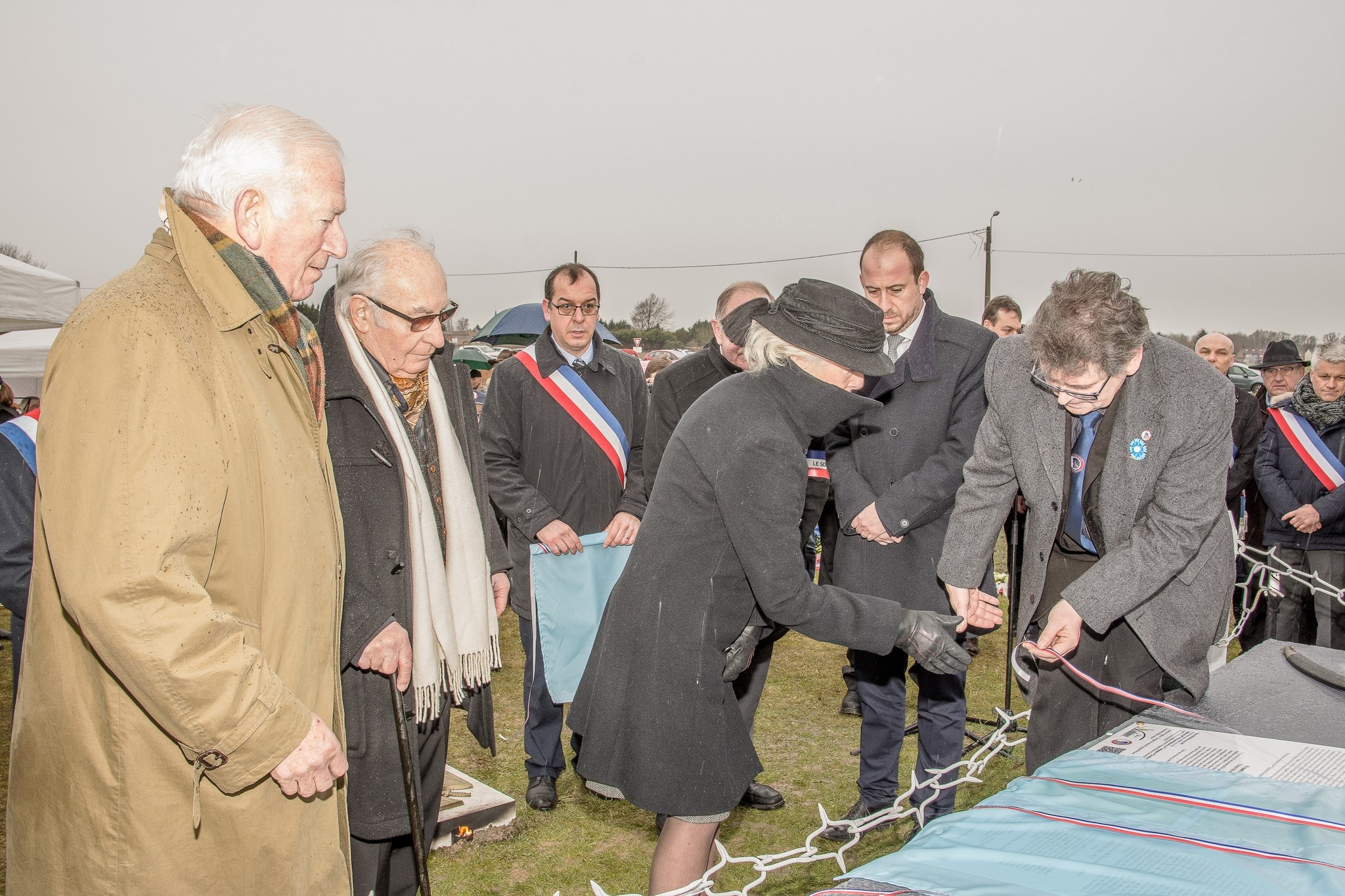 Dévoilent une partie la plaque du commémorative.