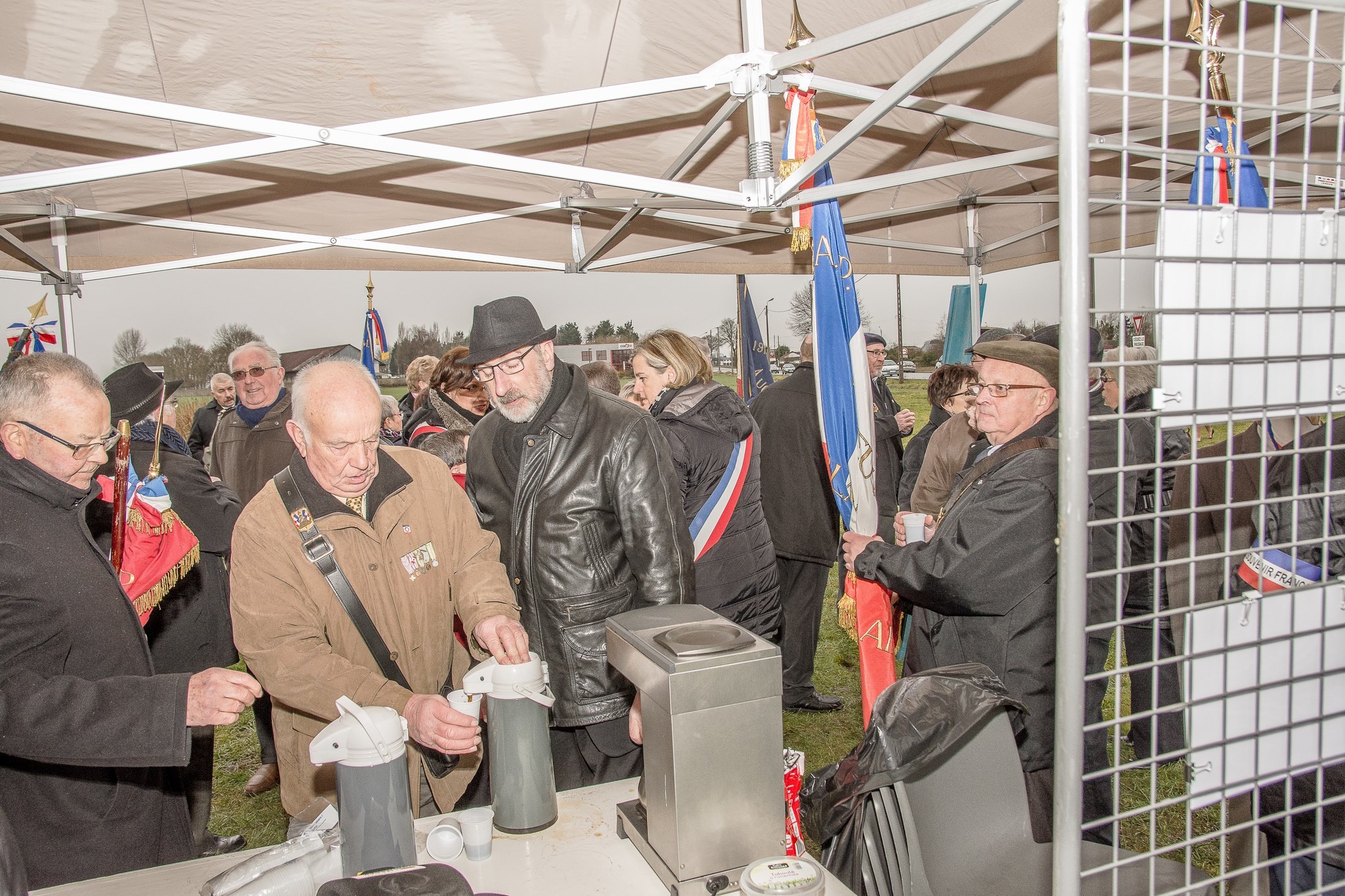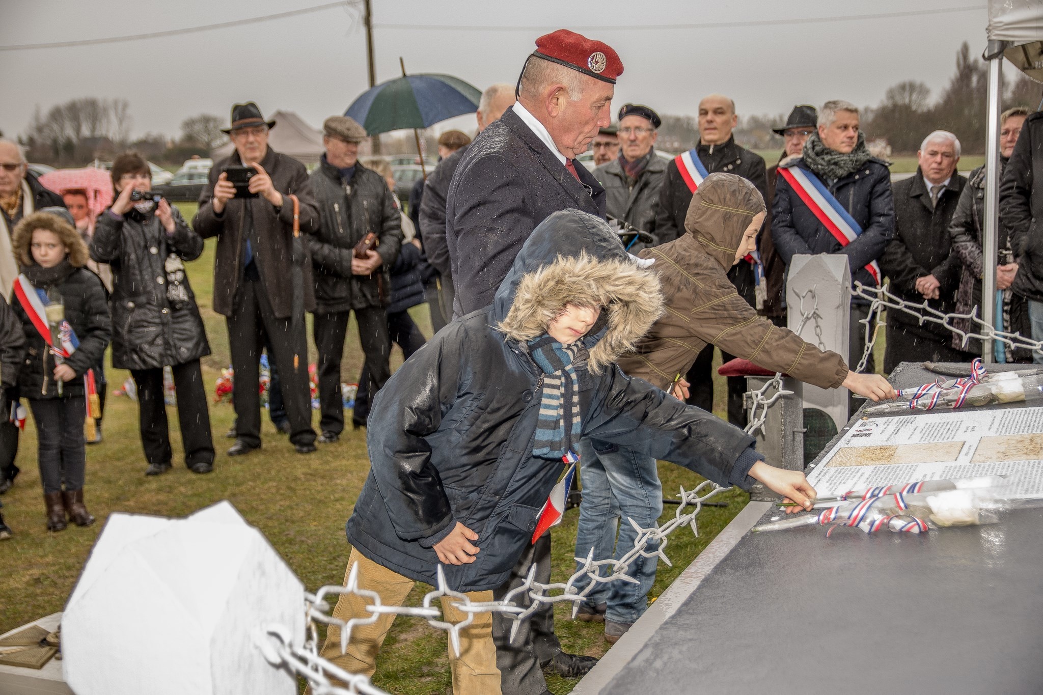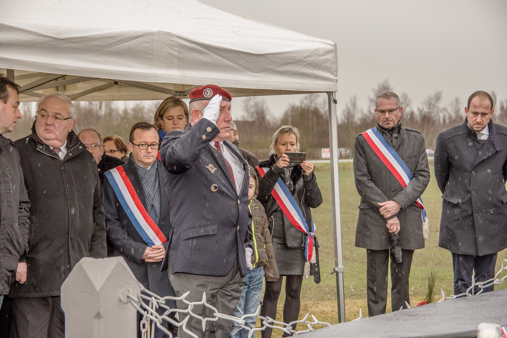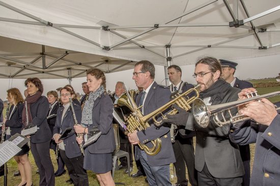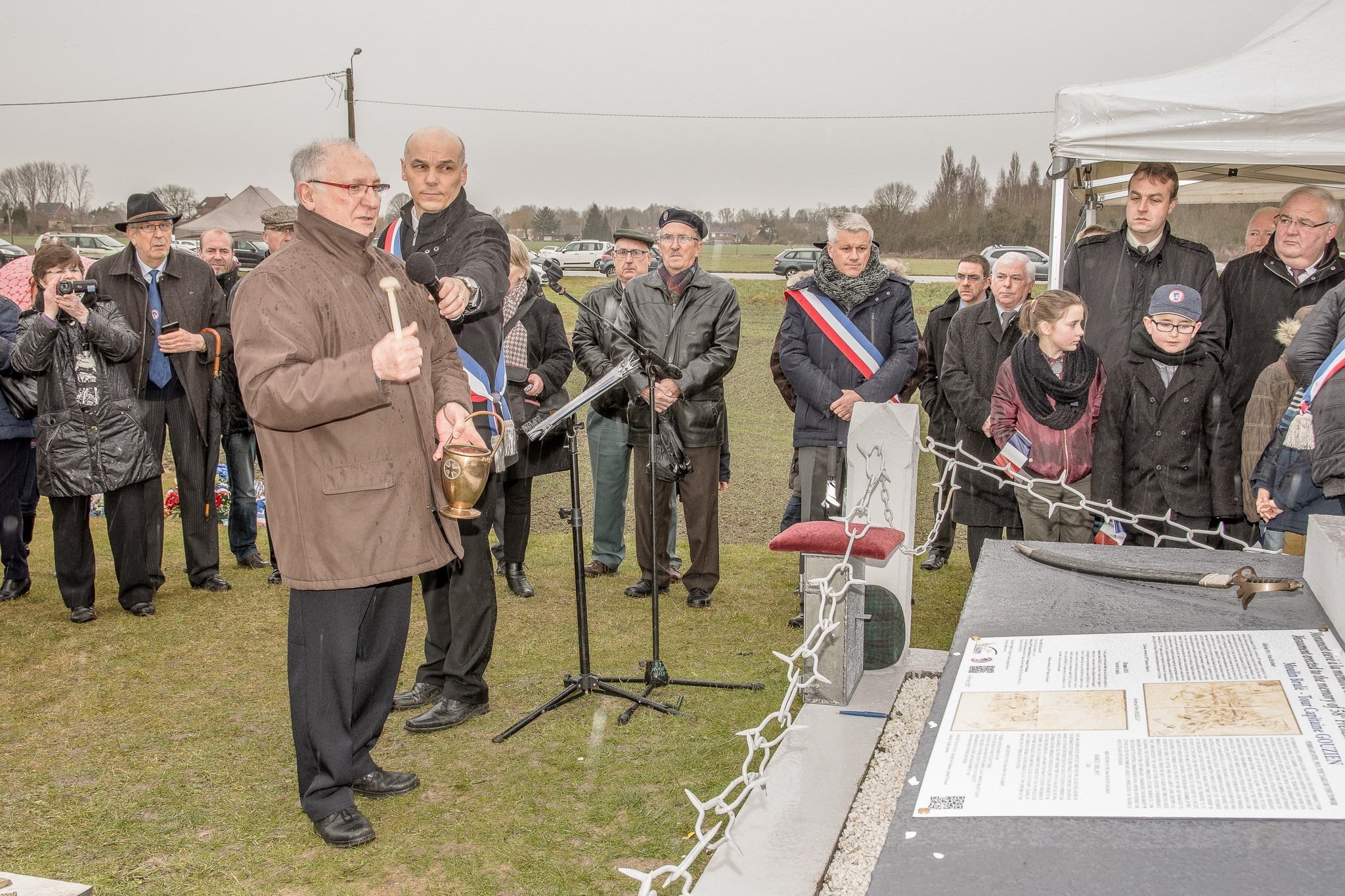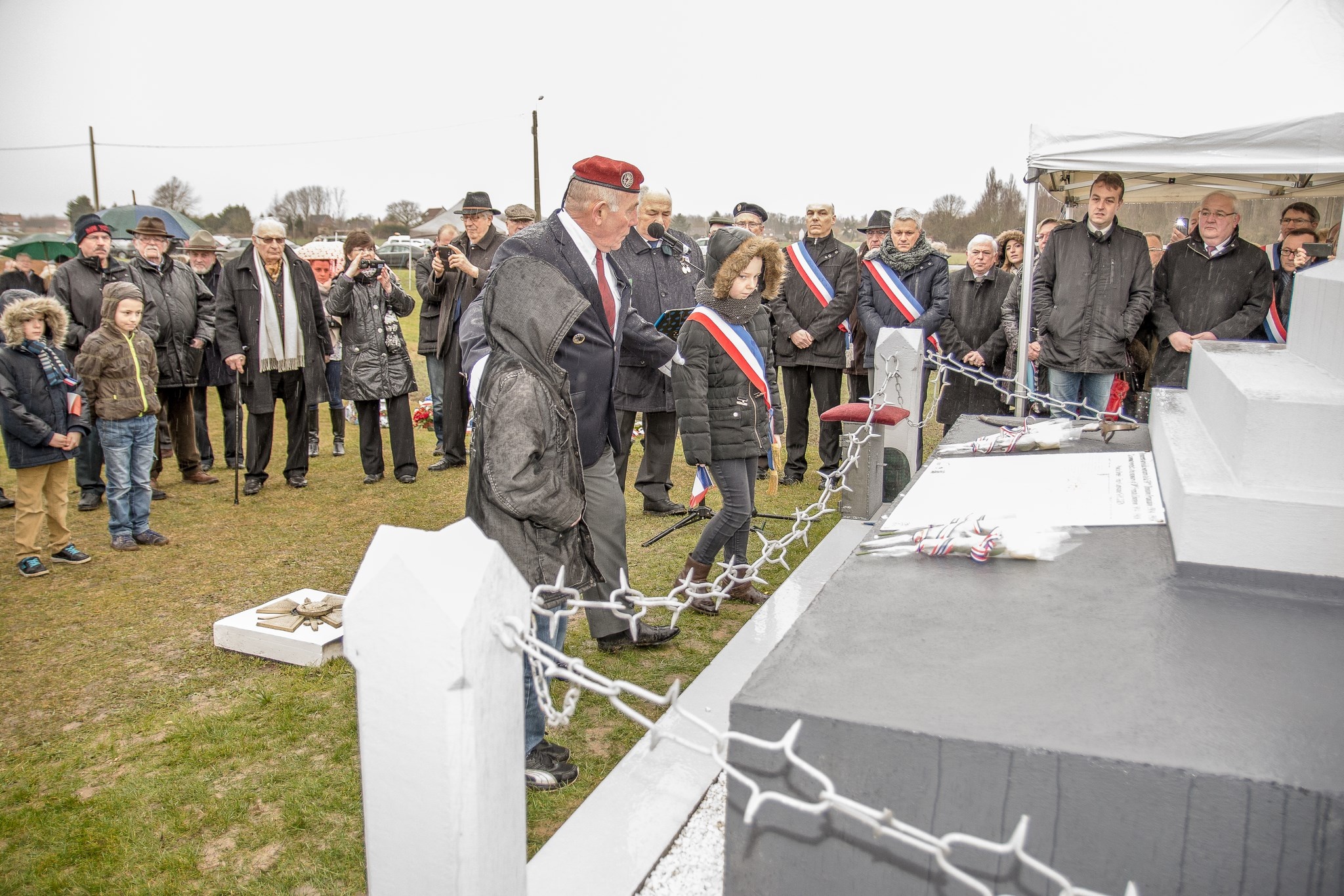 Dévoilent une partie la plaque du commémorative.