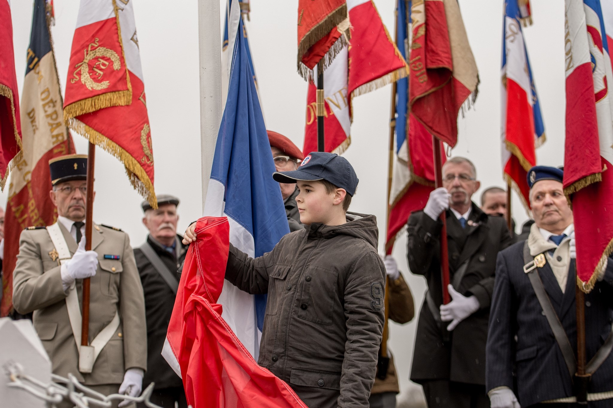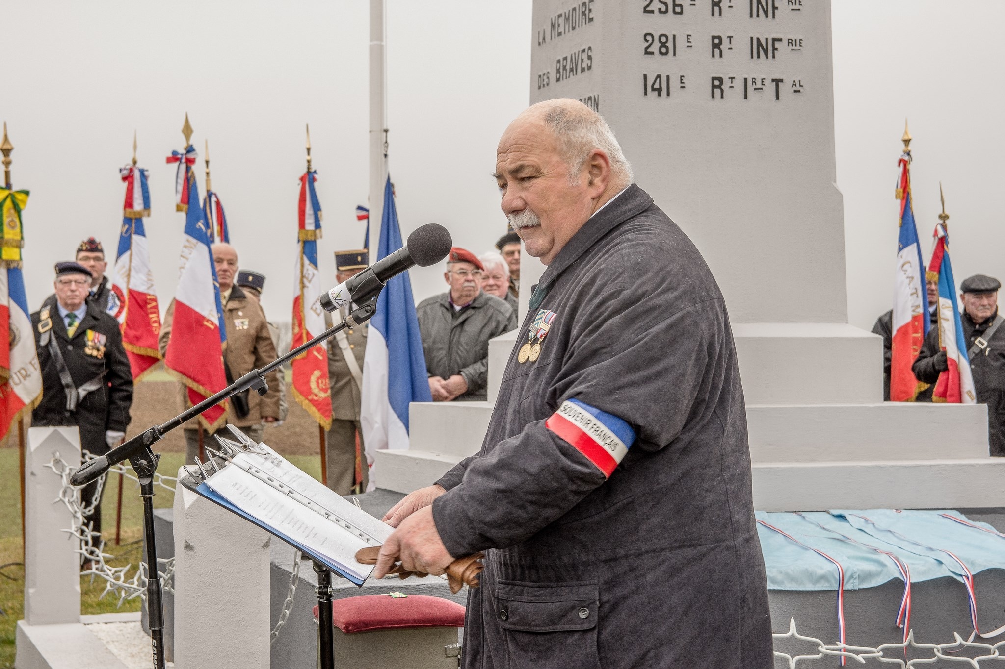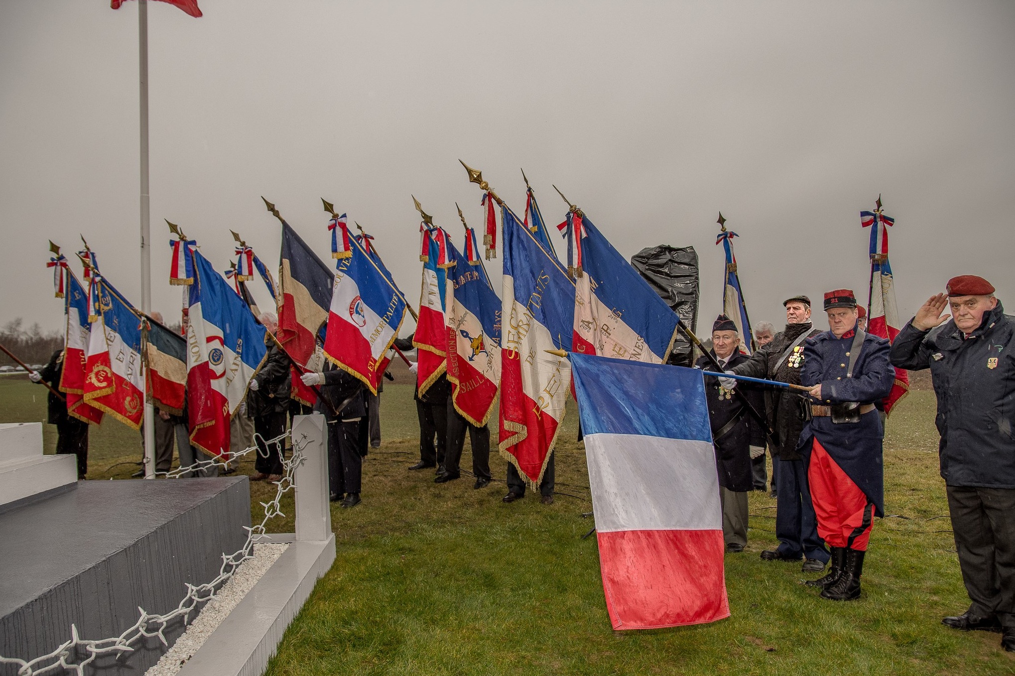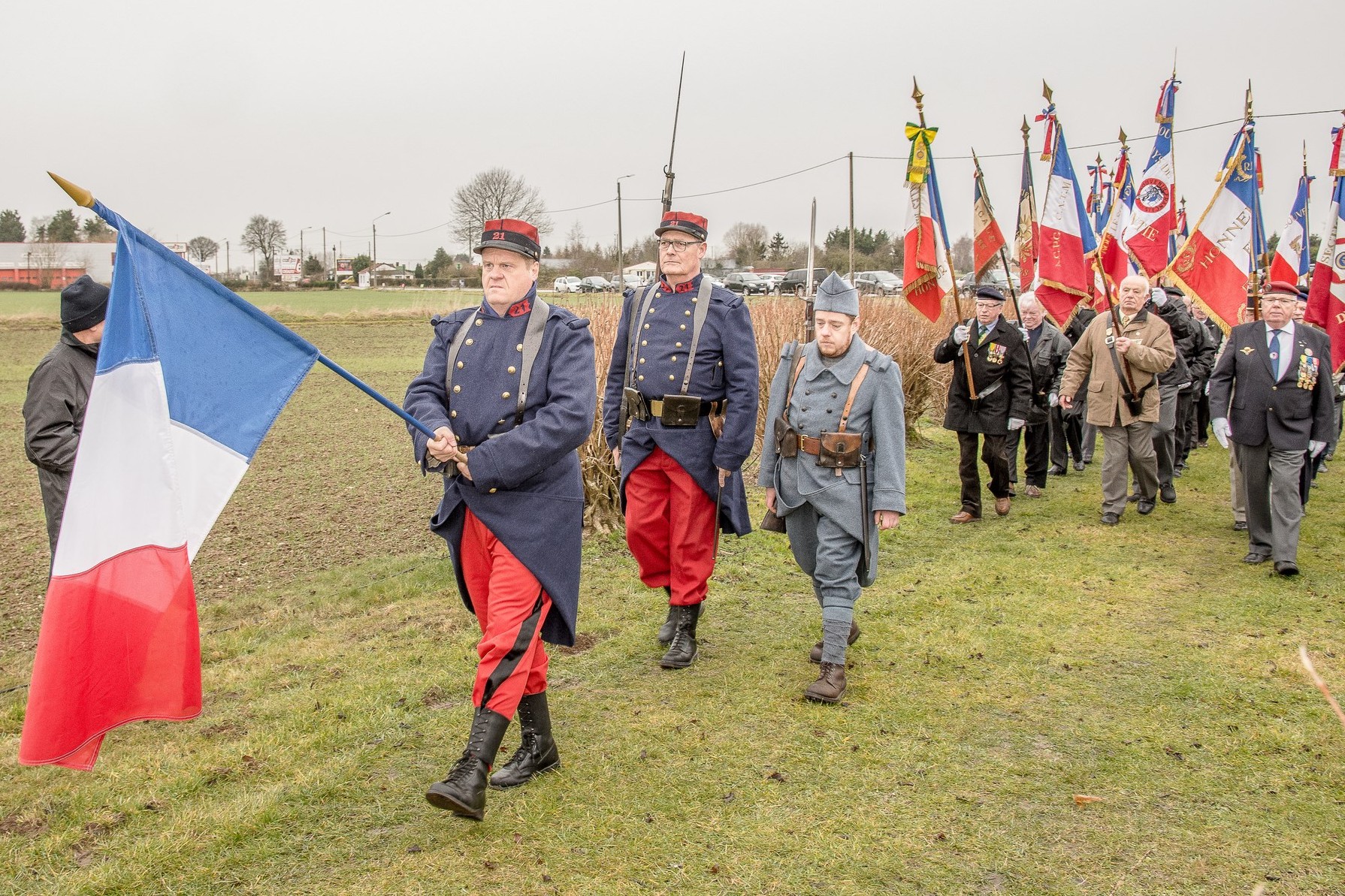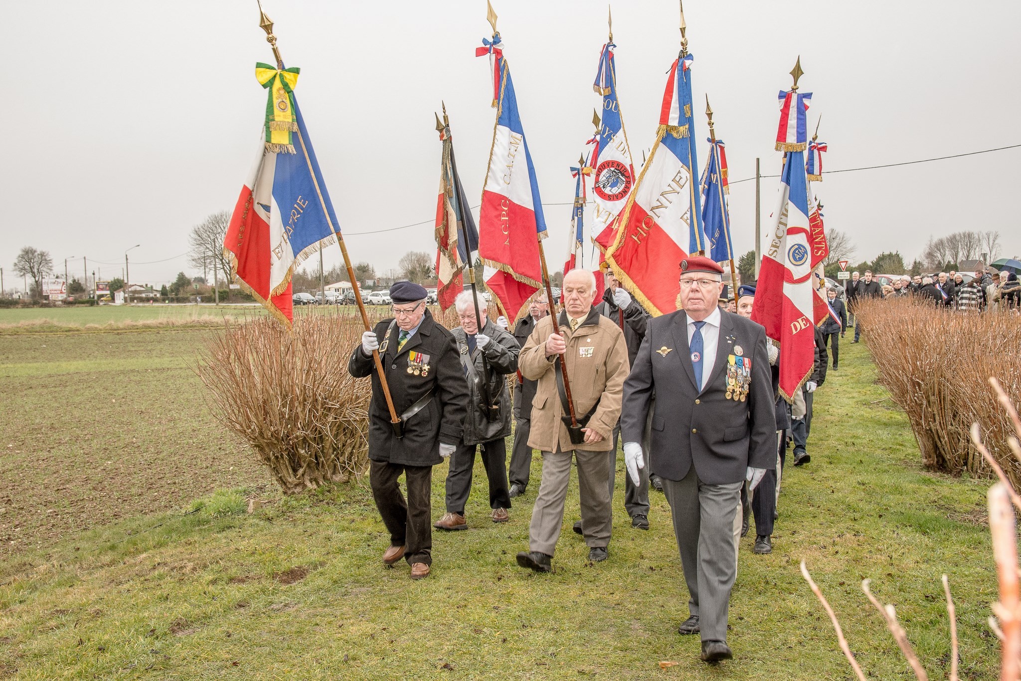 conduit les porte-drapeaux au monument.