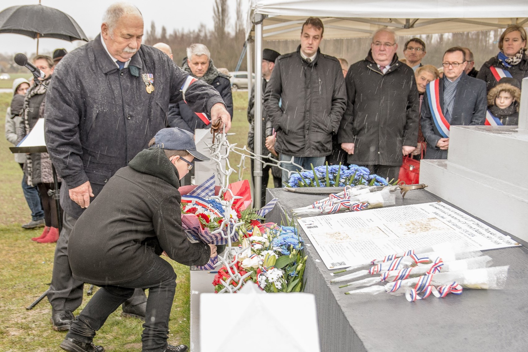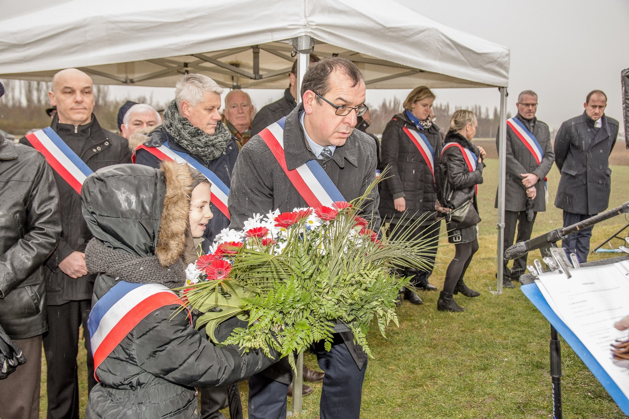 Dépôt d'une gerbe de fleurs par