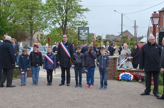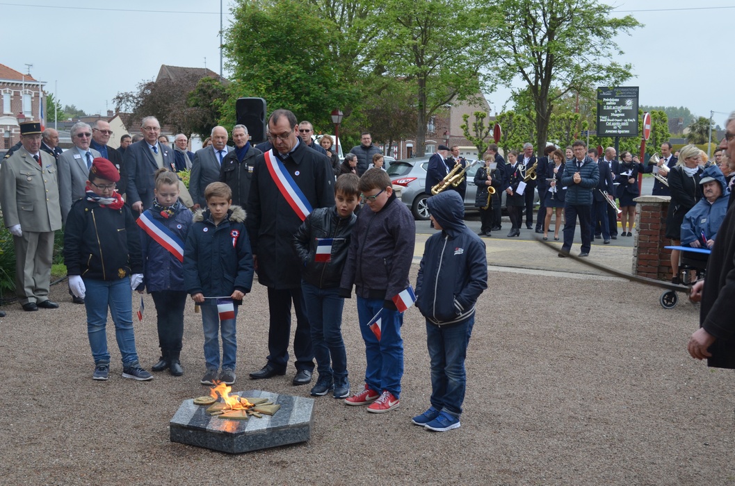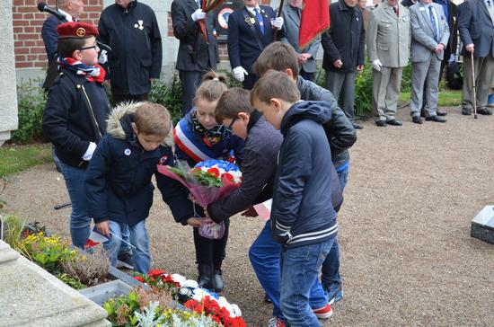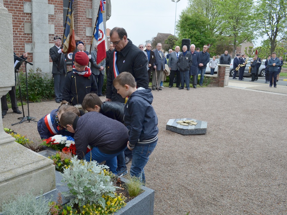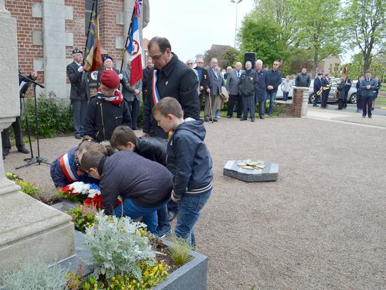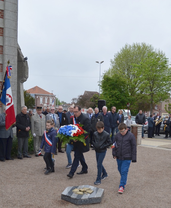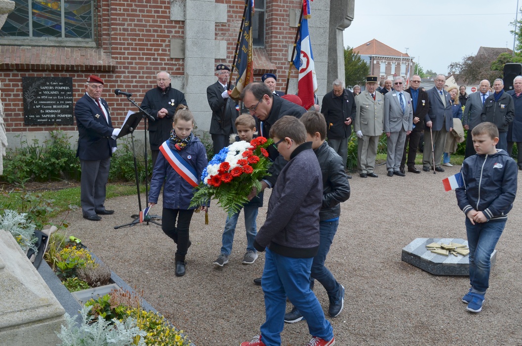 Dépôt de gerbe par les Membres du CMJ de Violaines.
