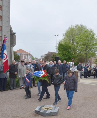 Dépôt de gerbe par Monsieur Jean-François CASTELL, Maire de Violaines, accompagné des