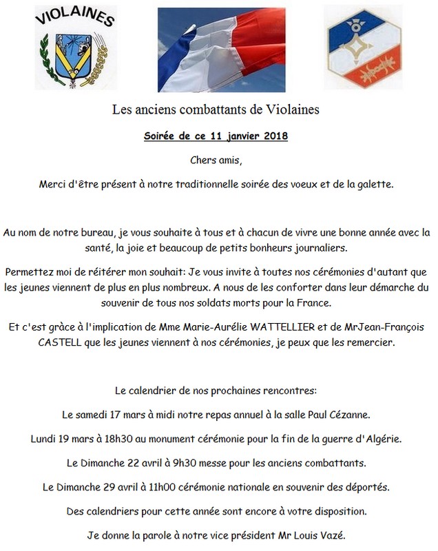 Discours de Mr Daniel Coulon Secrétaire des Anciens Combattants de Violaines.