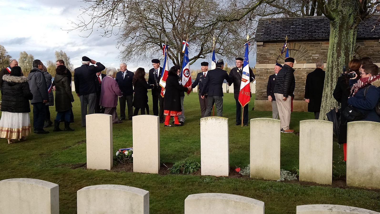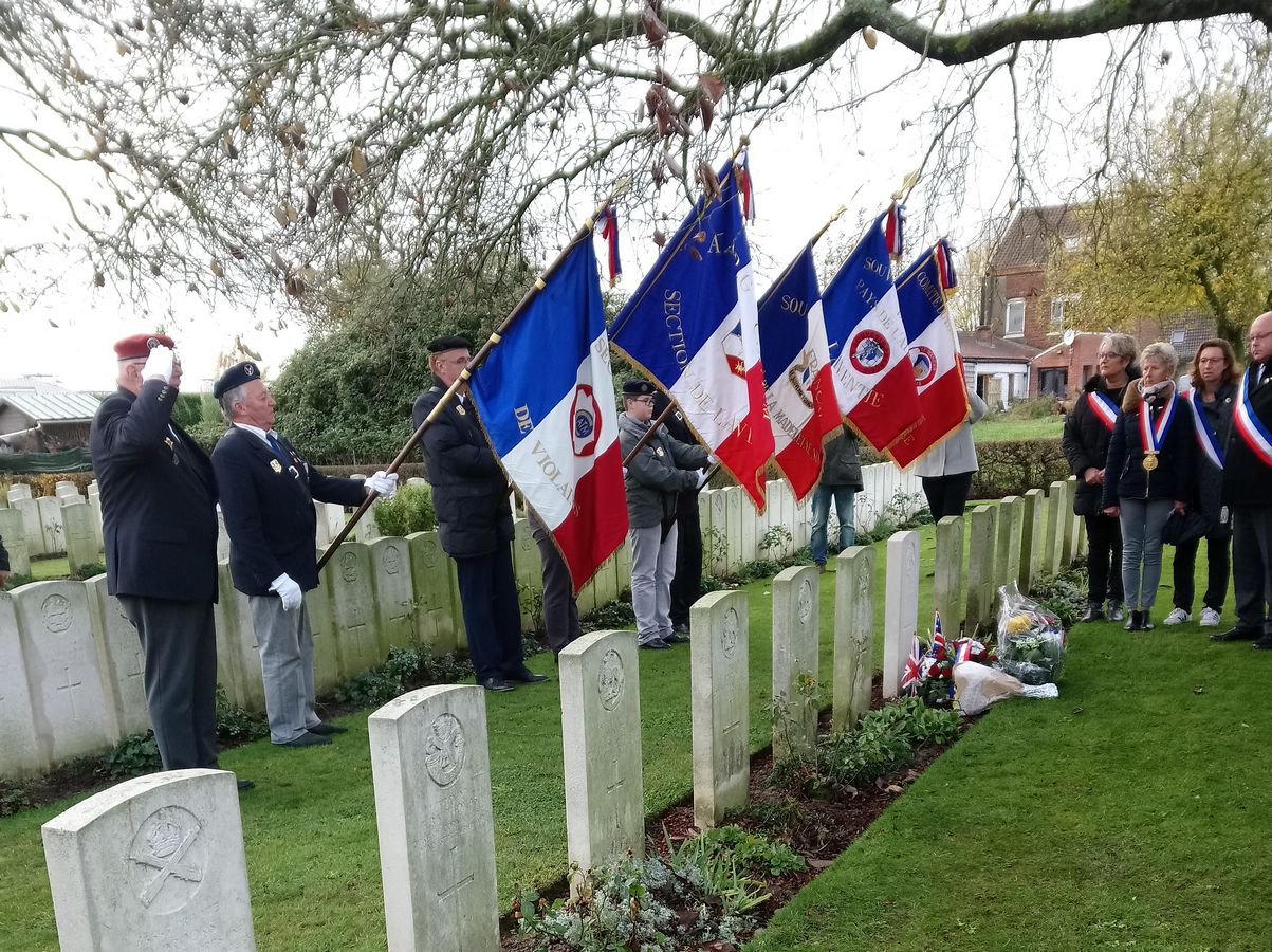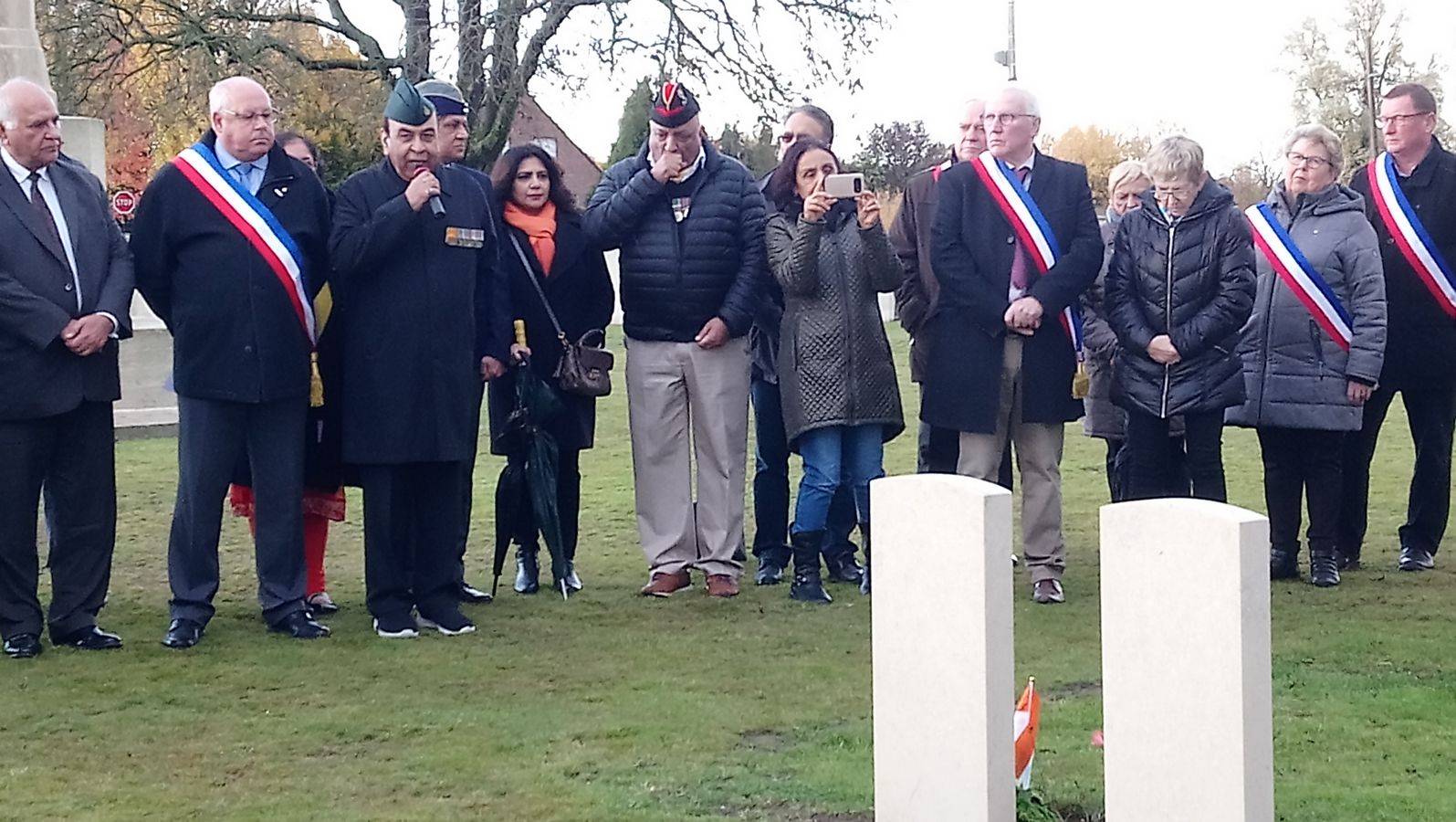 Hommage au soldat TOPLISS et aux indiens morts pendant la 1ère Guerre Mondiale au cimetiére de Laventie sur la commune de La Gorgue. Pendant la première guerre mondiale.