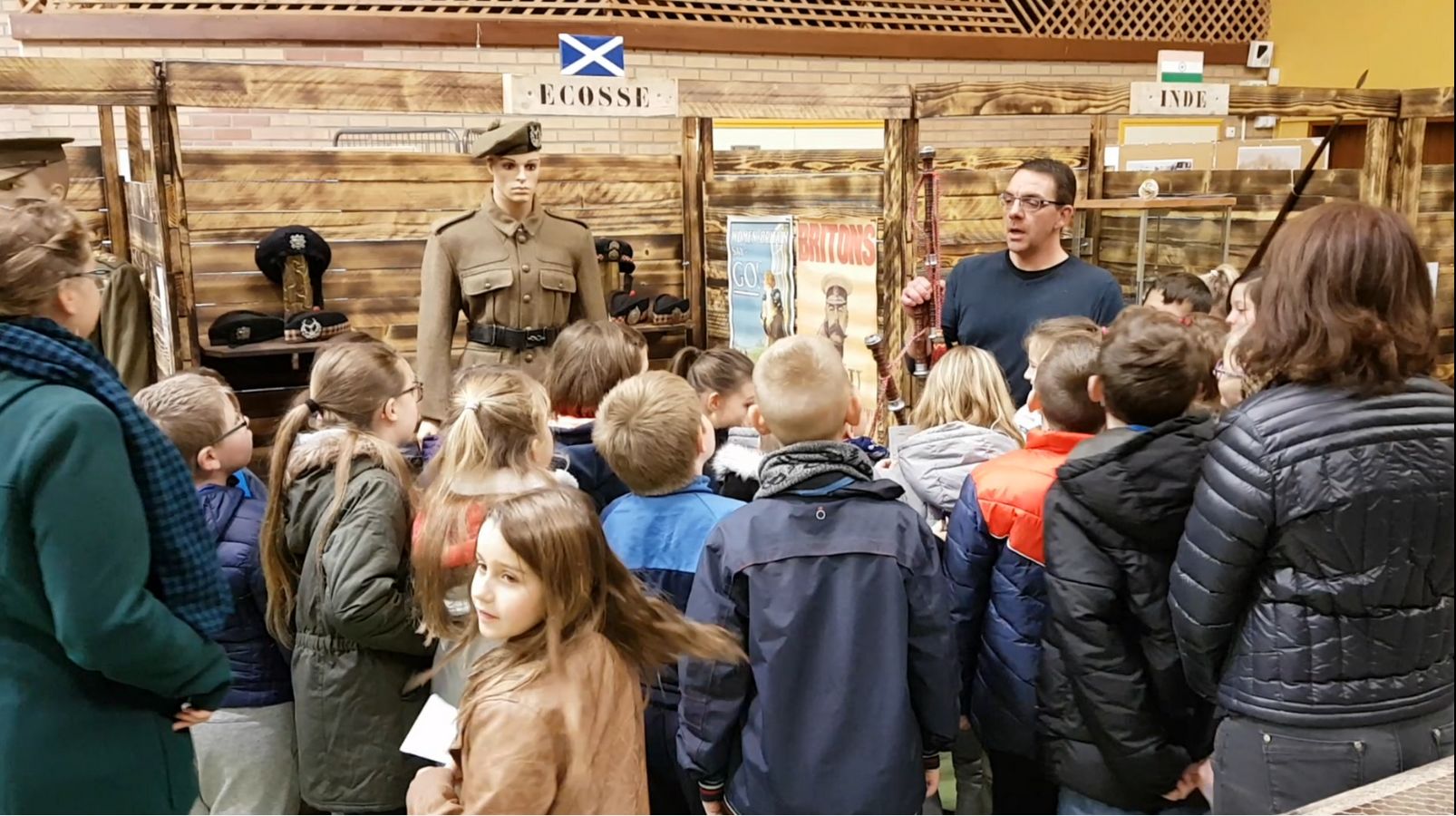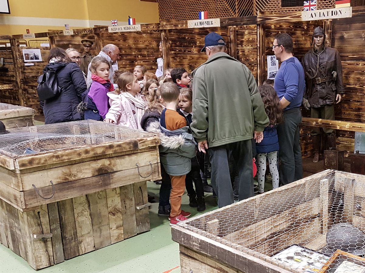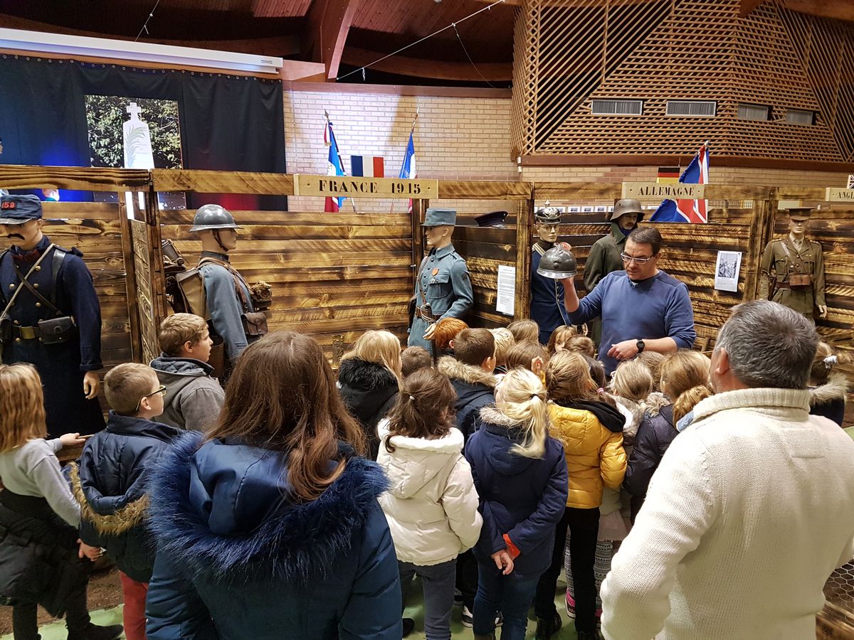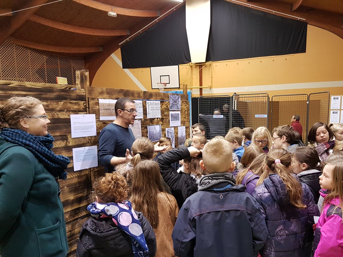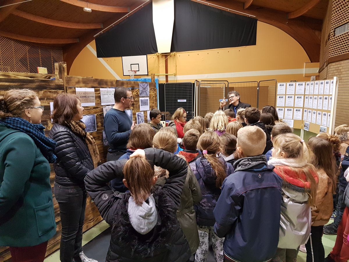 Adhérent au Souvenir Français, guide le groupe scolaire et commente l'exposition.