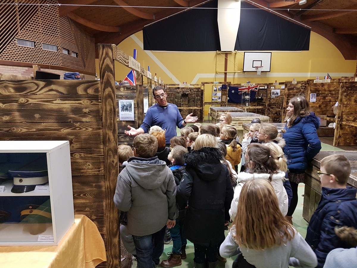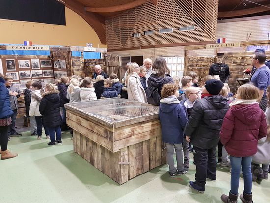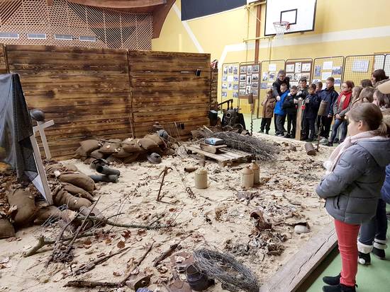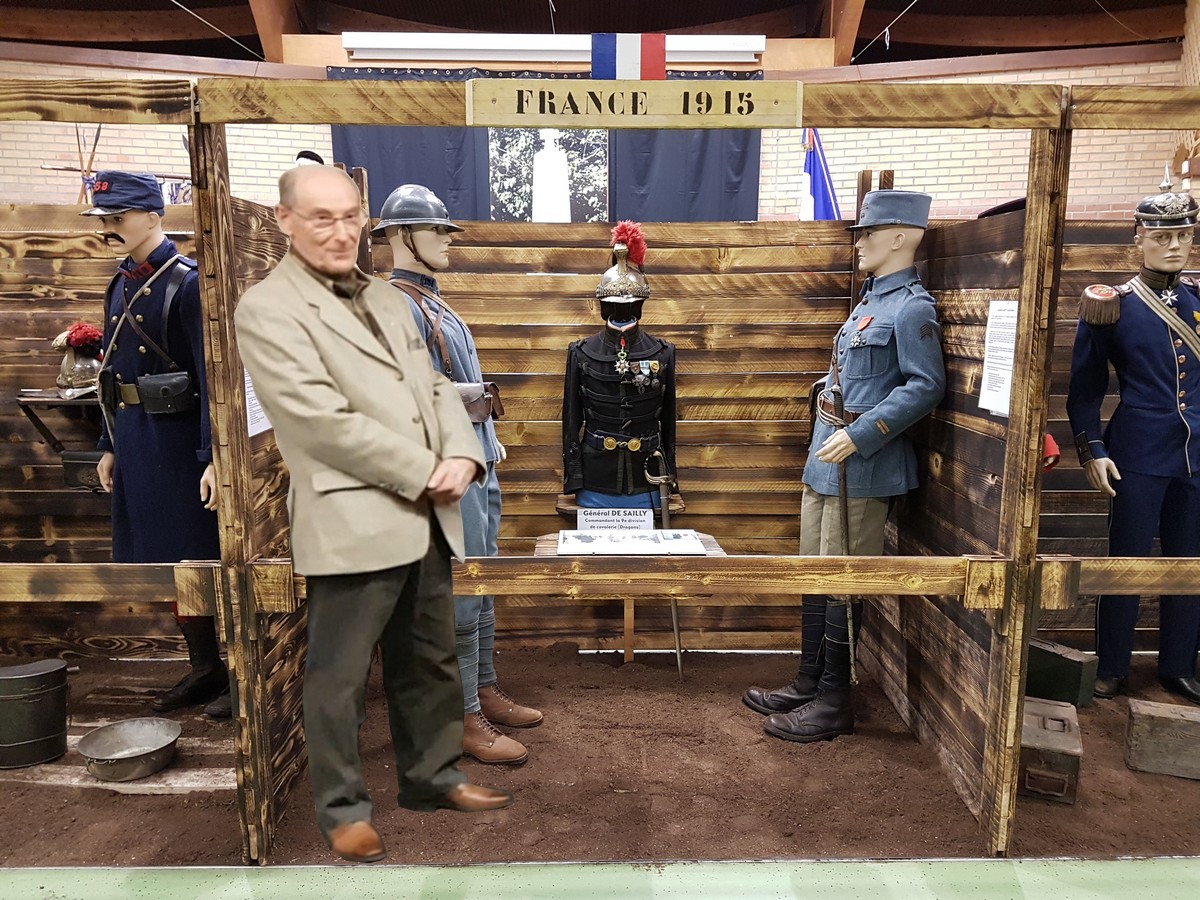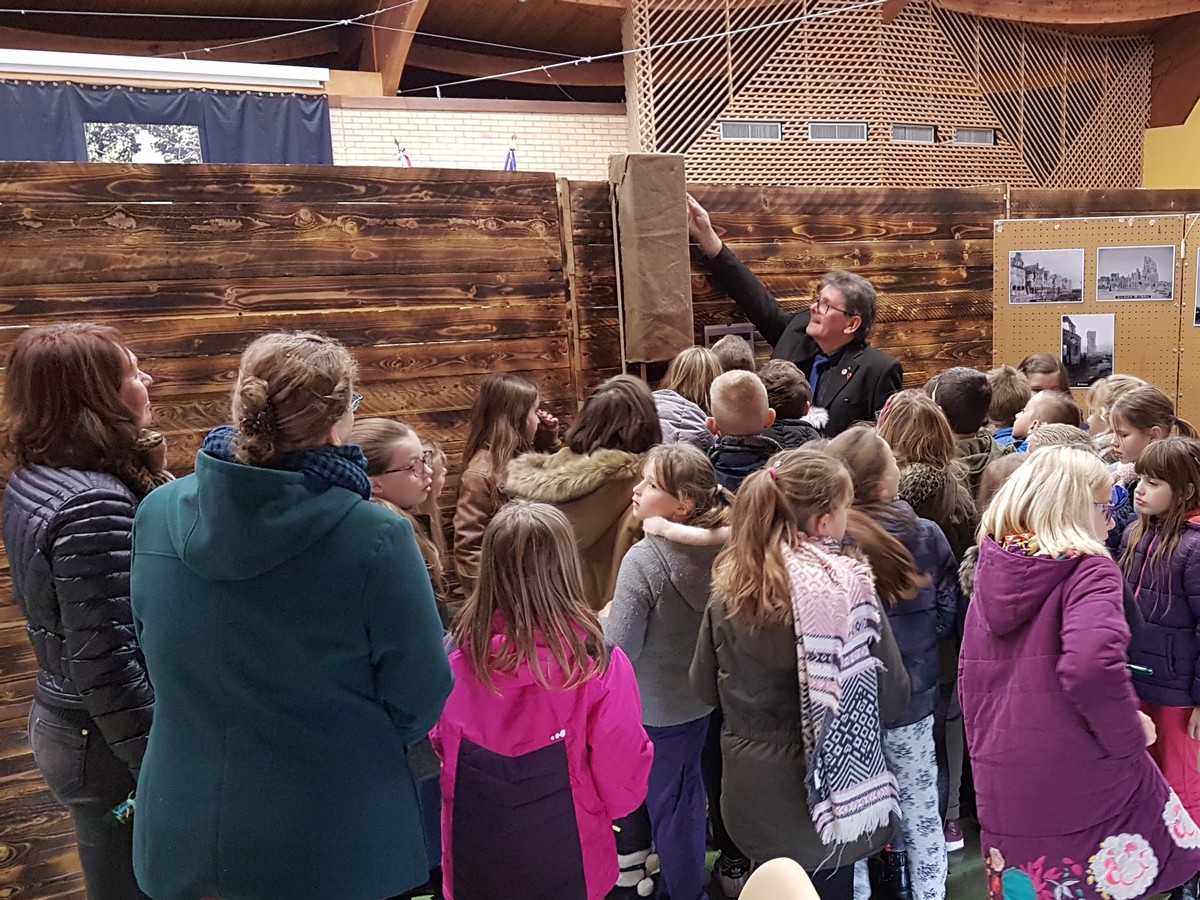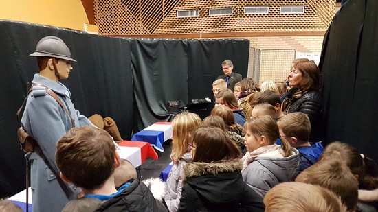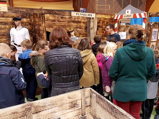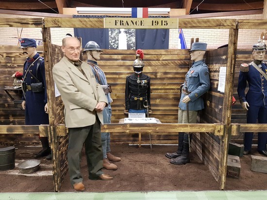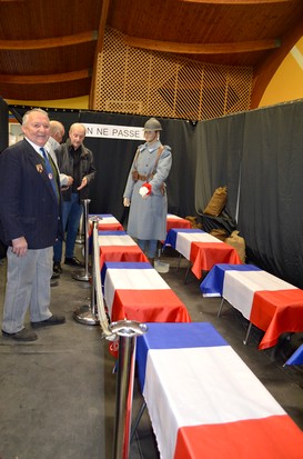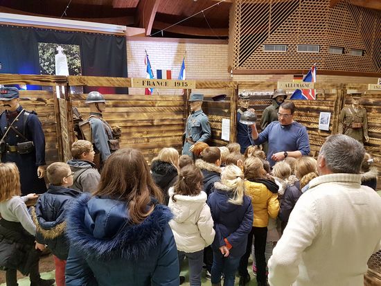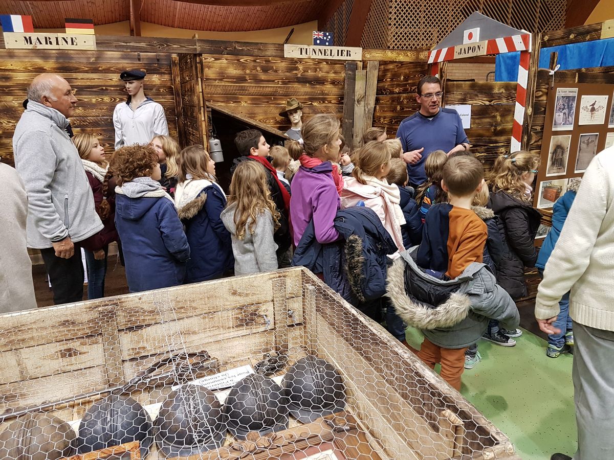 Adhérent au Souvenir Français, guide le groupe scolaire et commente l'exposition.