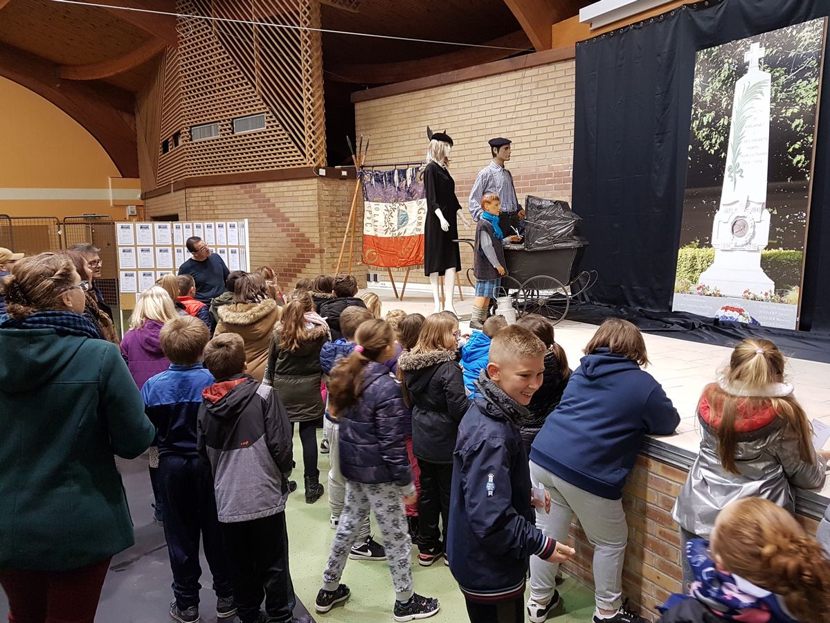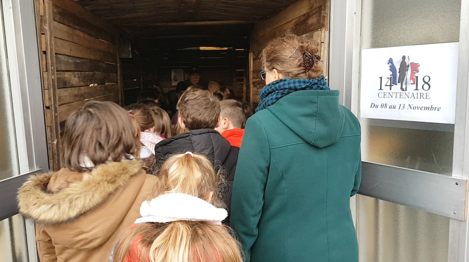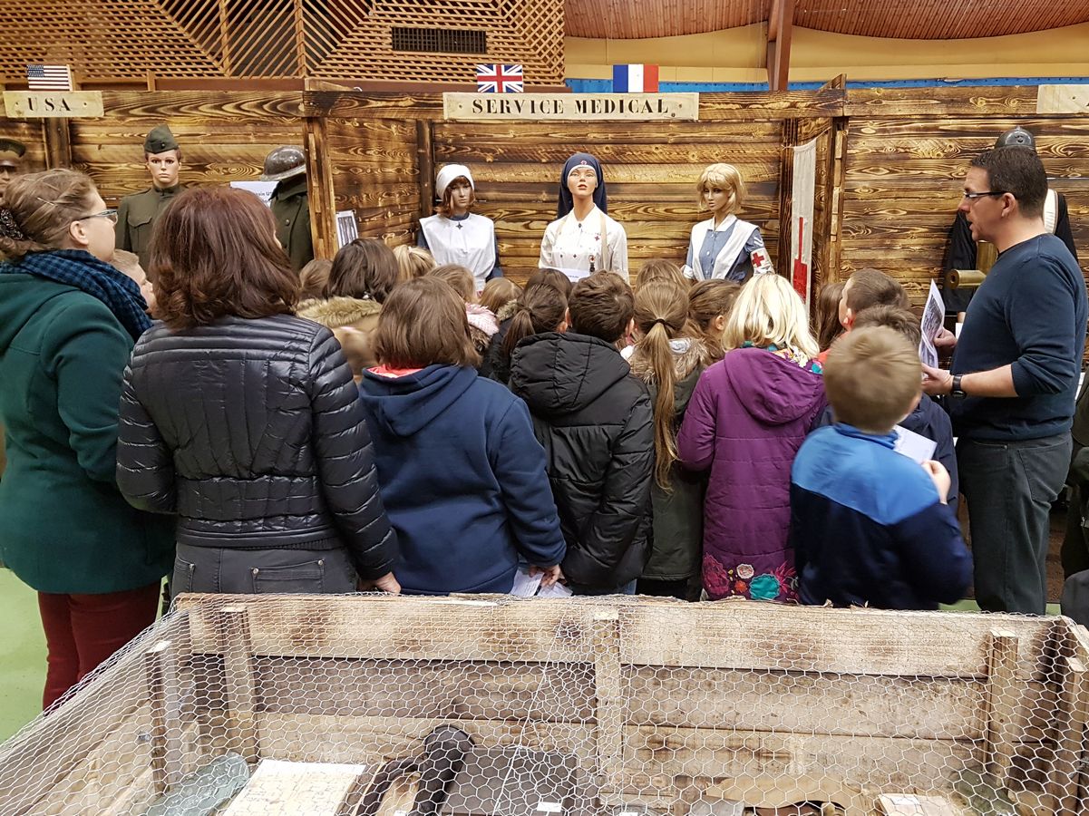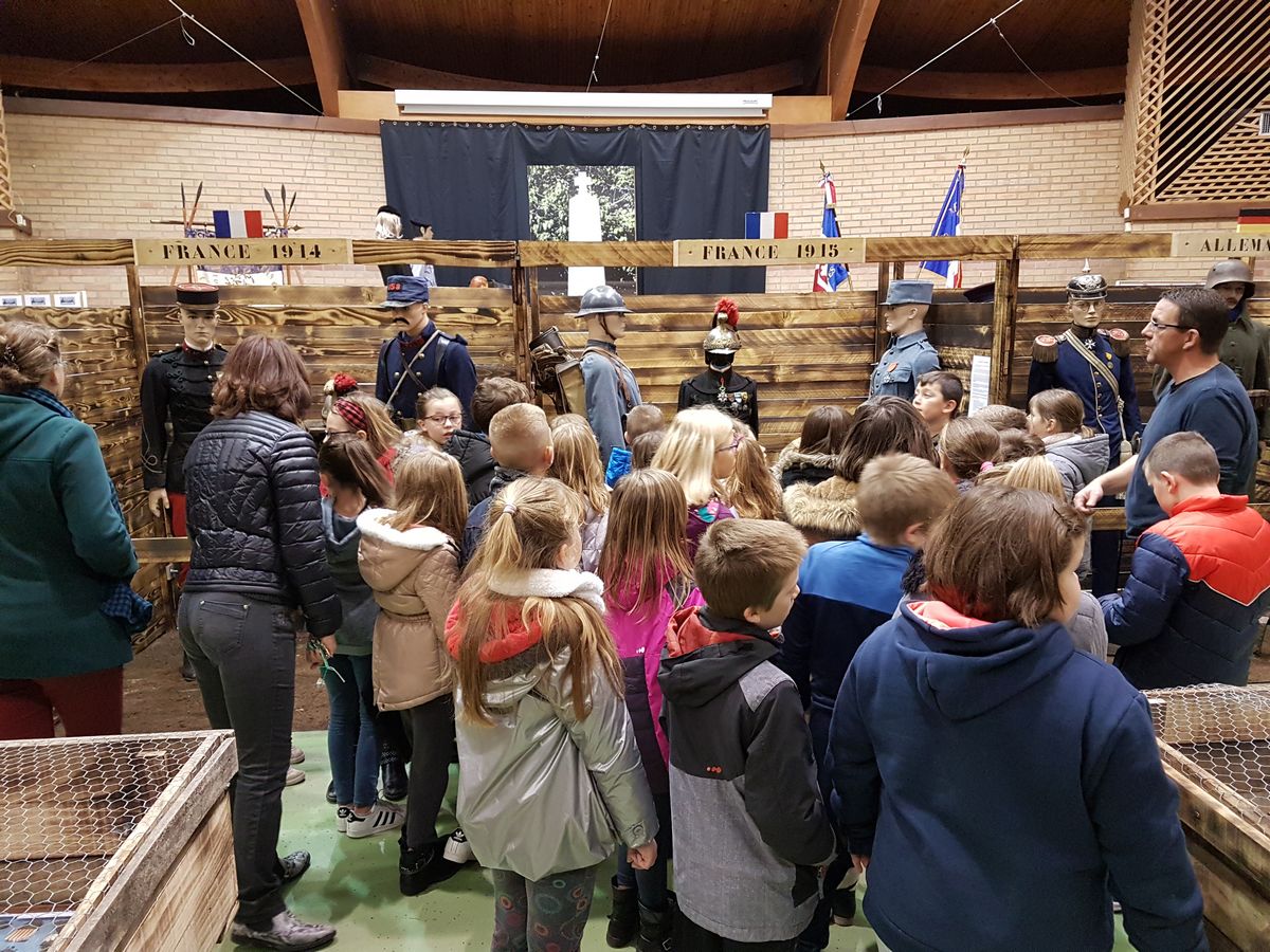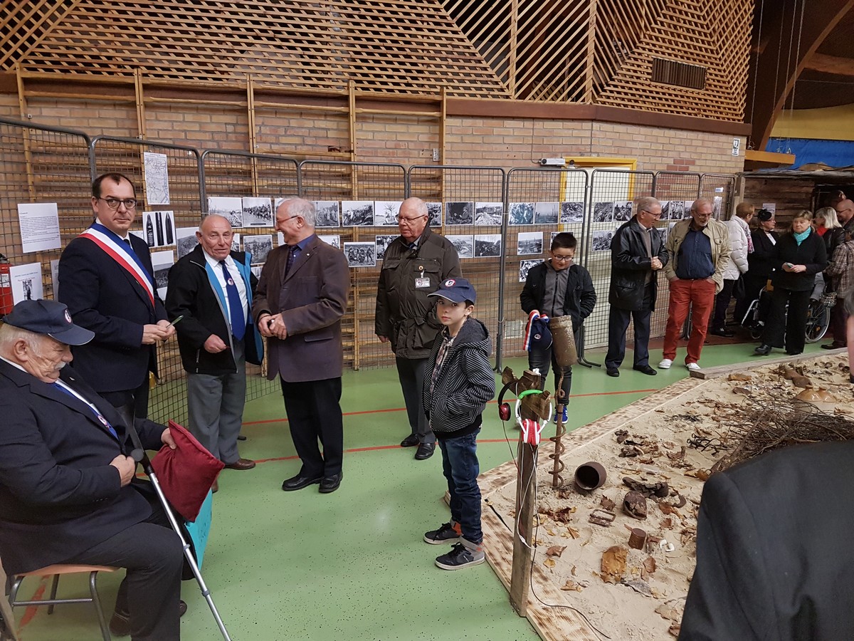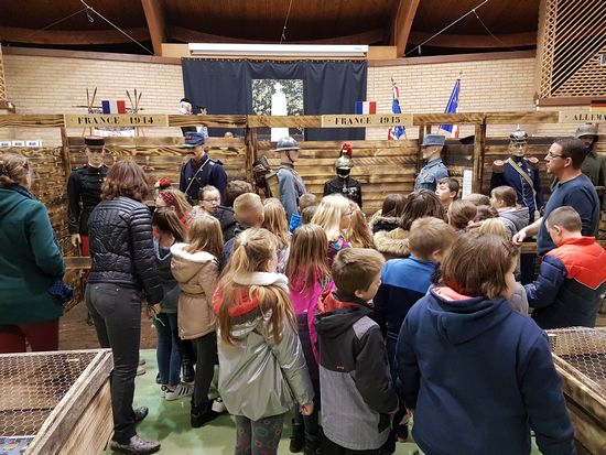 Adhérent au Souvenir Français, guide le groupe scolaire et commente l'exposition.