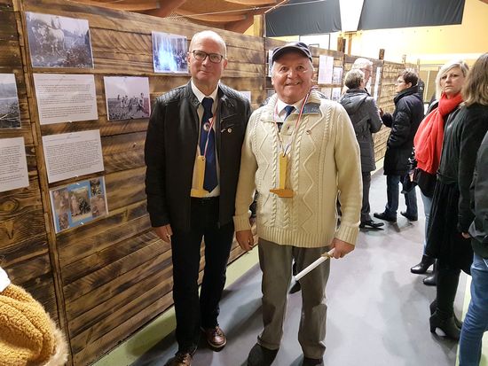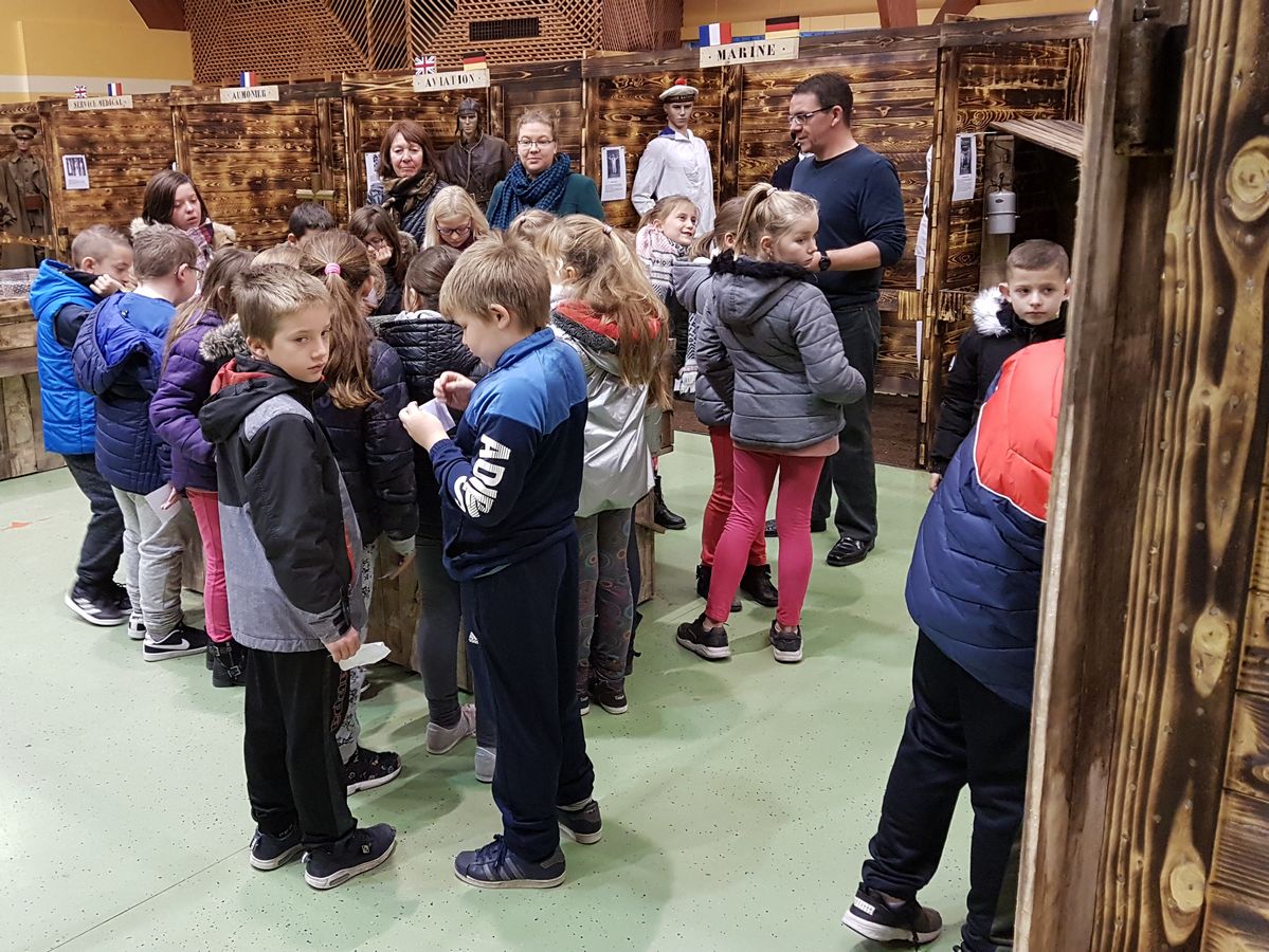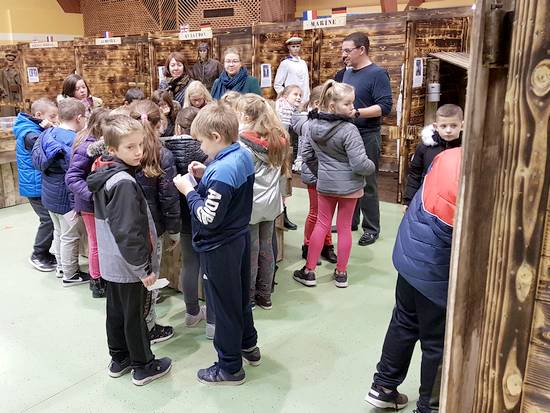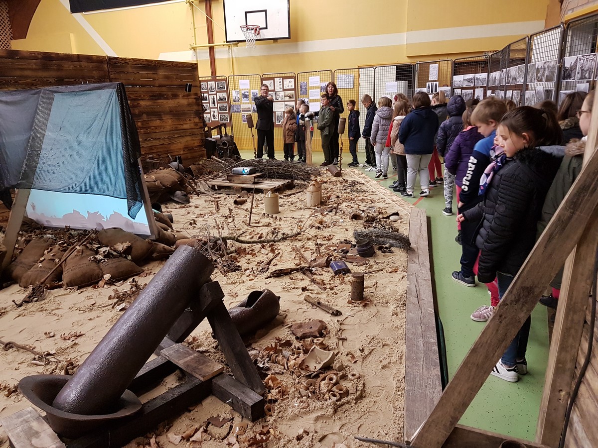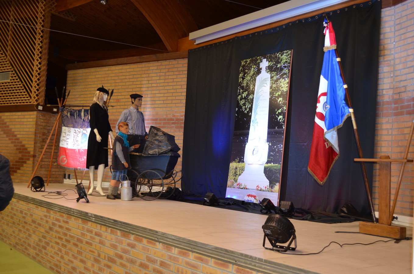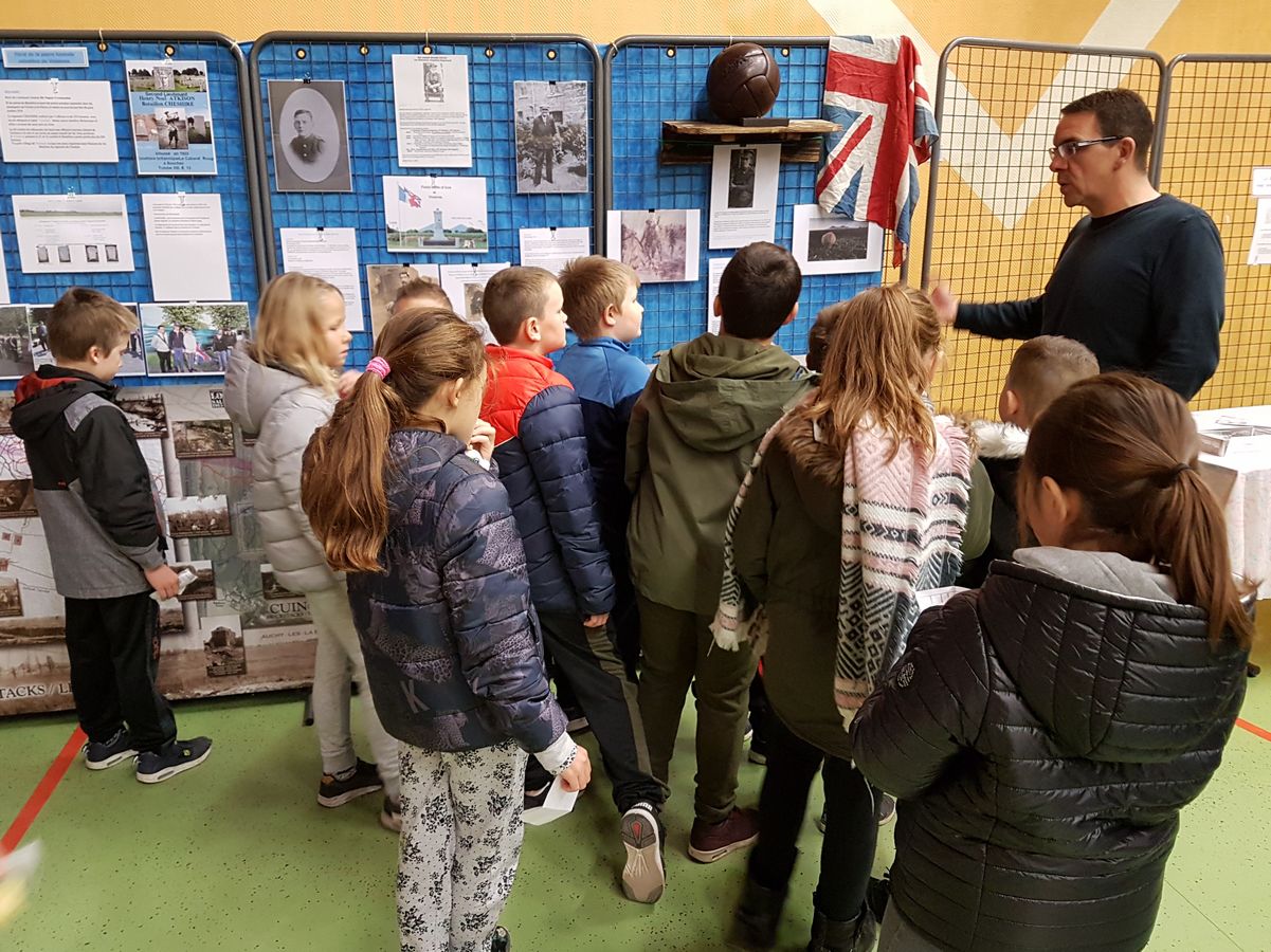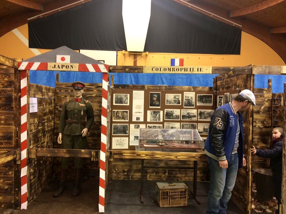Adhérent au Souvenir Français, guide le groupe scolaire et commente l'exposition.