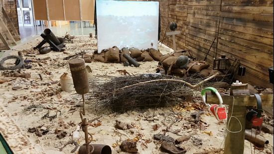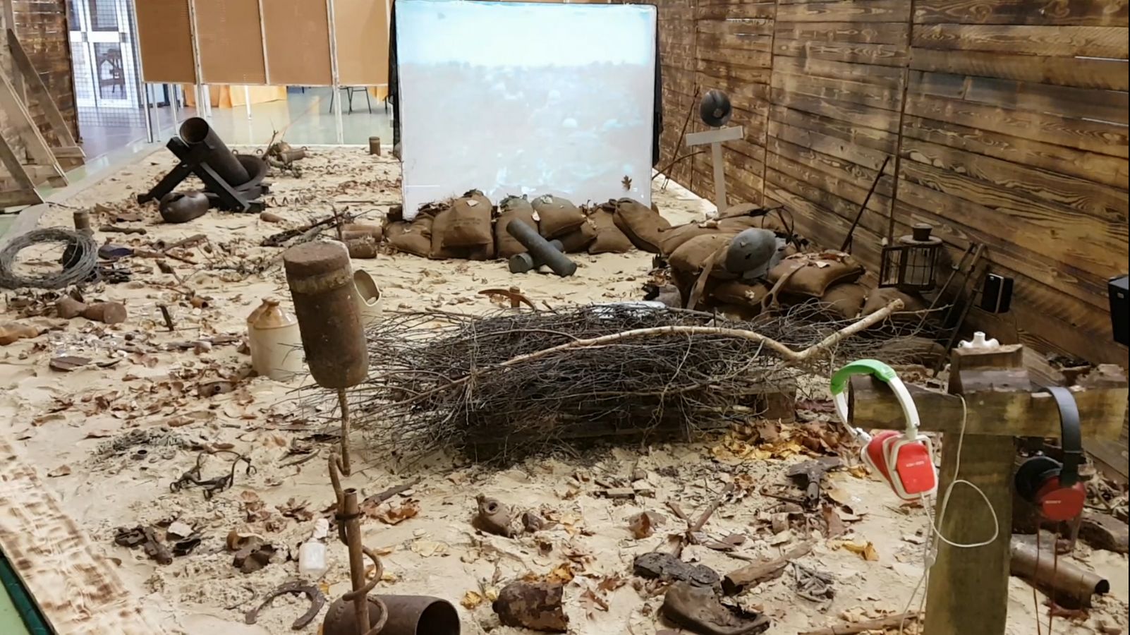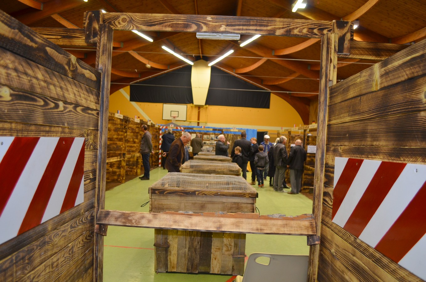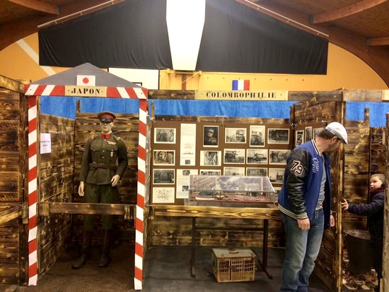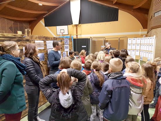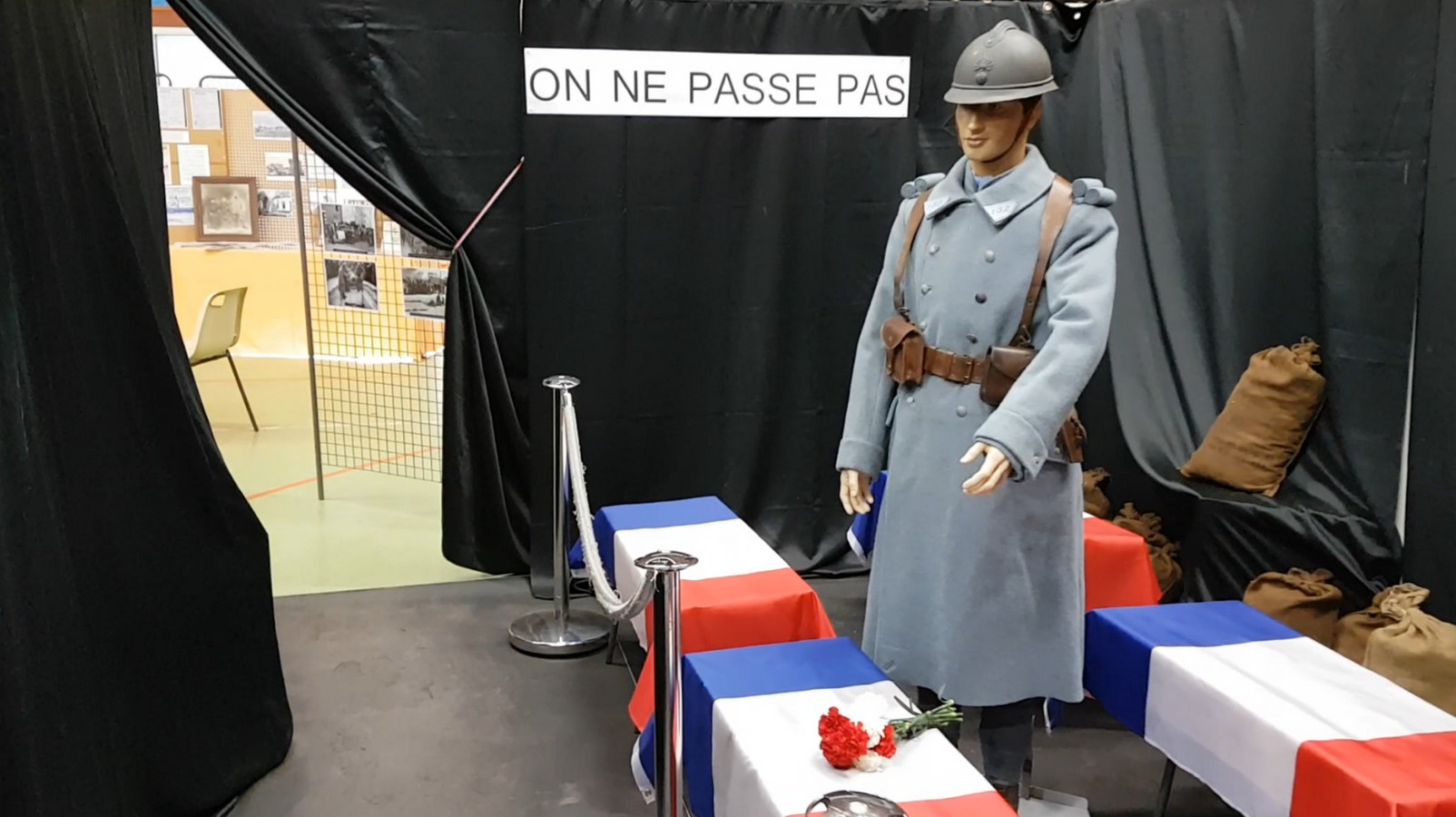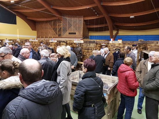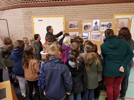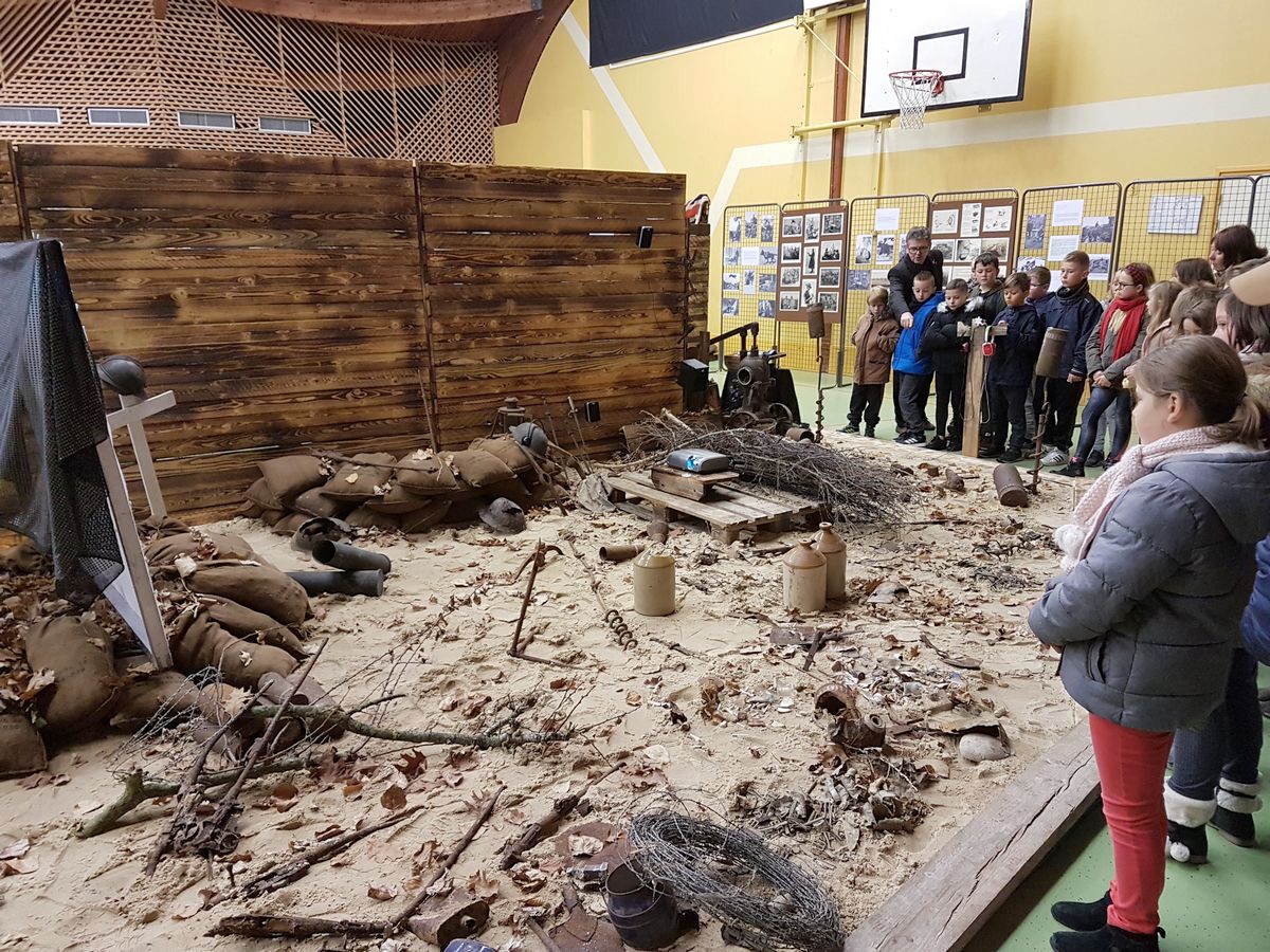 Adhérent au Souvenir Français, guide le groupe scolaire et commente l'exposition.