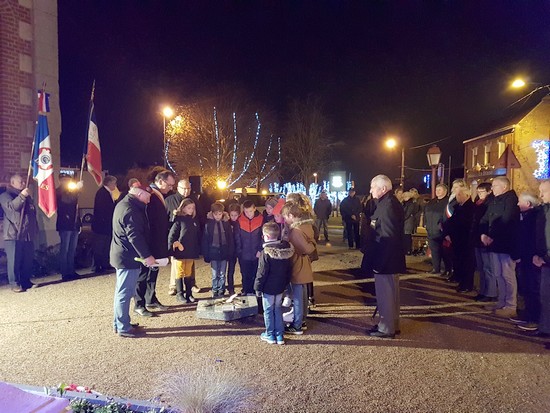 Dépôt de gerbe de fleurs par Monsieur Jean-François Castell, Maire de Violaines,