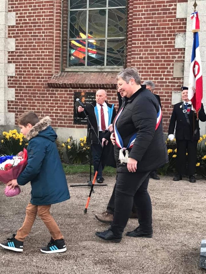Dépôt de gerbe de fleurs par Madame Isabelle VERMUSE 1ere Adjointe de Violaines;