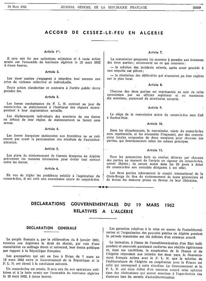 qui ont mis fin à la guerre d'Algérie, le 19 mars 1962.
