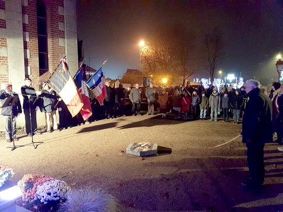 Dépôt de gerbe par Monsieur Jean-François CASTELL, Maire de Violaines, accompagné des
