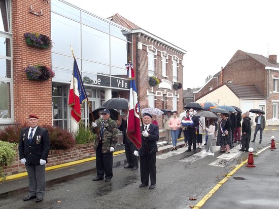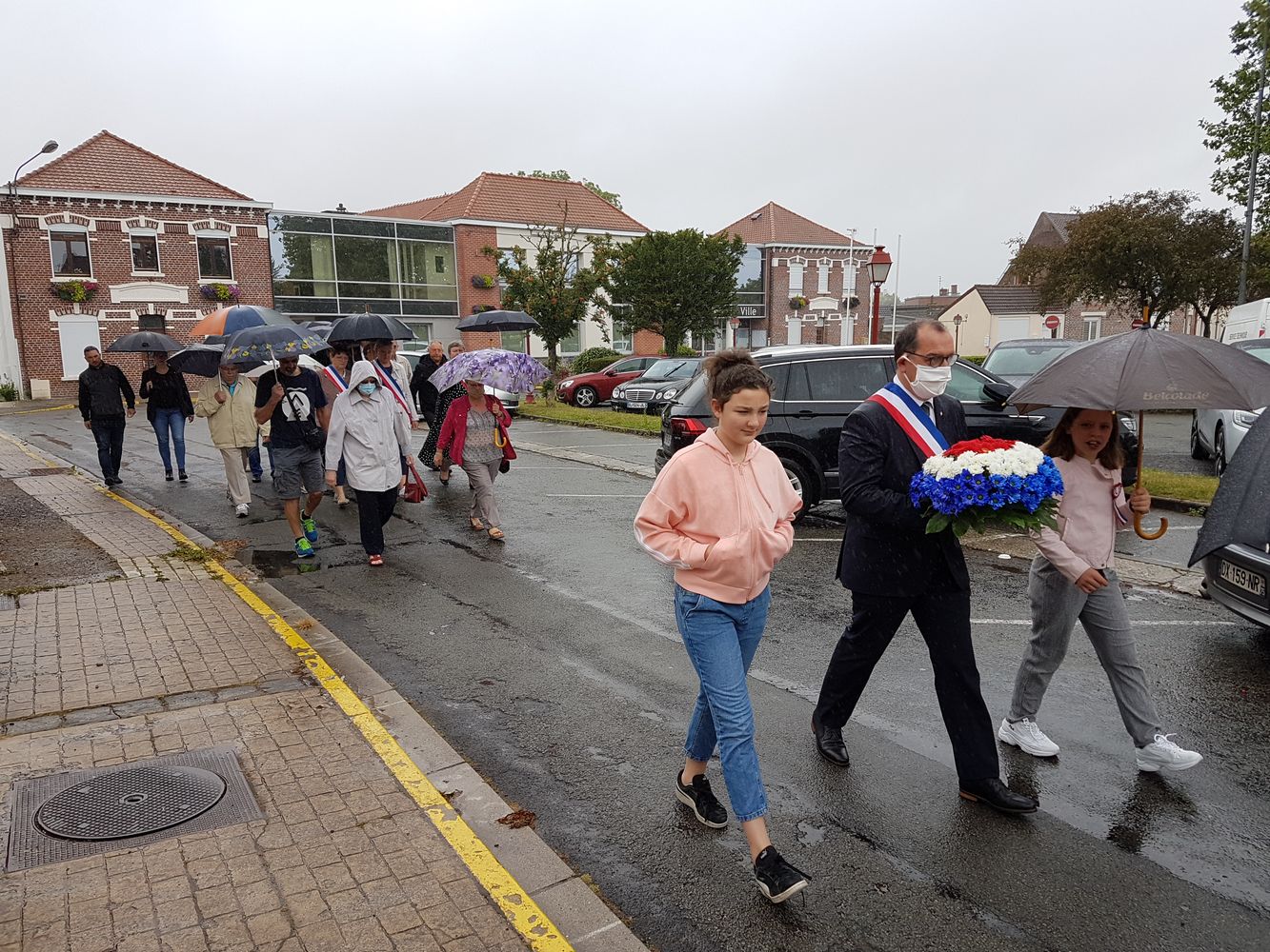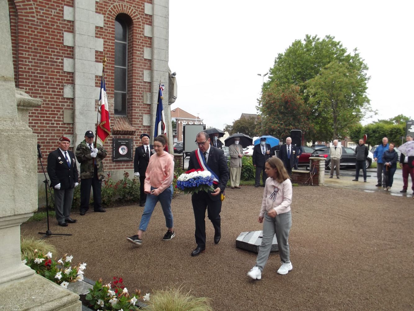 Dépôt de gerbe de fleurs par Monsieur Jean-François Castell, Maire de Violaines,