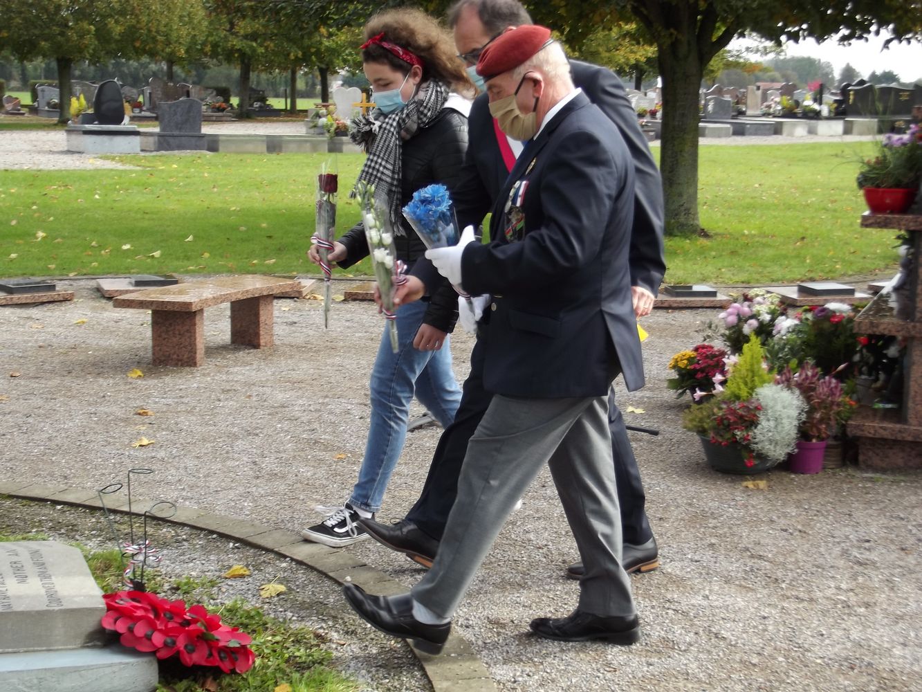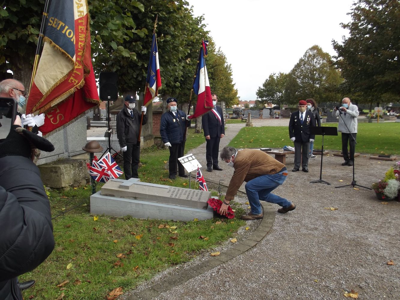 Monsieur Jean Jacques Delabroye pose la coronne de coquelicots.