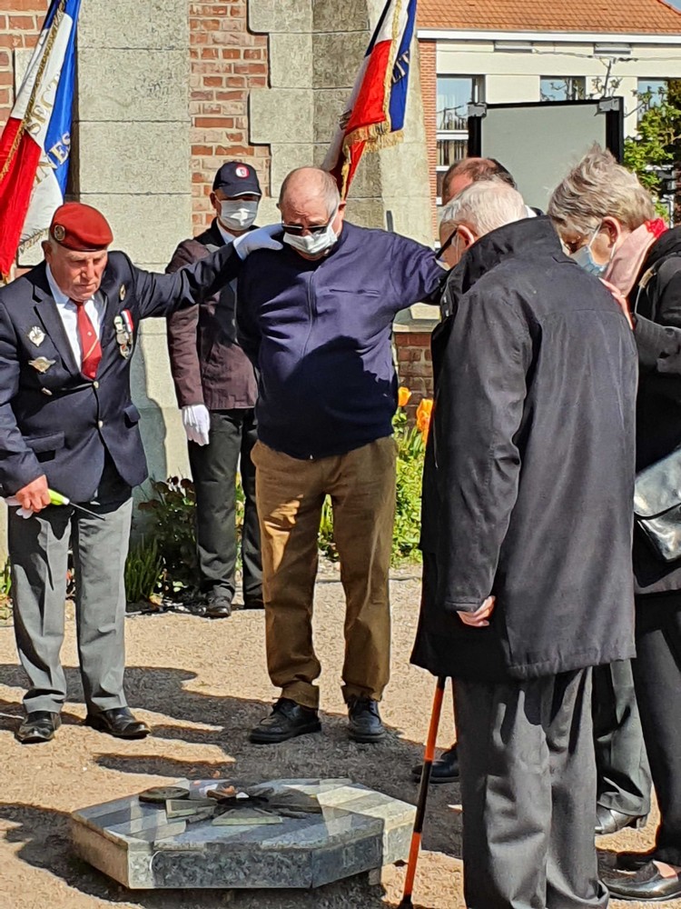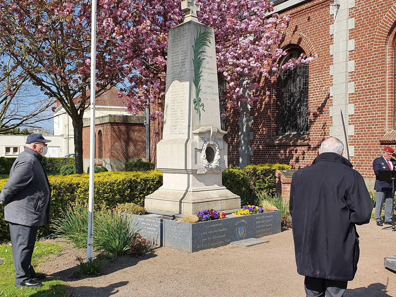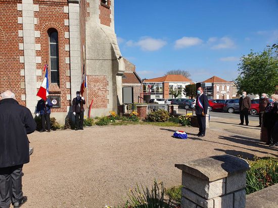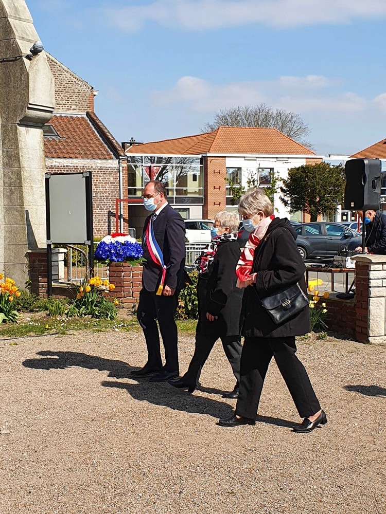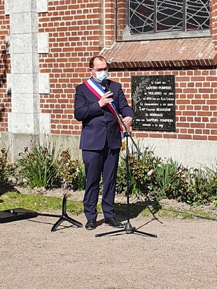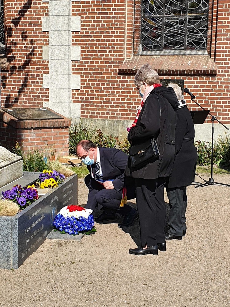Dépôt de fleurs par Monsieur Jean-François Castell, Maire de Violaines accompagné,