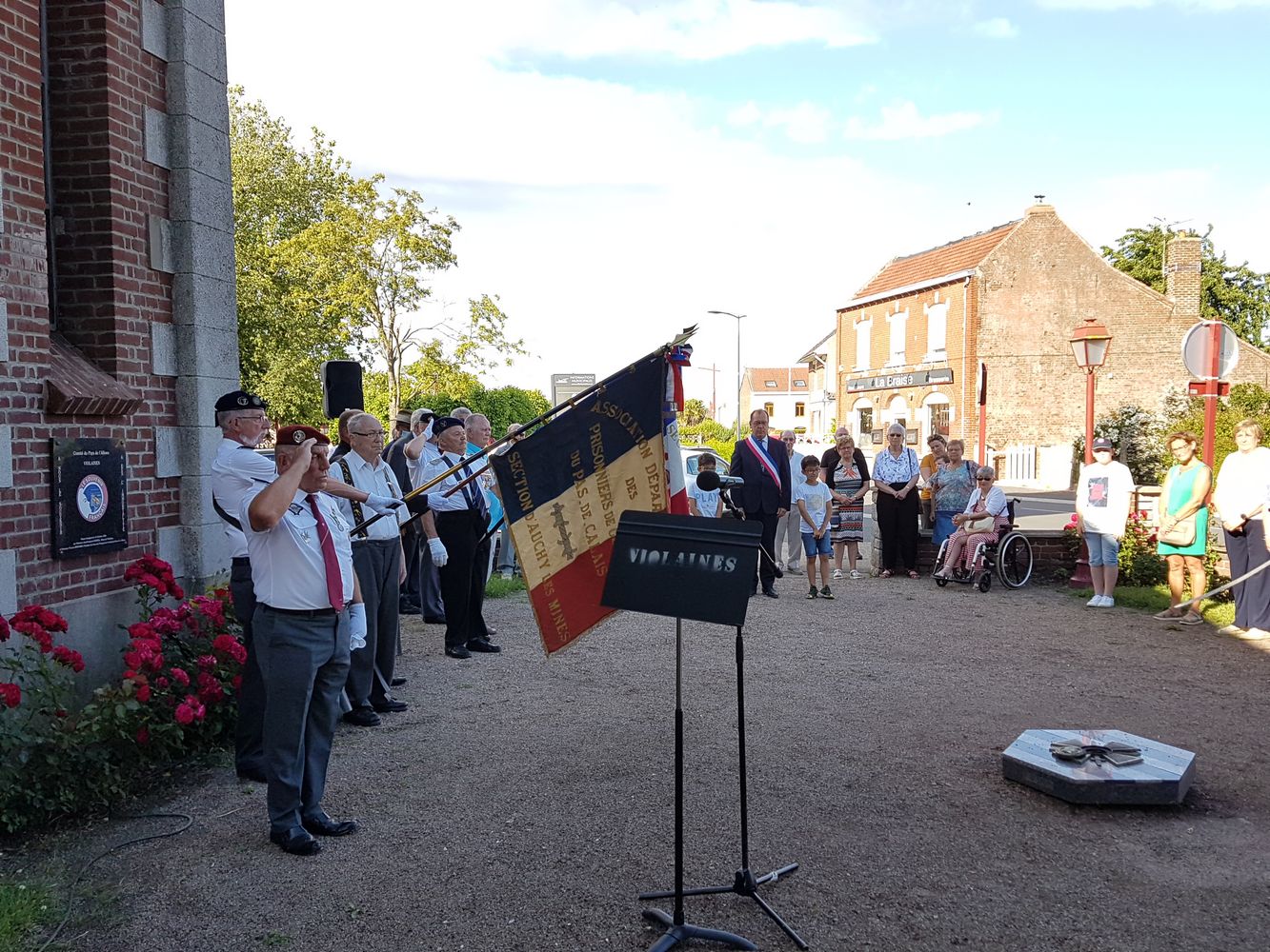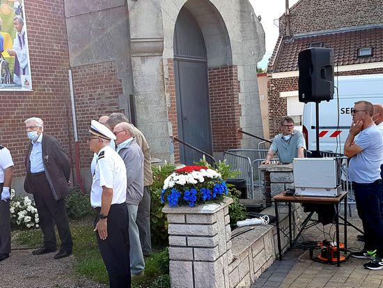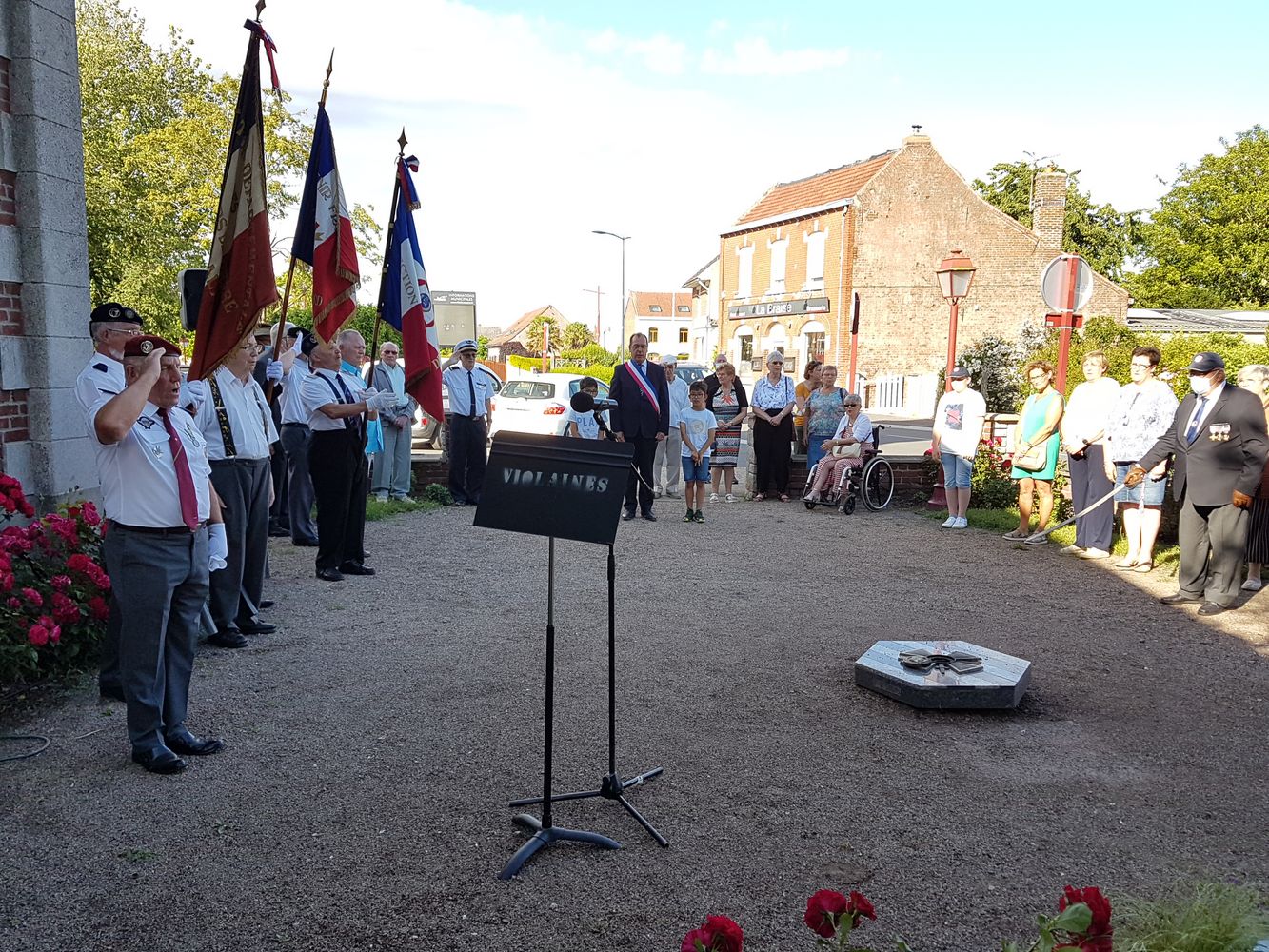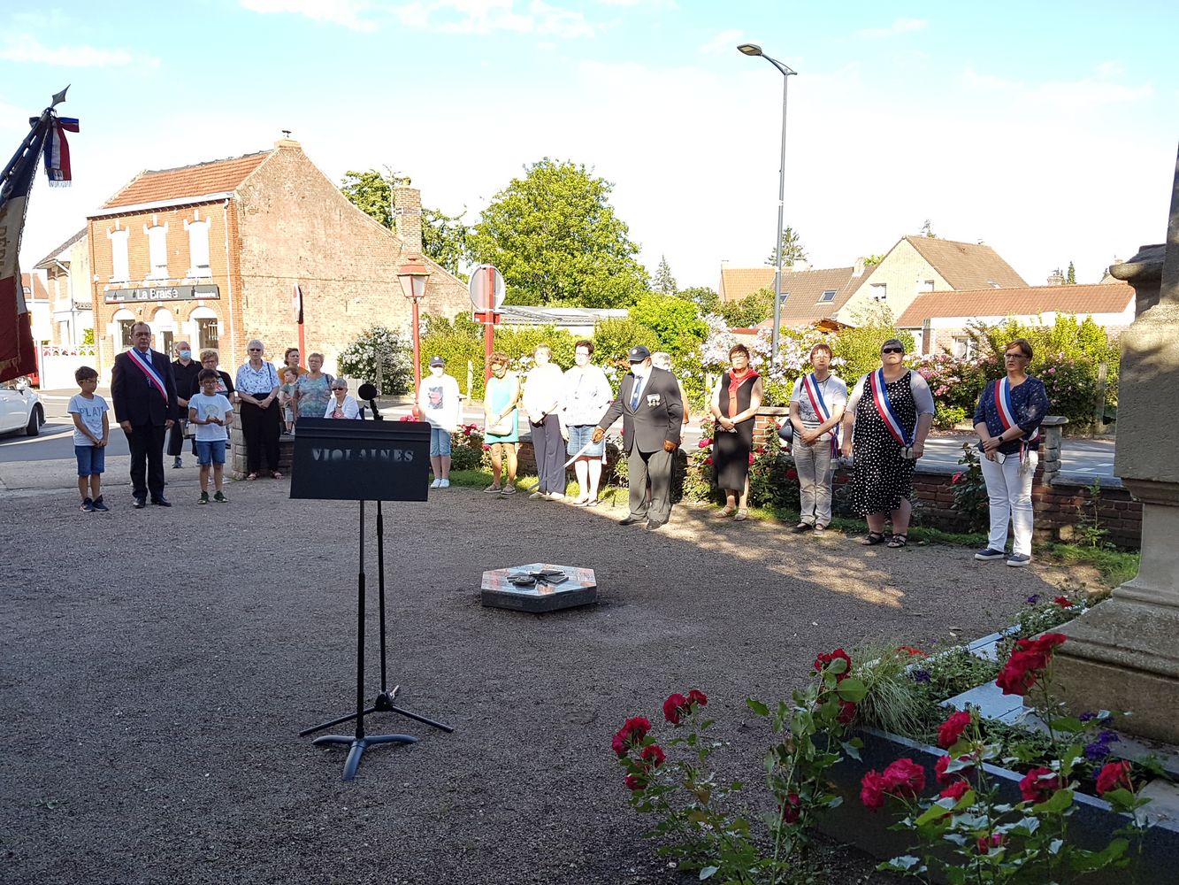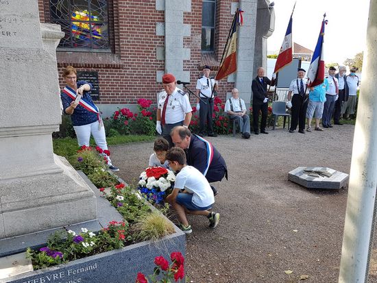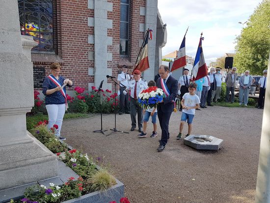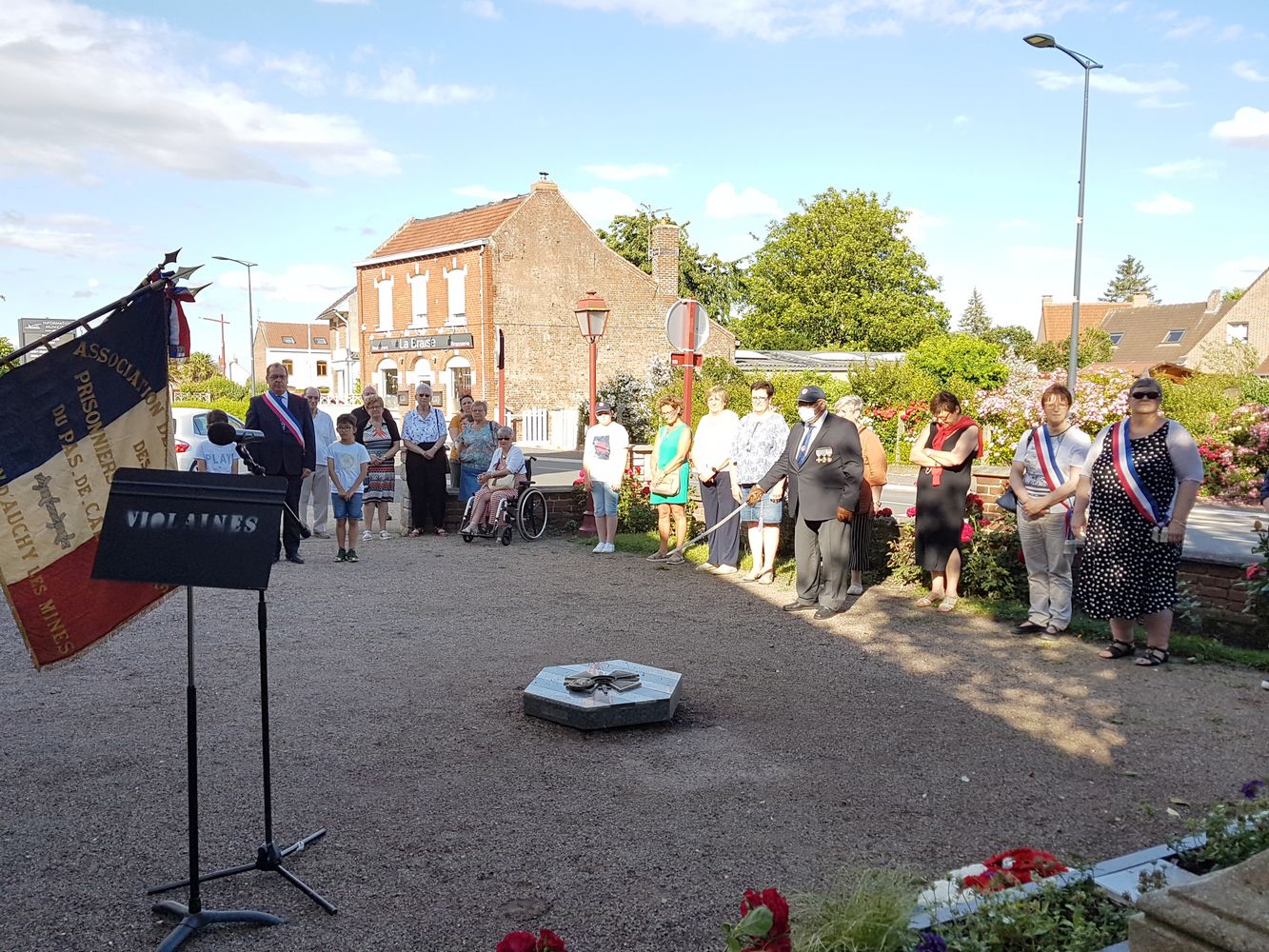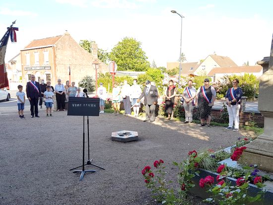 Dépôt de fleurs par Monsieur Jean-François Castell, Maire de Violaines accompagné.