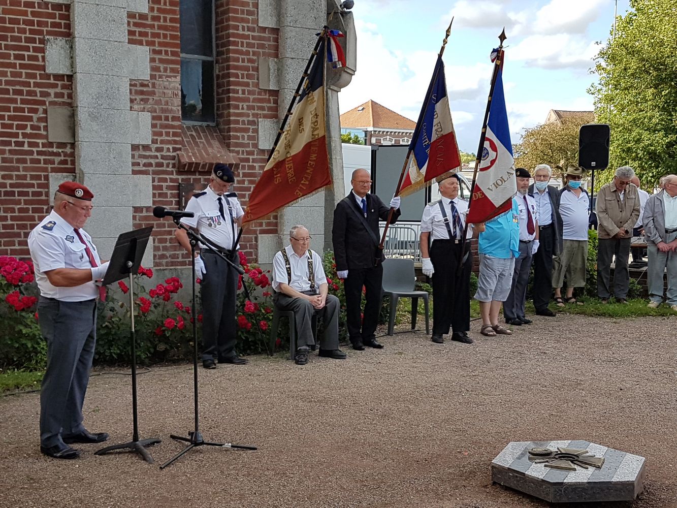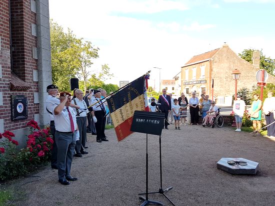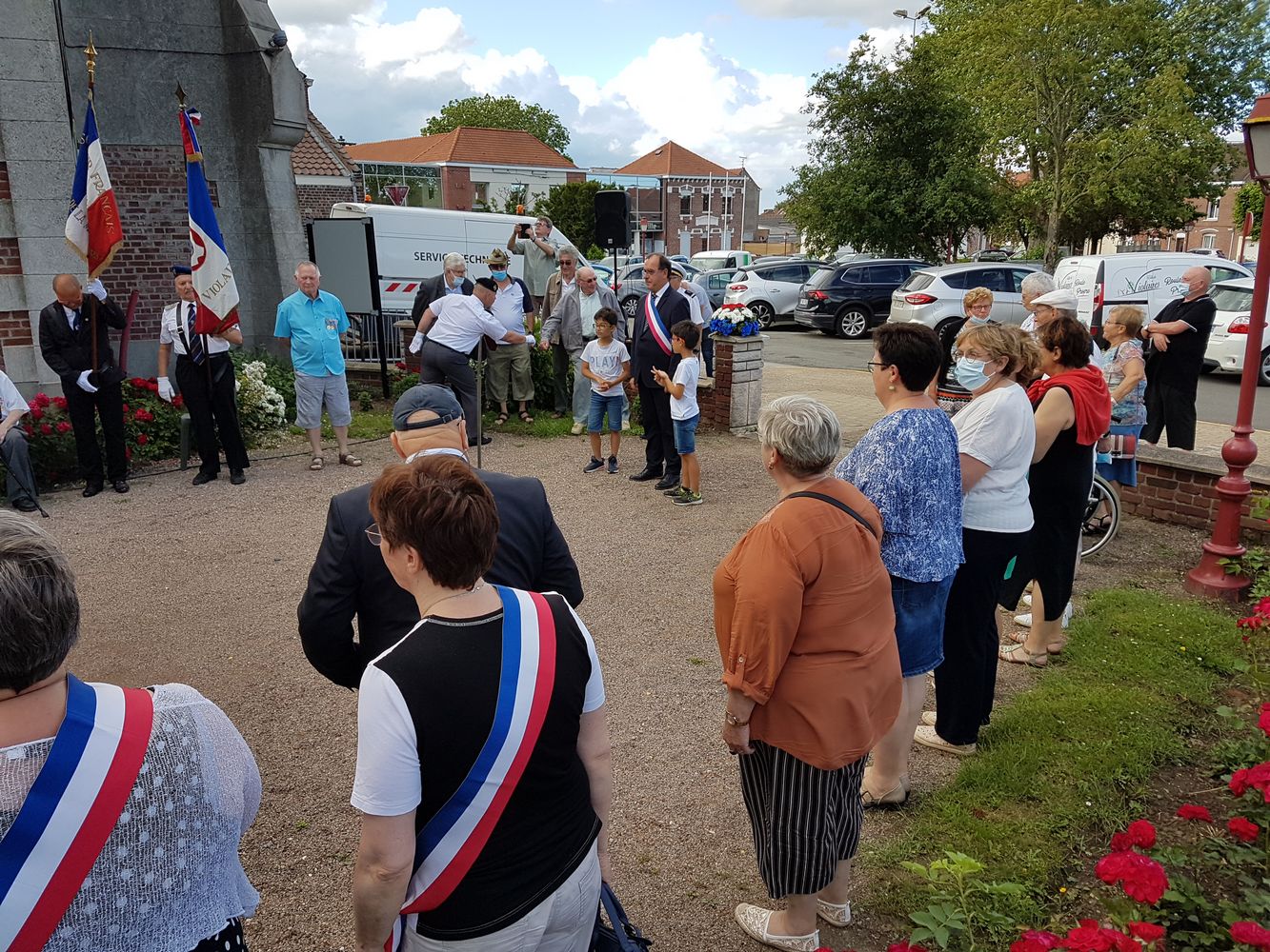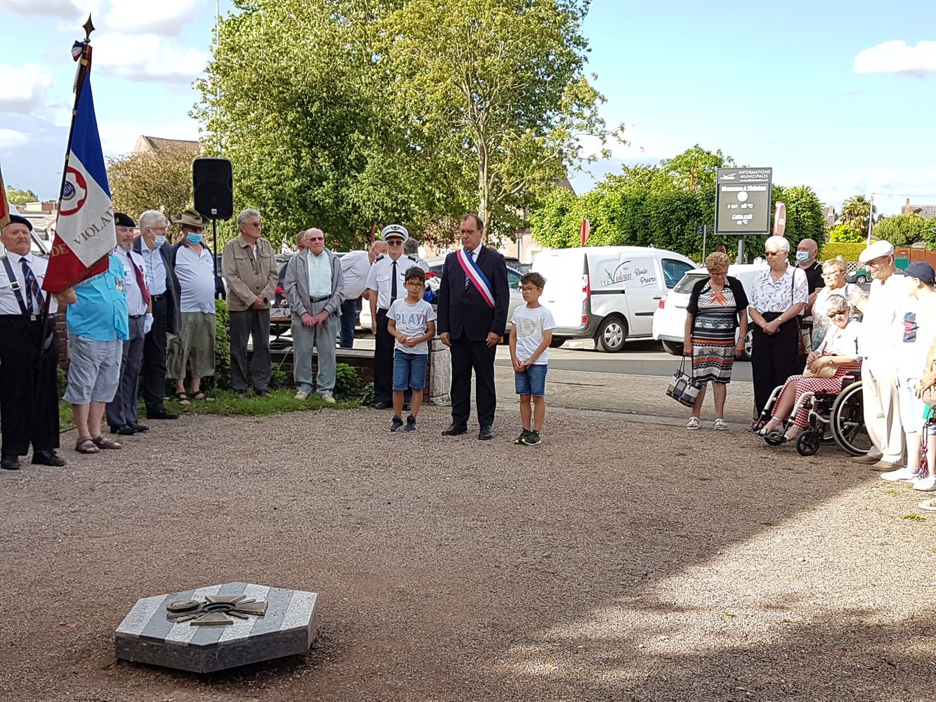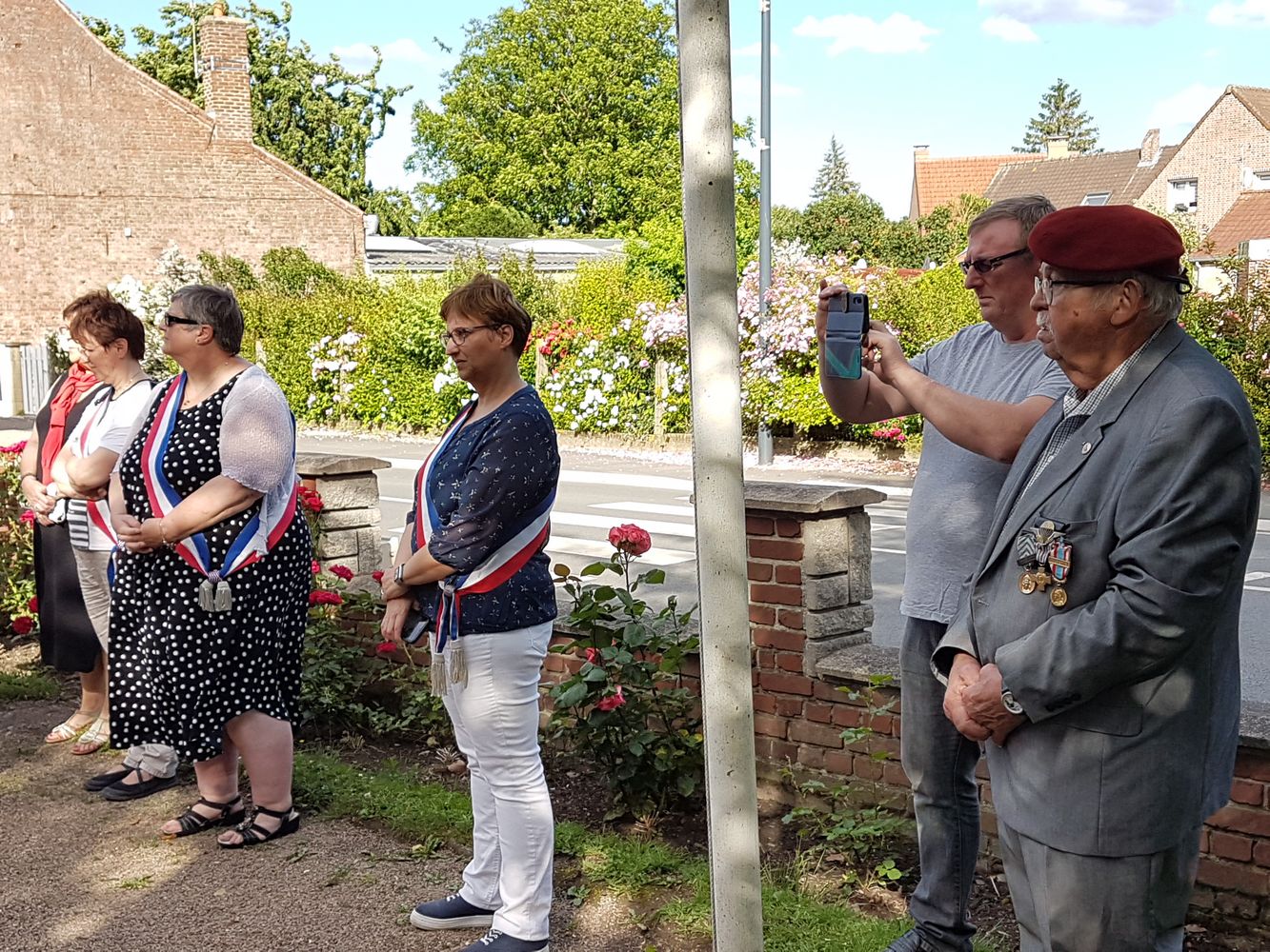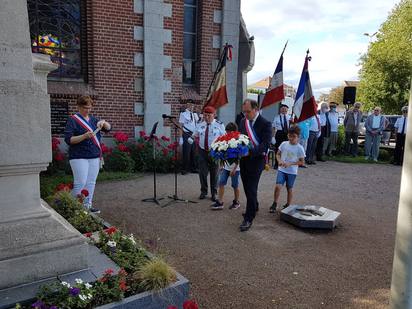 Dépôt de fleurs par Monsieur Jean-François Castell, Maire de Violaines accompagné.