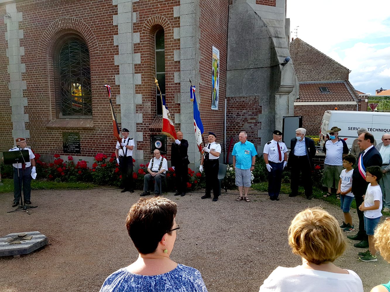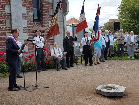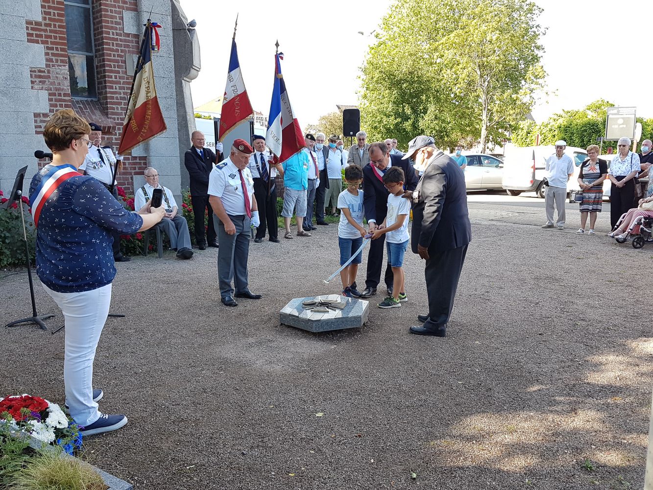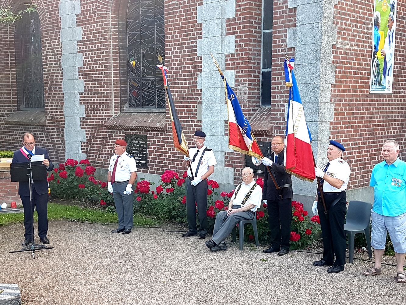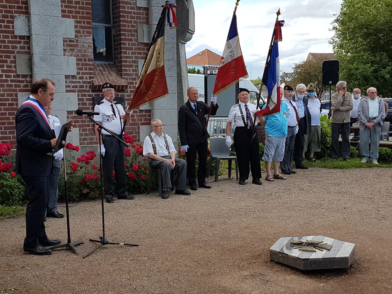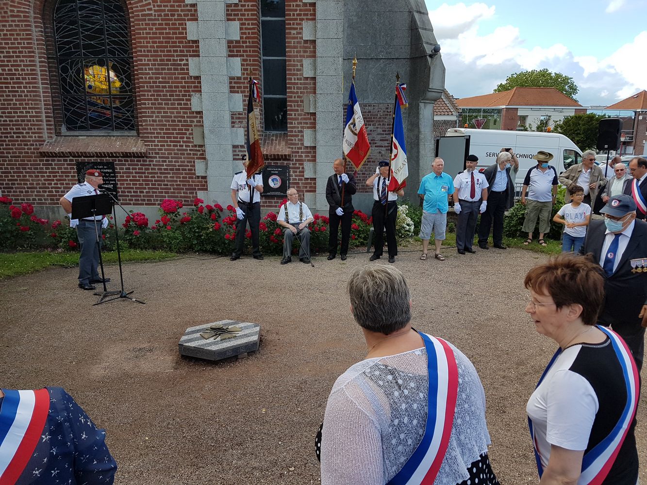Dépôt de fleurs par Monsieur Jean-François Castell, Maire de Violaines accompagné.