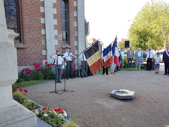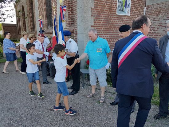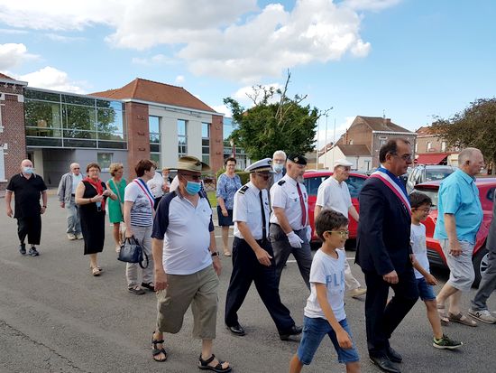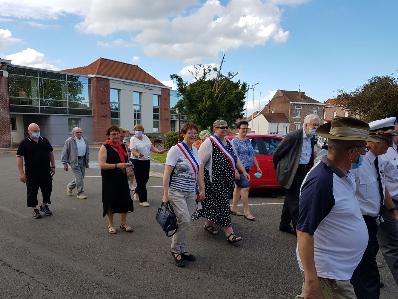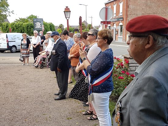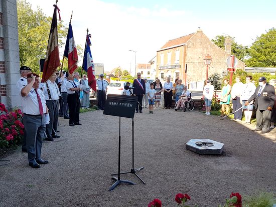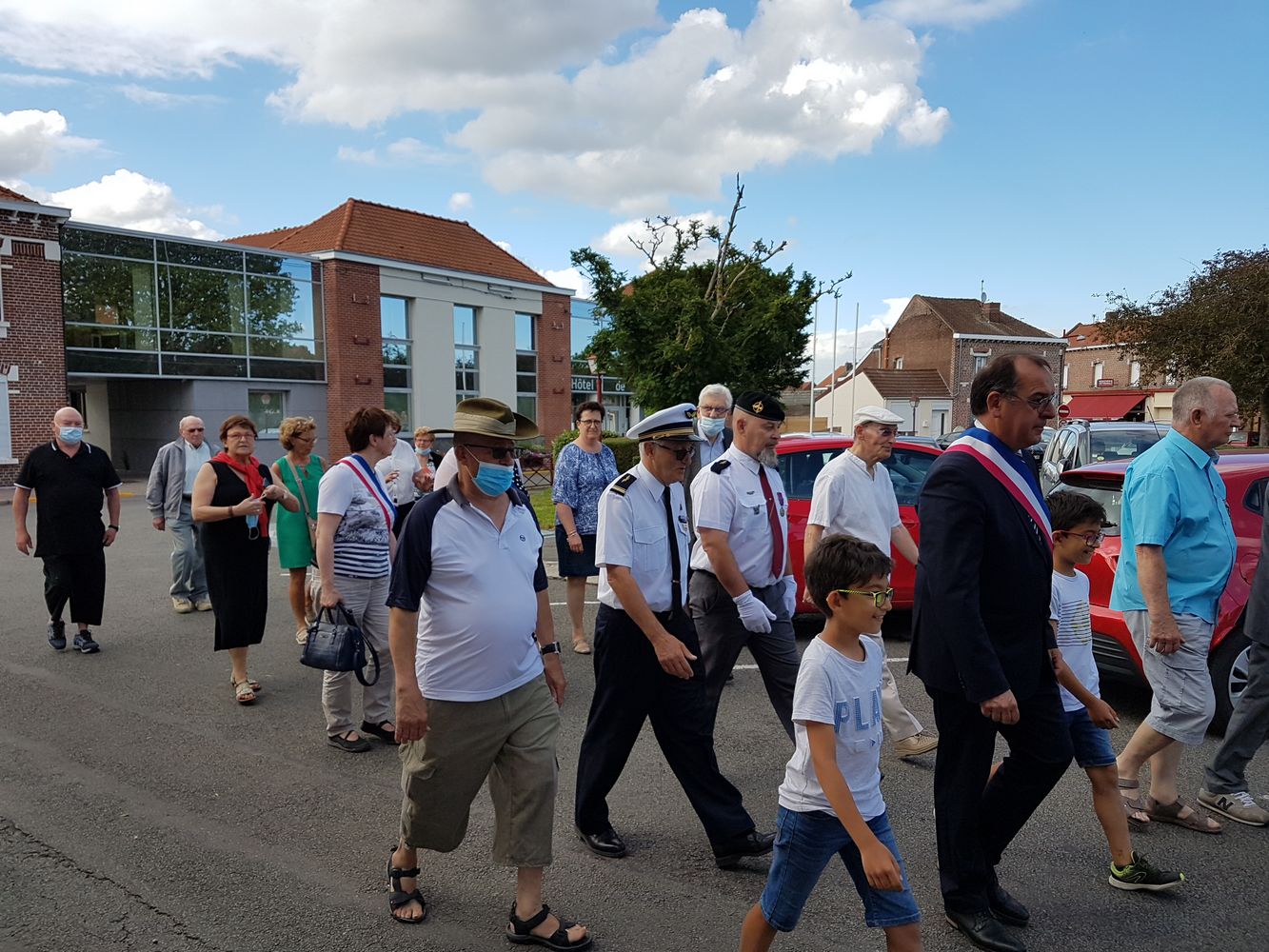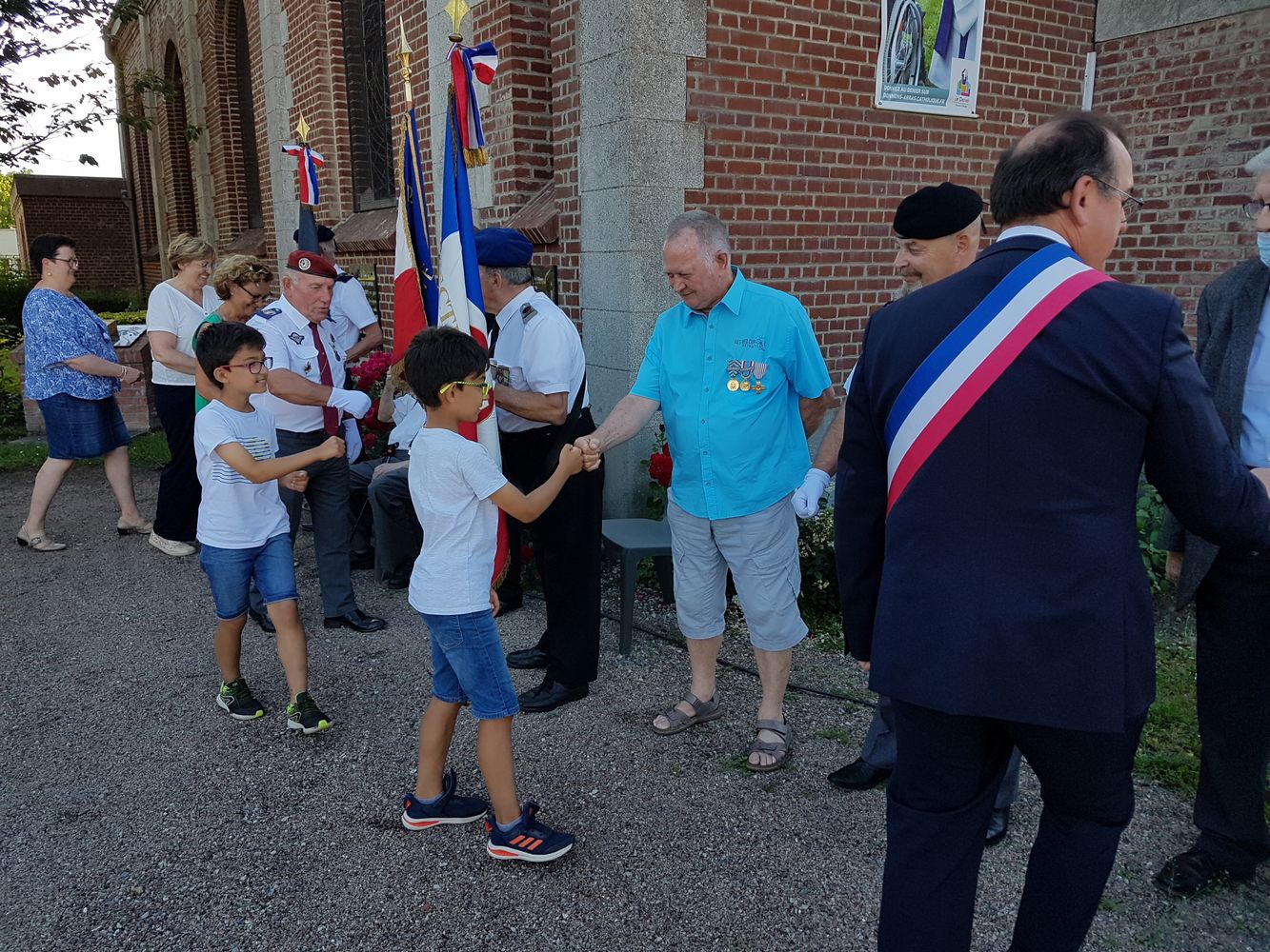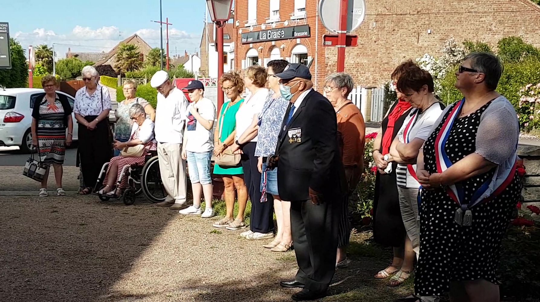 Dépôt de fleurs par Monsieur Jean-François Castell, Maire de Violaines accompagné.