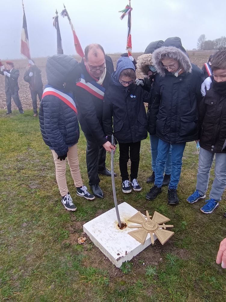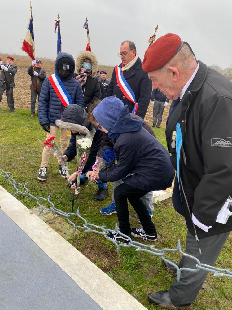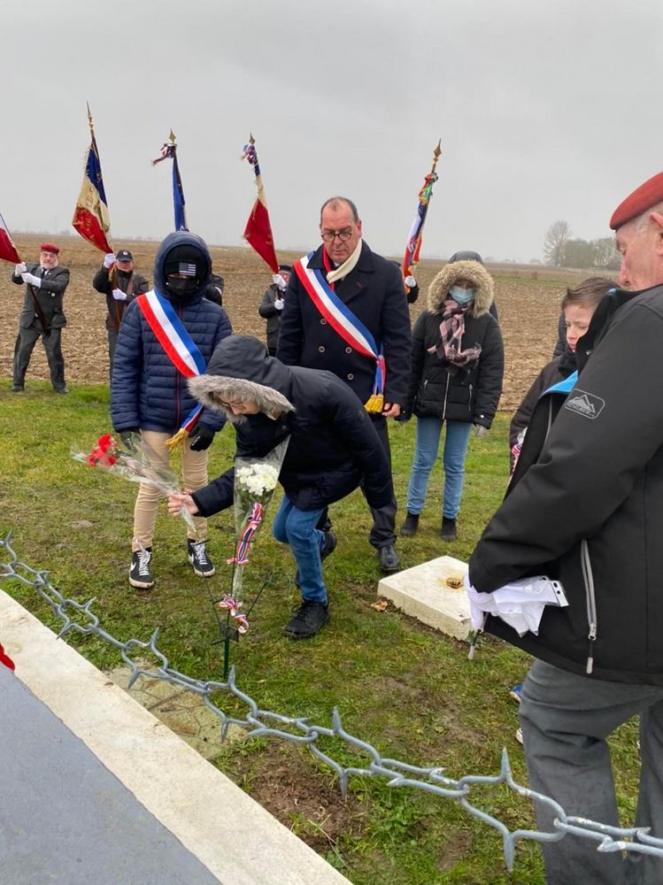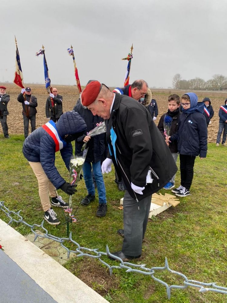 Monsieur Mathis Mouquet, Maire du CMJ et ses Conseillers à déposer des fleurs.