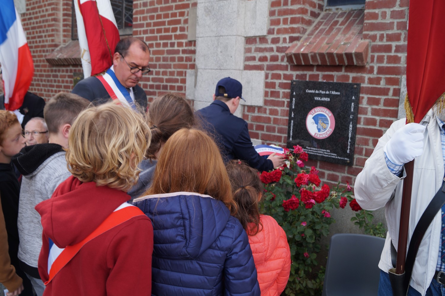 Dépôt de fleurs par Monsieur Jean-François Castell, Maire de Violaines,