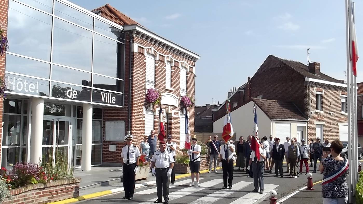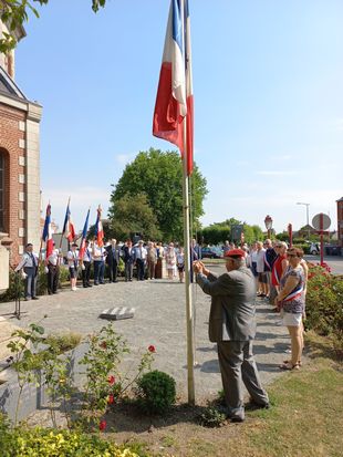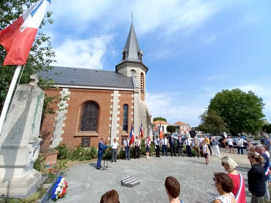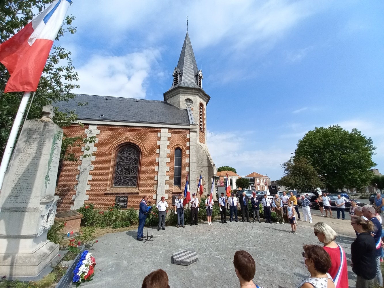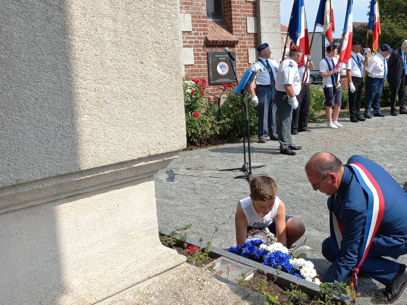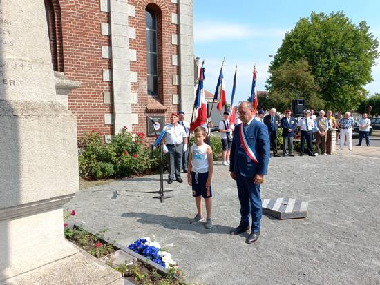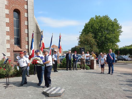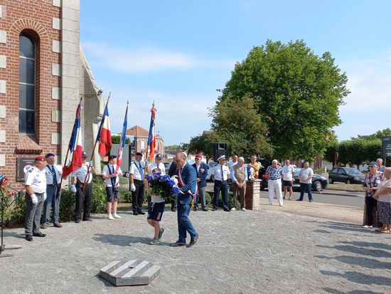 Dépôt de gerbe de fleurs par Monsieur Jean-François Castell, Maire de Violaines,