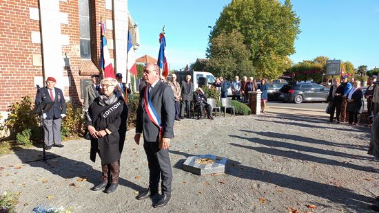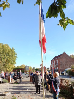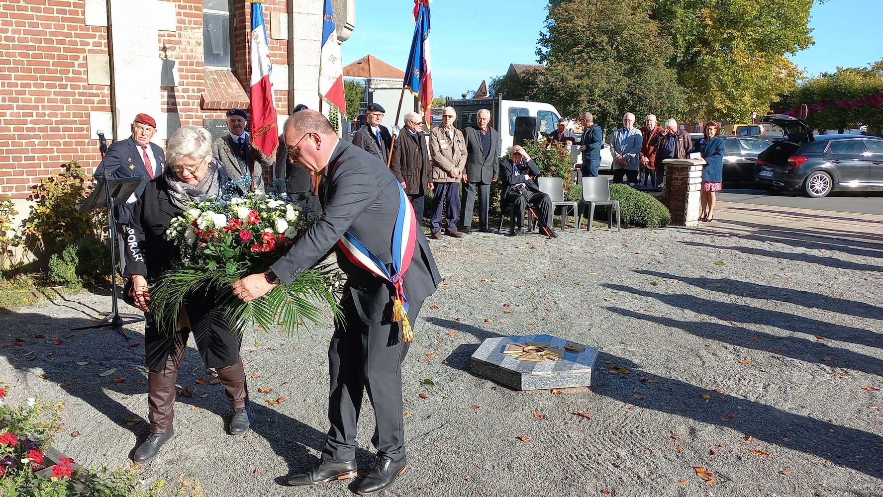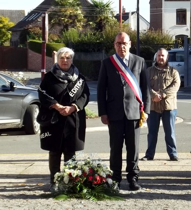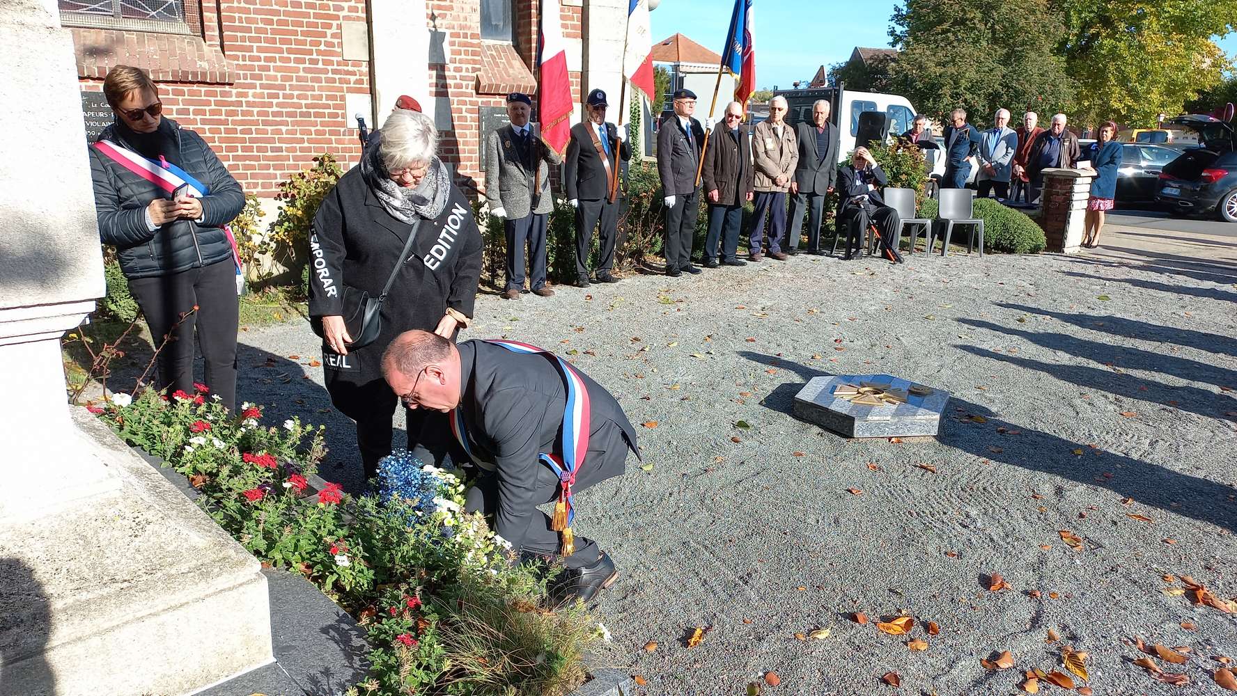 Dépôt de fleurs par Monsieur Jean-François Castell, Maire de Violaines, accompagné de