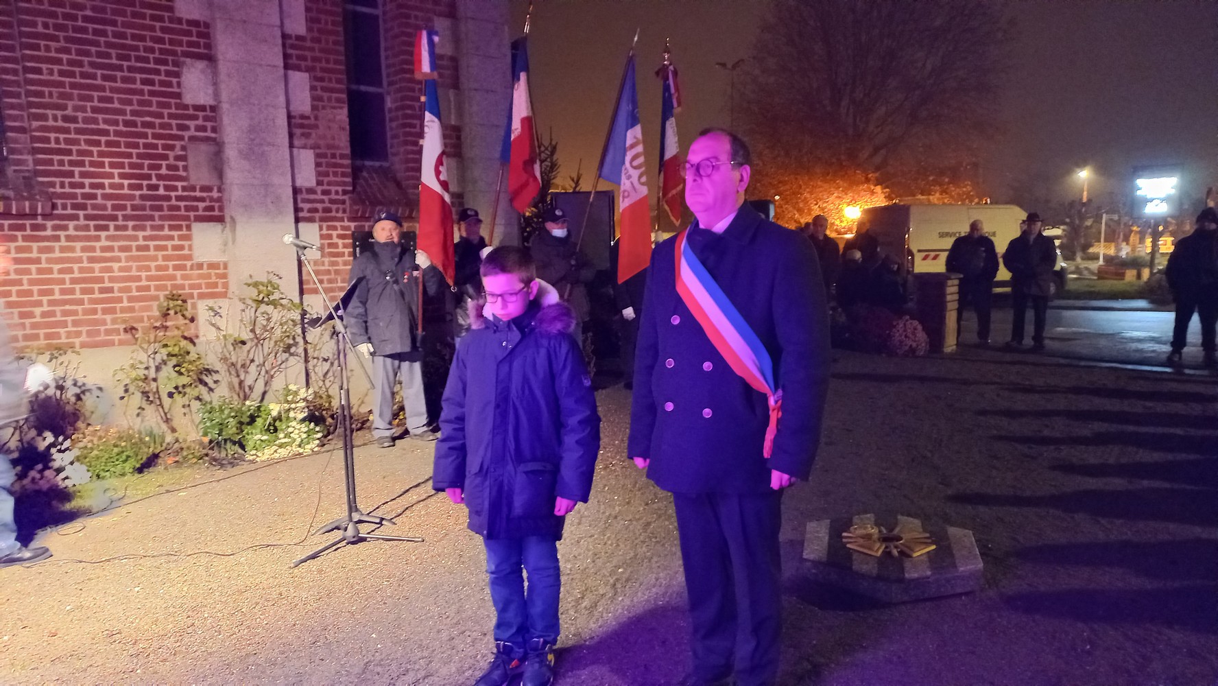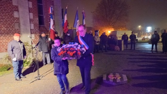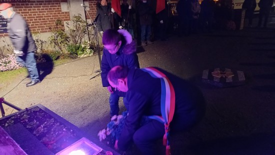 Dépôt de fleurs, par Monsieur Jean-François Castell, Maire de Violaines accompagné
