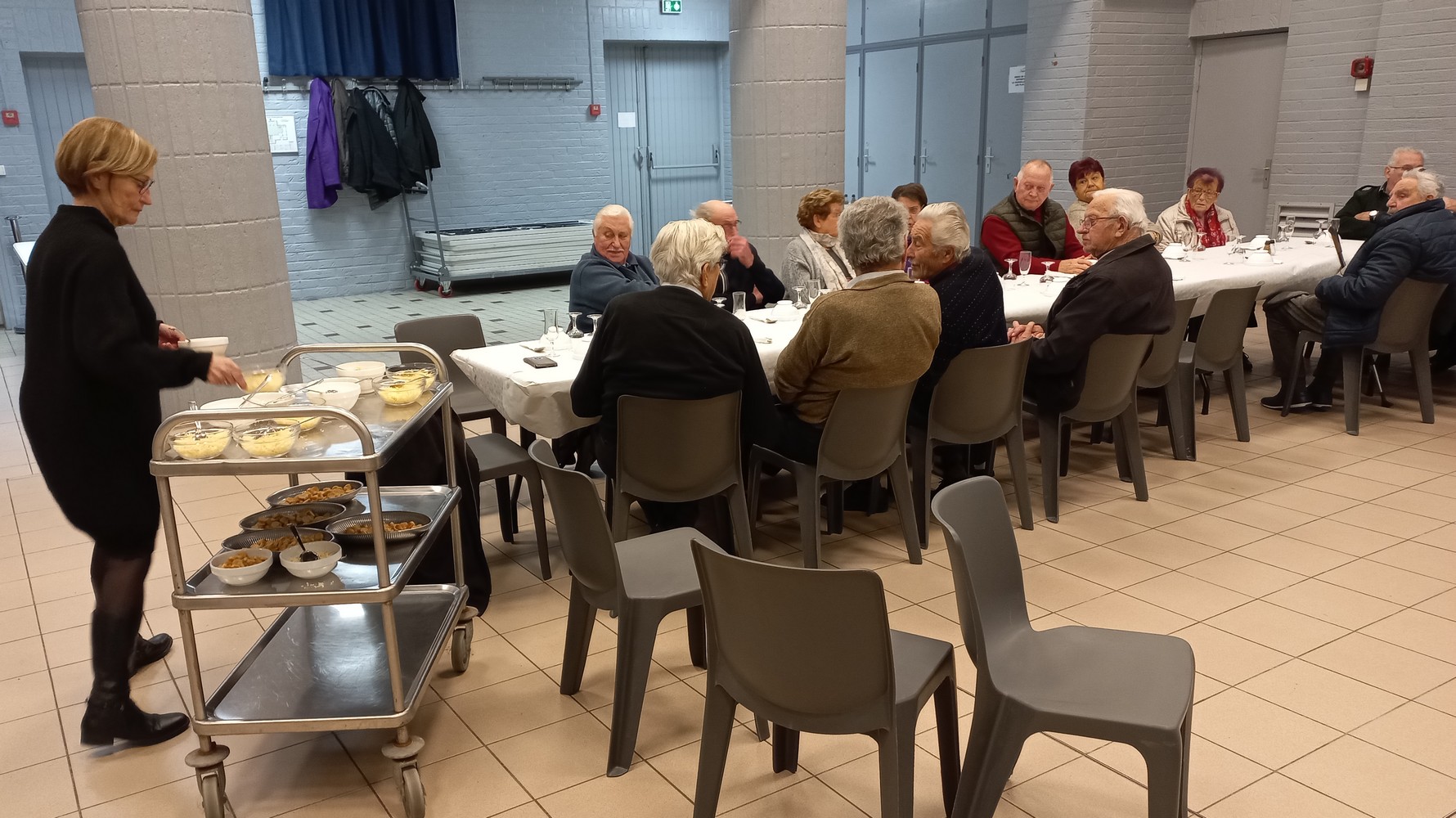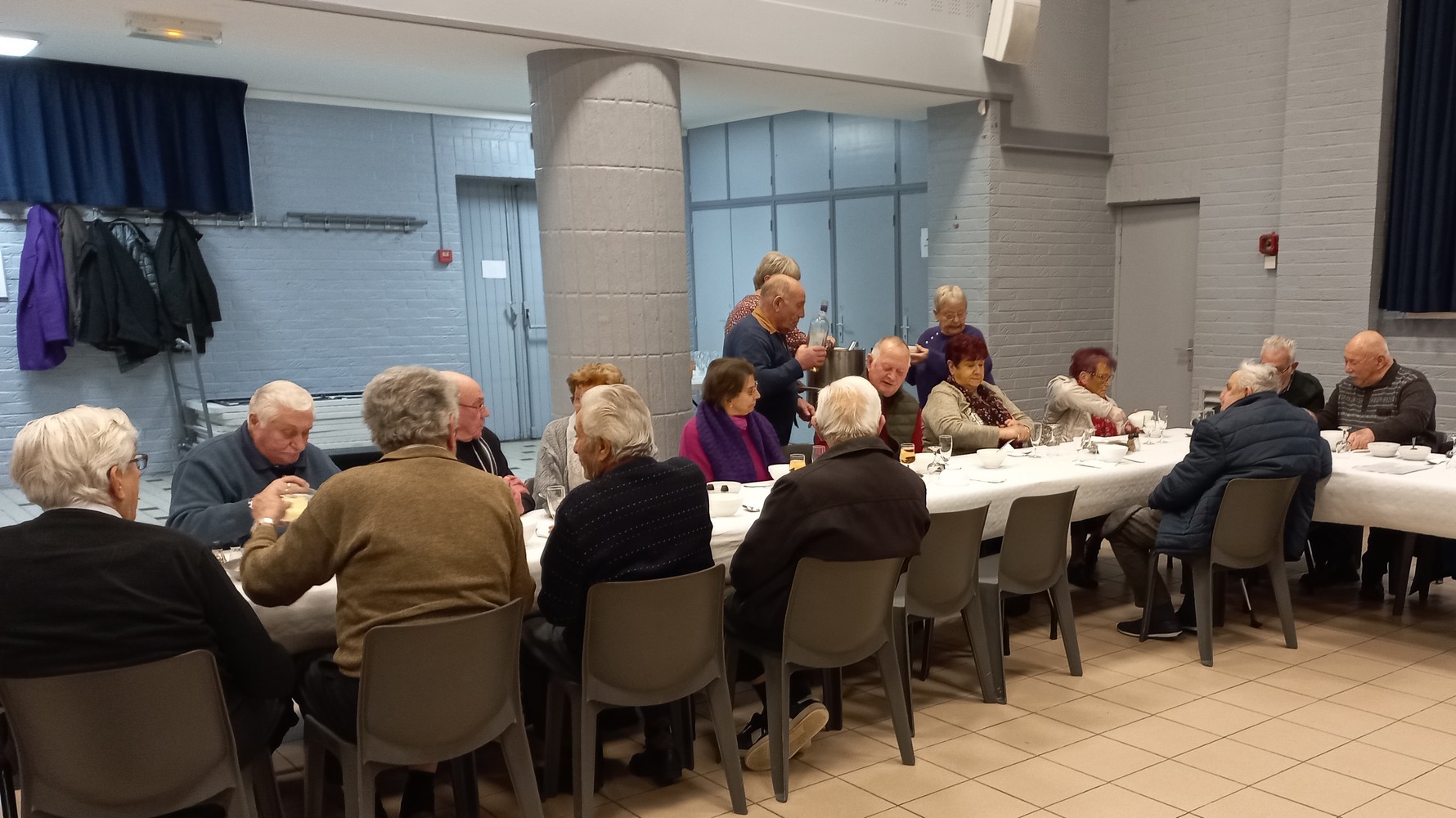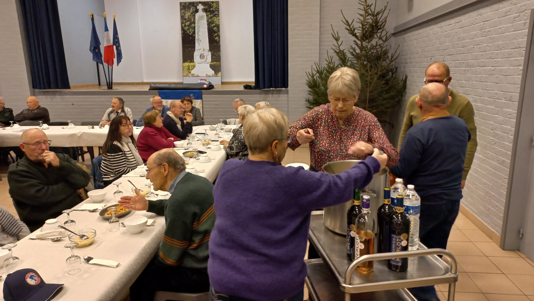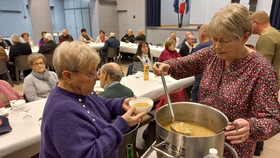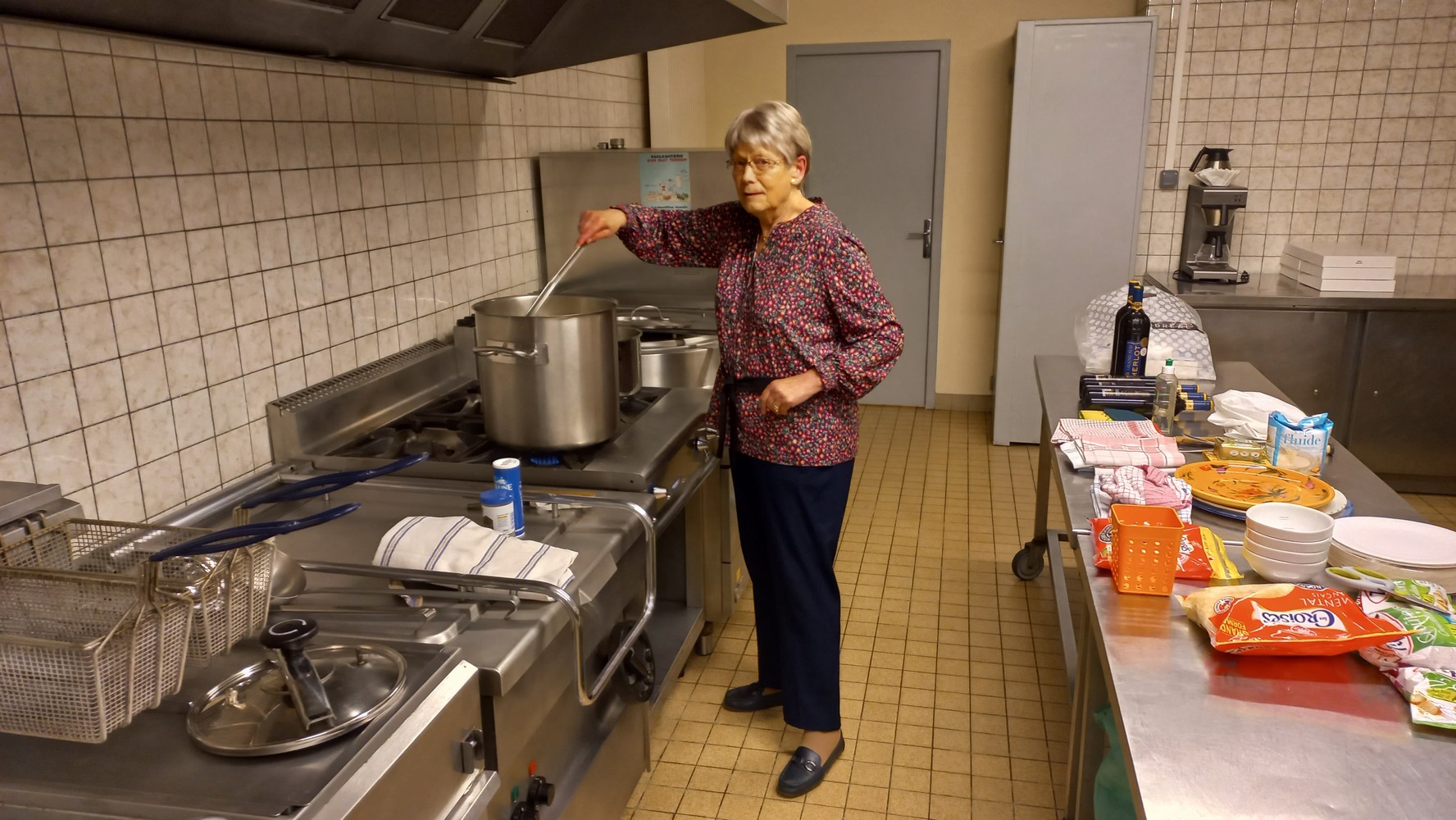 Madame Désirée Fauquenoy touille sa soupe à l’oignon.