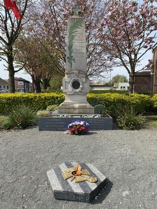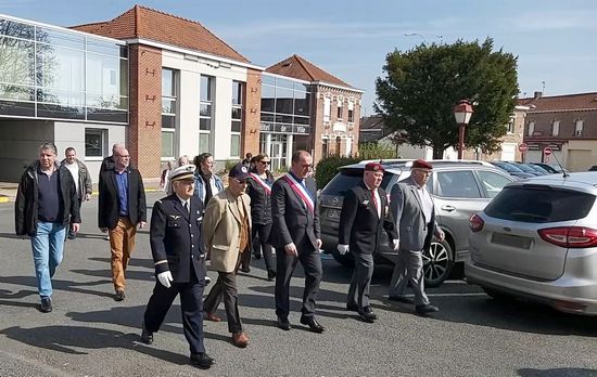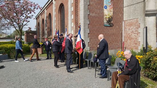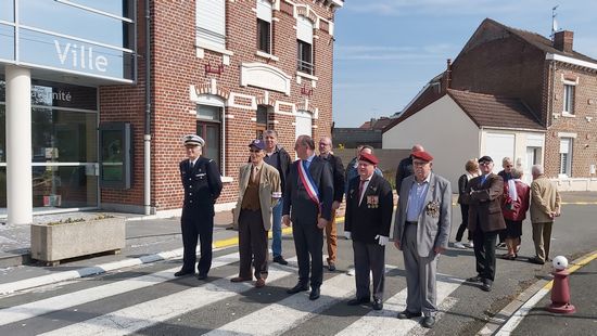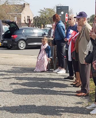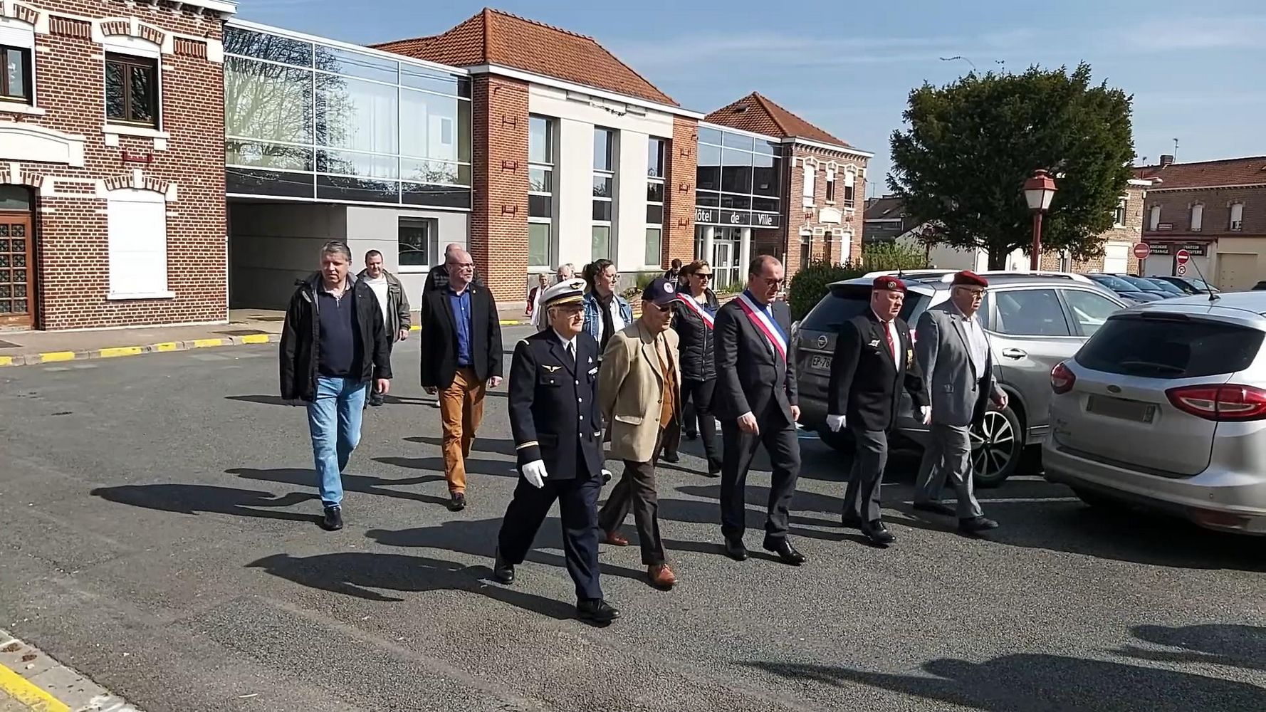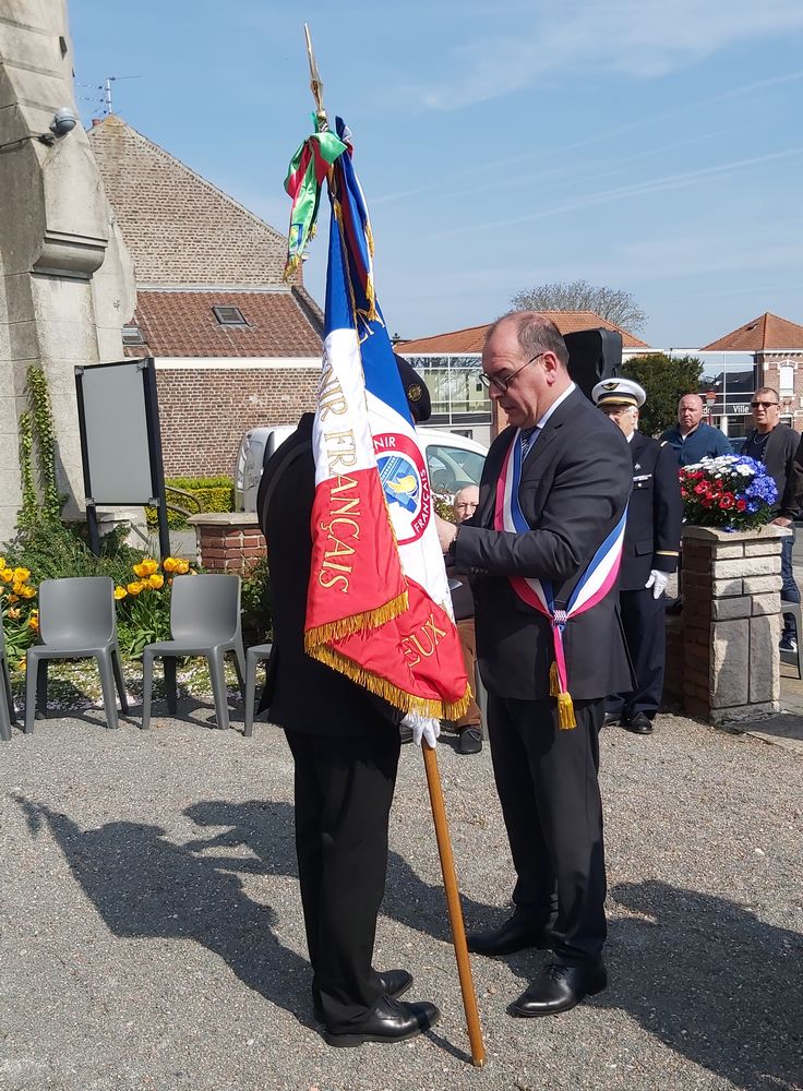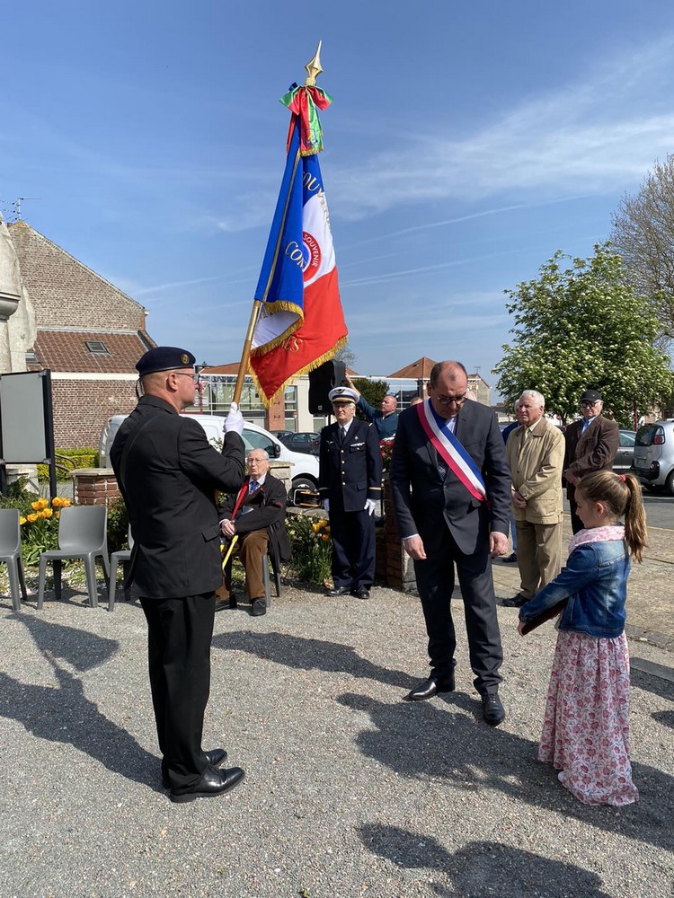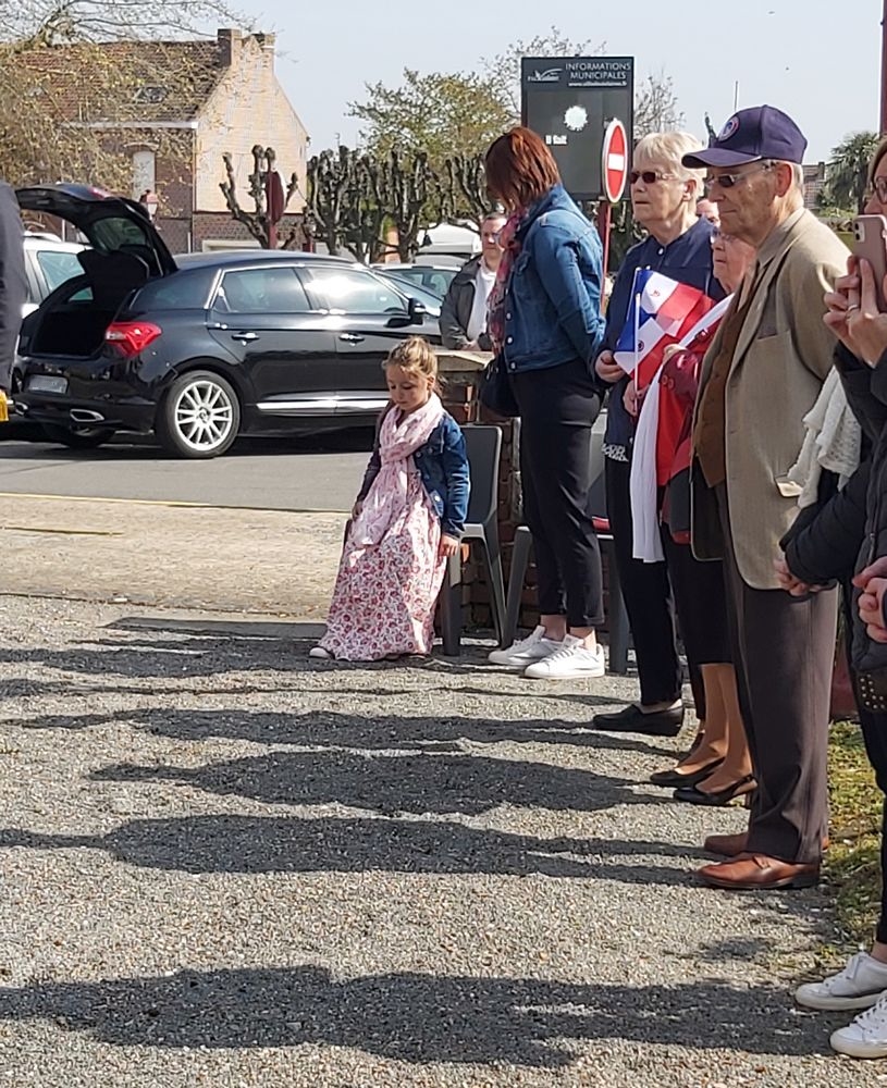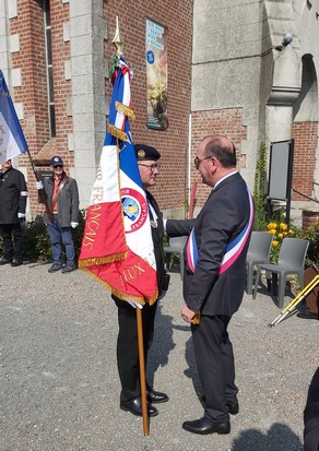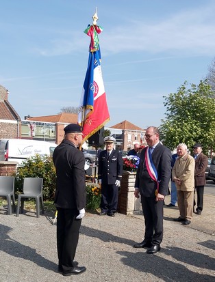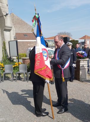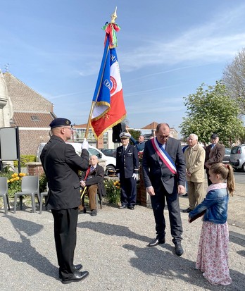 Dépôt de fleurs par Monsieur Jean-François CASTELL, Maire de Violaines, accompagné du Major Jean Pierre Gasnier, et d'une jolie demoiselle. |