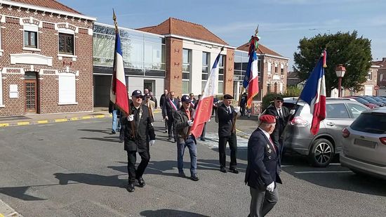 Ravivage de la Flamme du Souvenir. Puis les drapeaux se sont inclinés rendant ainsi hommage aux victimes des guerres; 30 secondes plus plus tard se relèvent au chant de la marseillaise. |