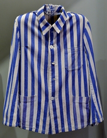 ![]() L’écrin de la flamme du souvenir est rayé représentant l’uniforme des prisonniers des camps. |