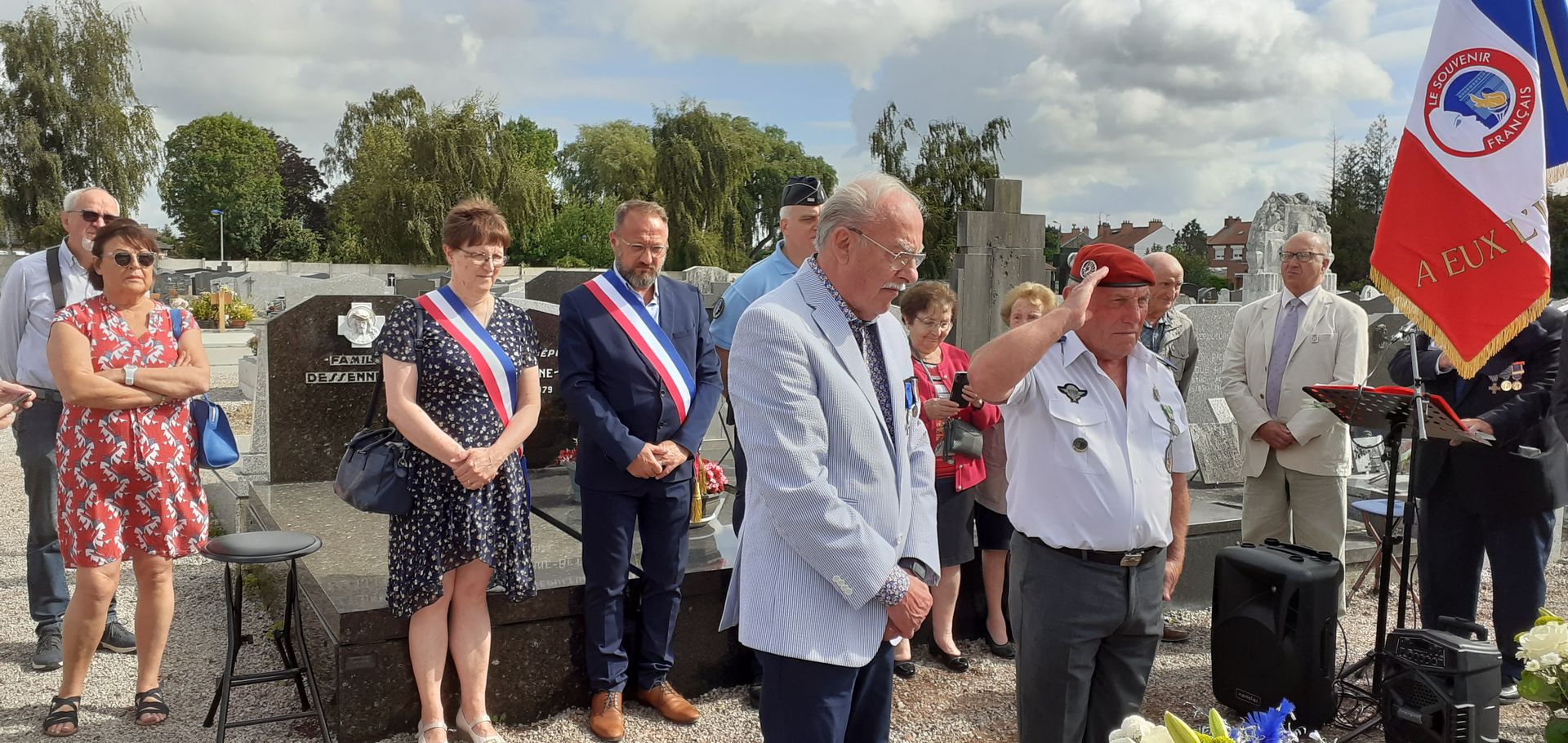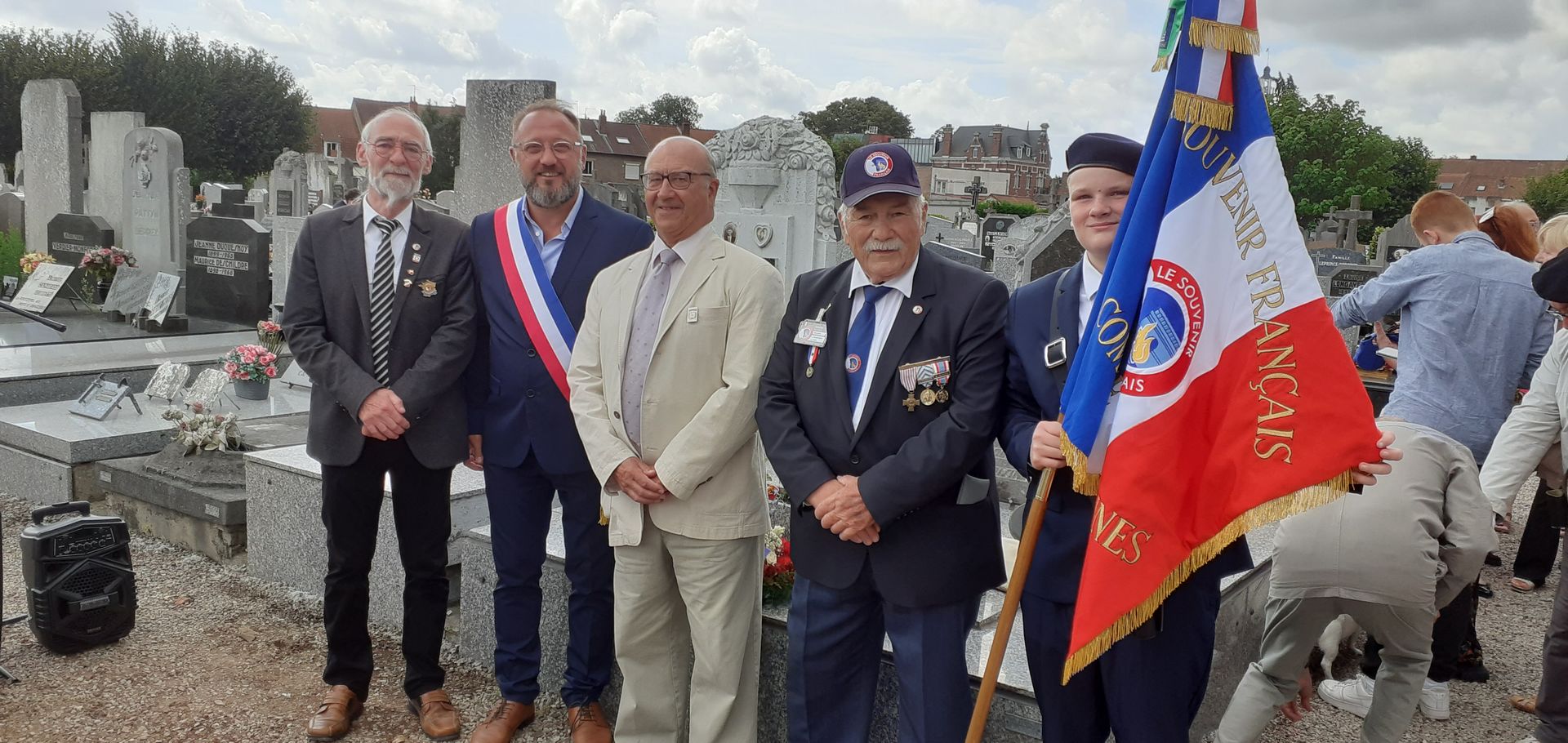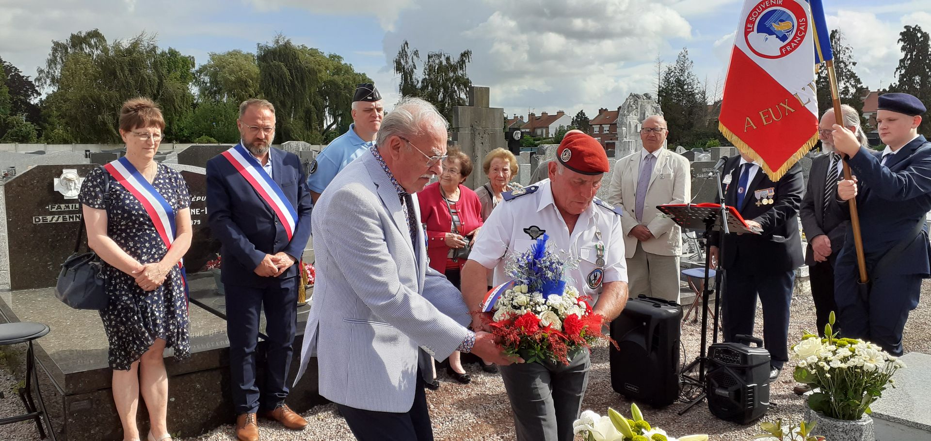dévoilent la corcarde tricolore du Souvenir Français.