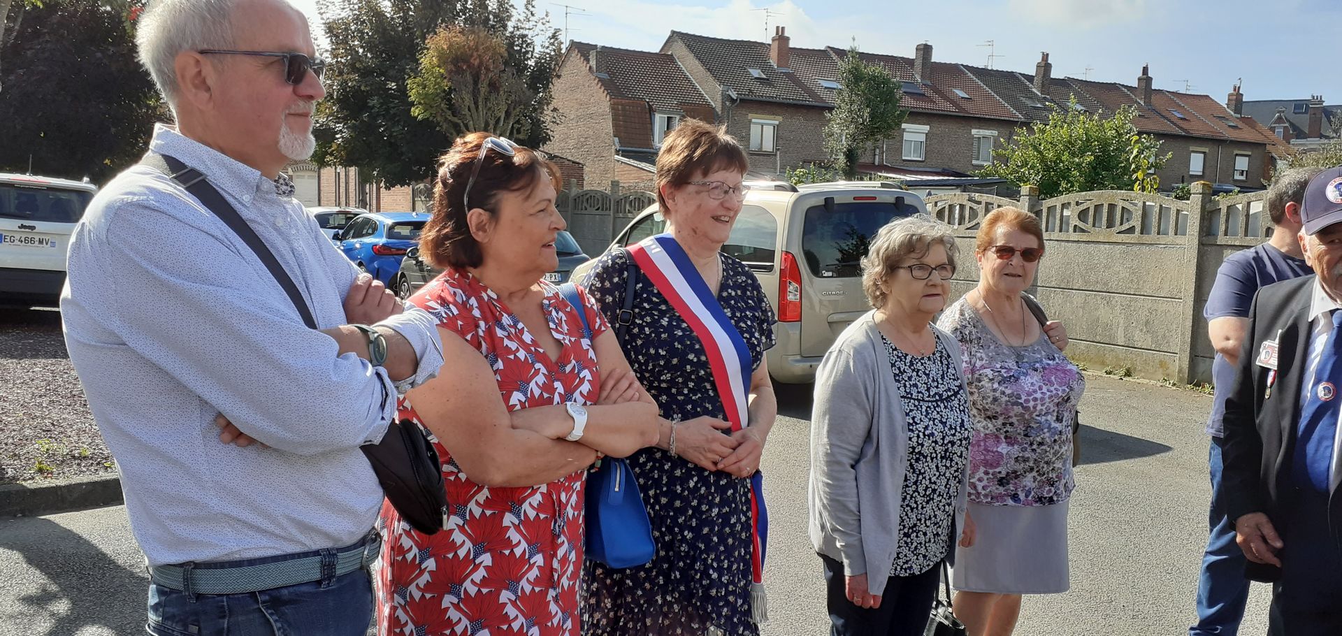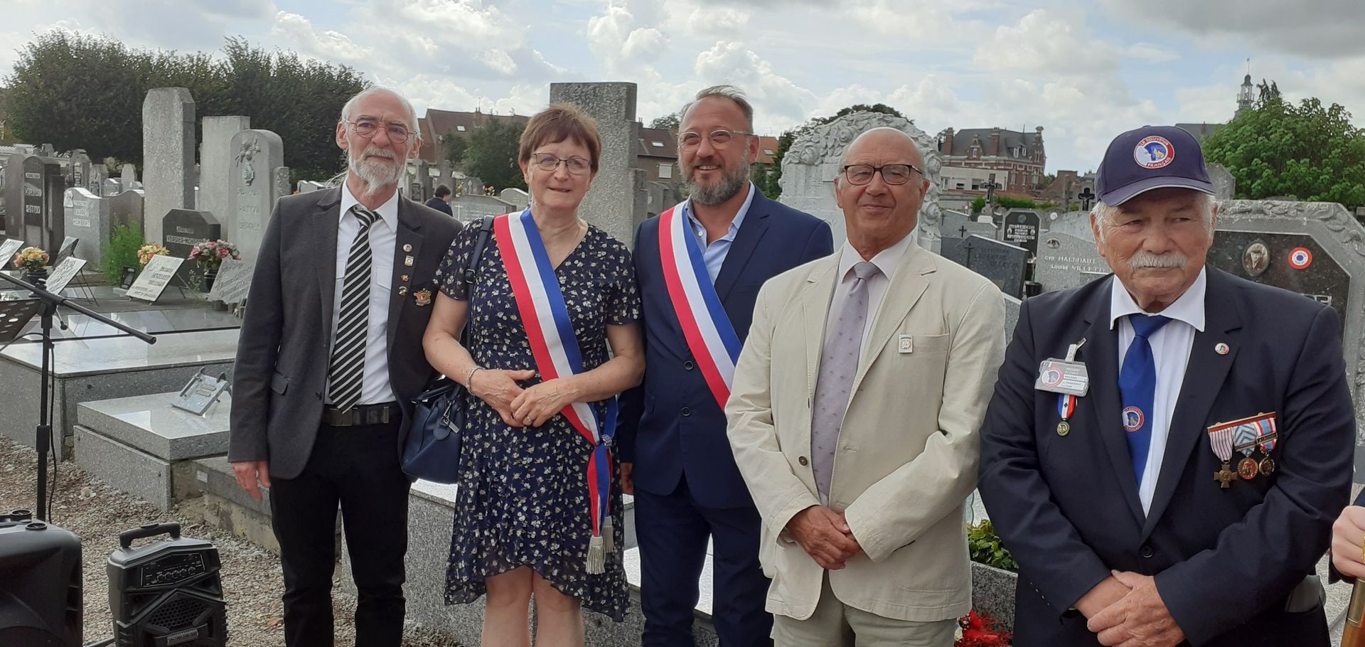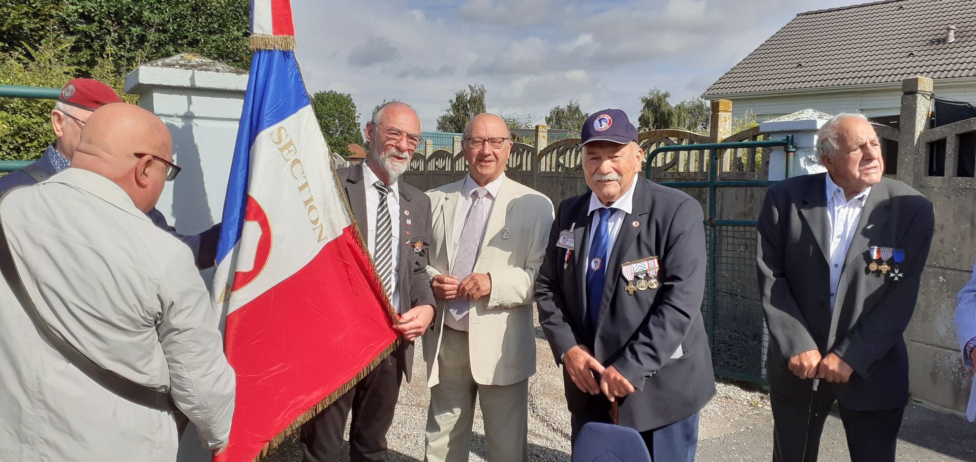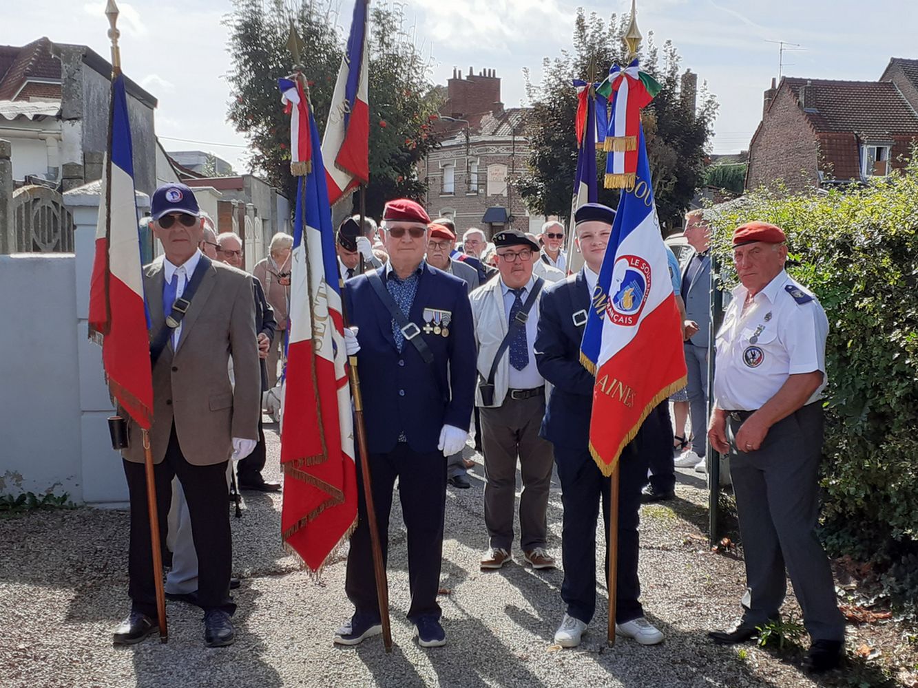 dévoilent la corcarde tricolore du Souvenir Français.