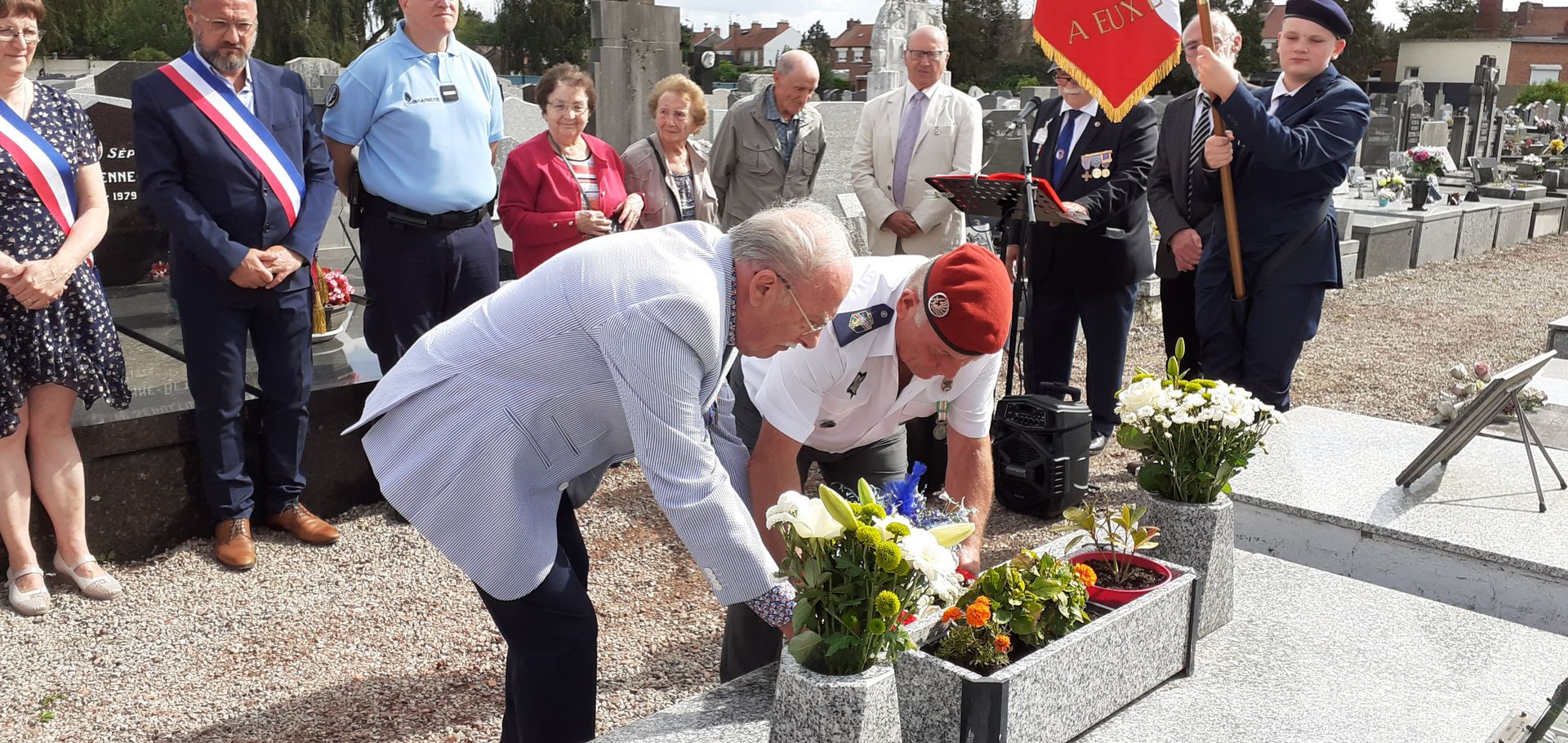 Dépôt d’une gerbe de fleurs par