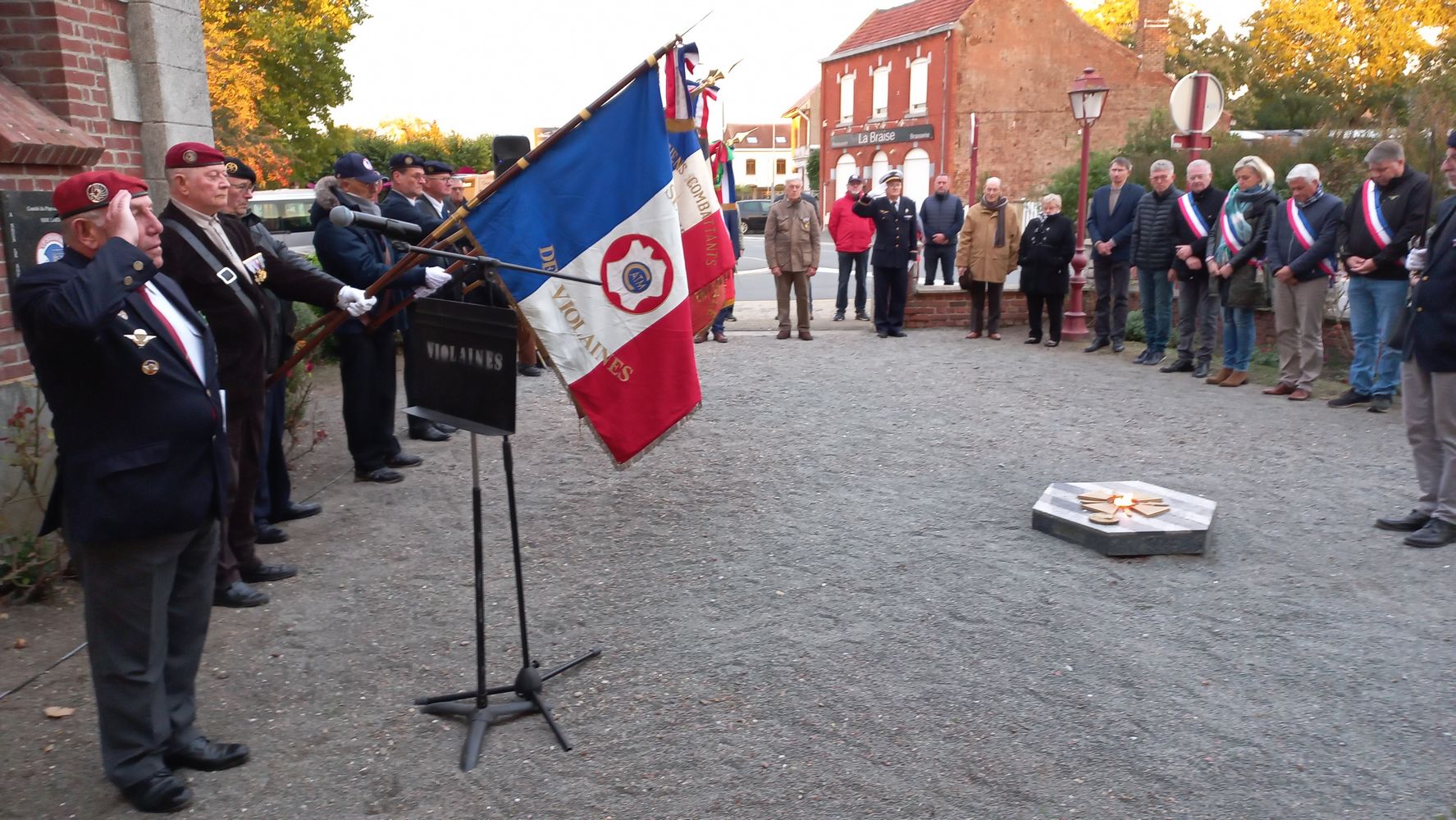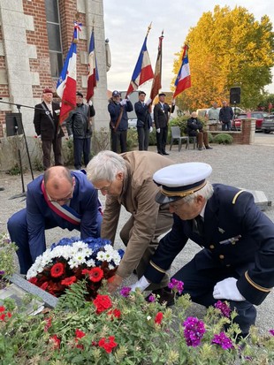 Dépôt de fleurs par Monsieur Jean-François Castell, Maire de Violaines,