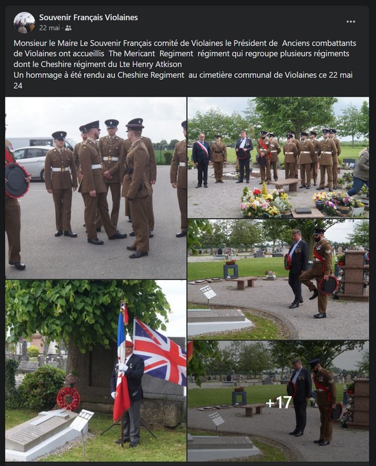 Mercredi 22 Mai 2024. Le Mercian Regiment rend hommage au Lieutenant Atkinson ainsi qu’à tous ses frères d’armes, morts aux combats du 16 au 22 octobre 1914.