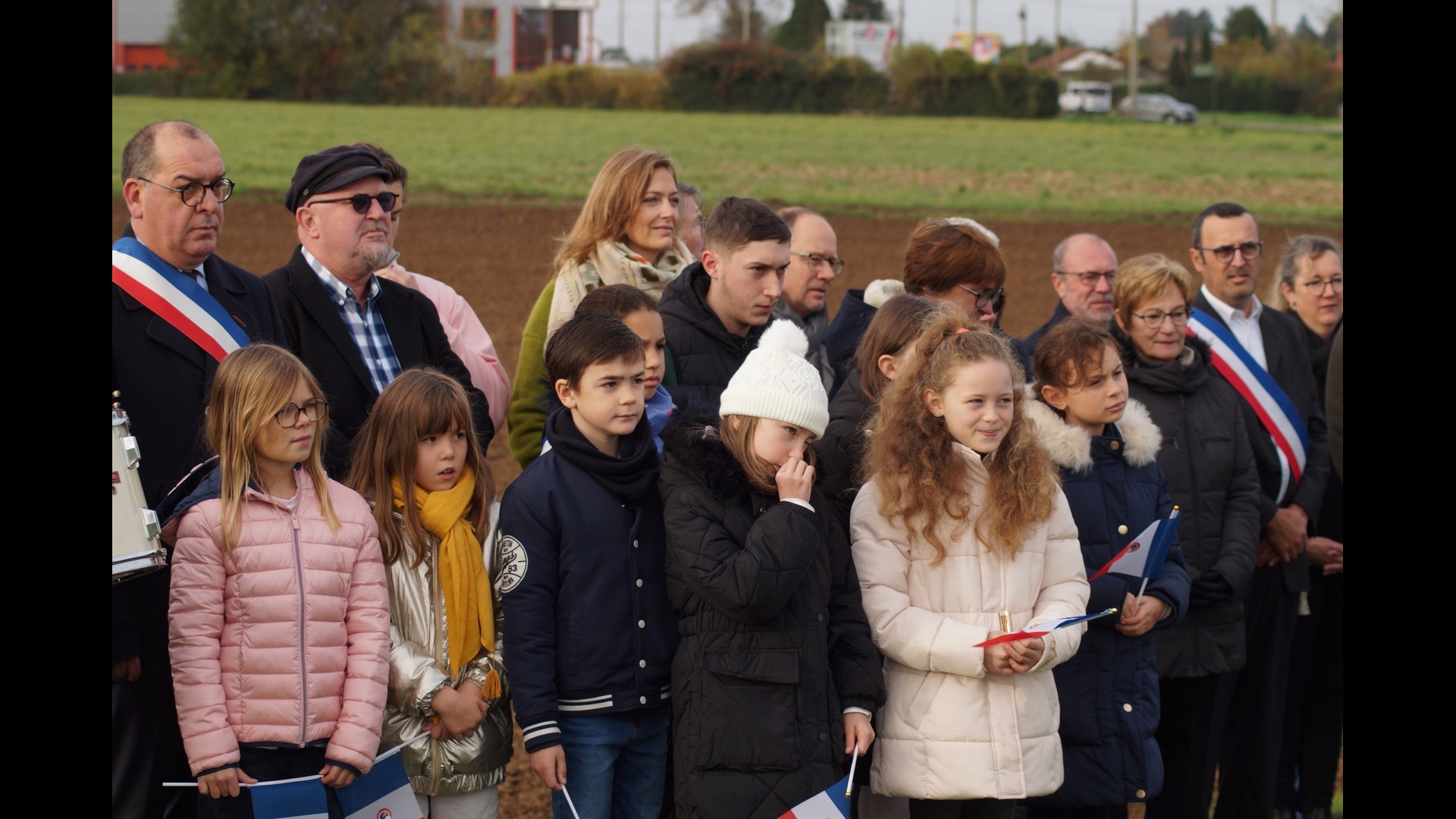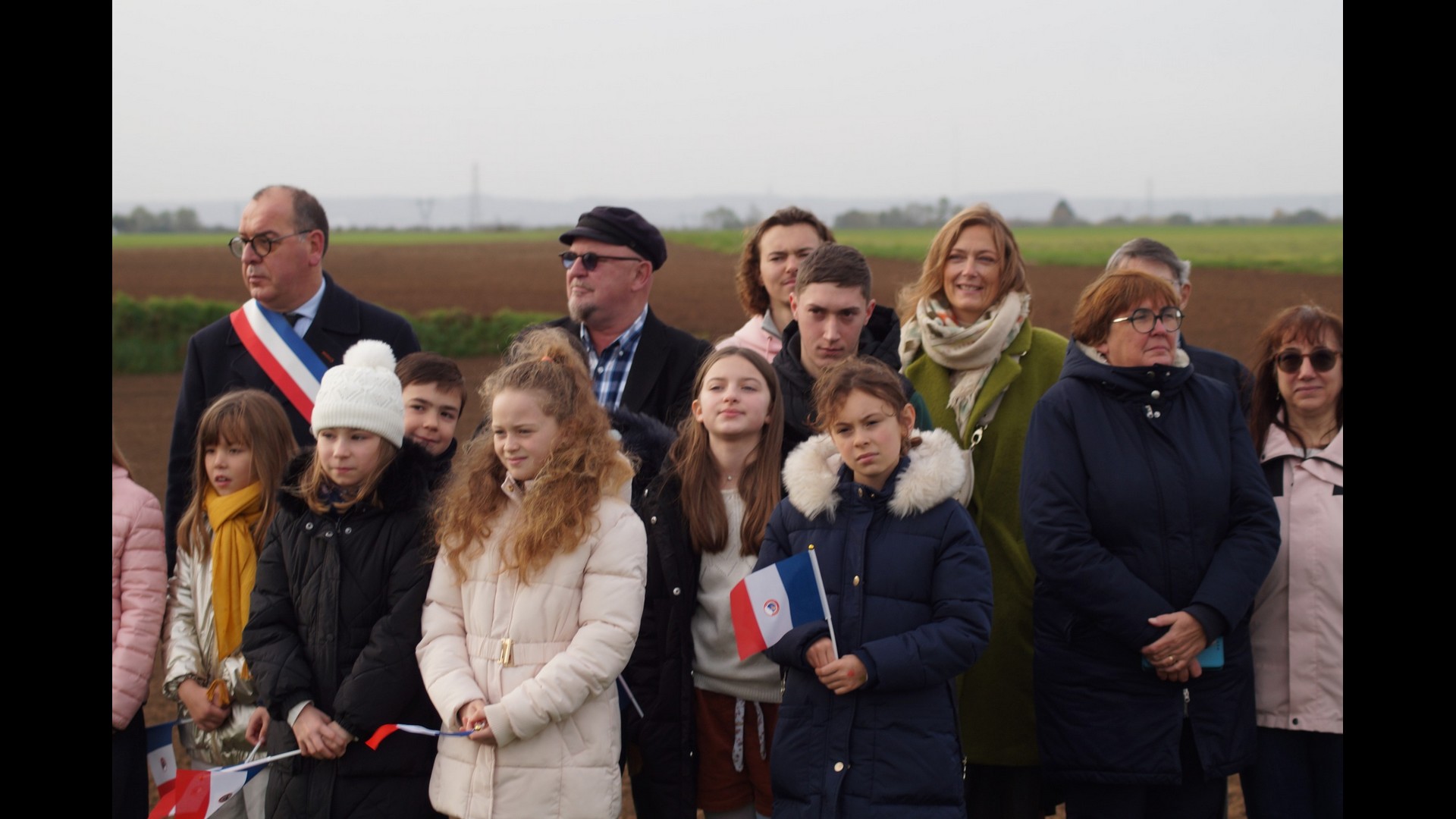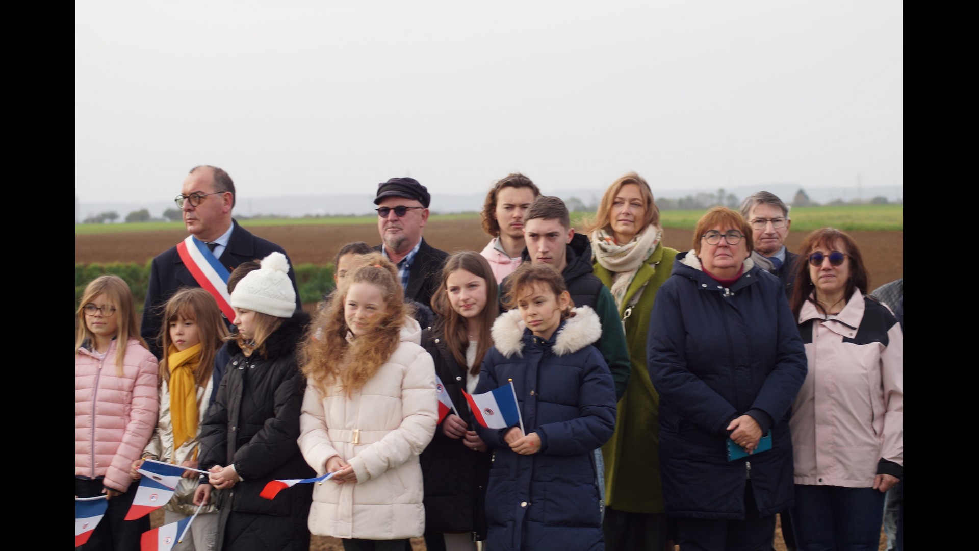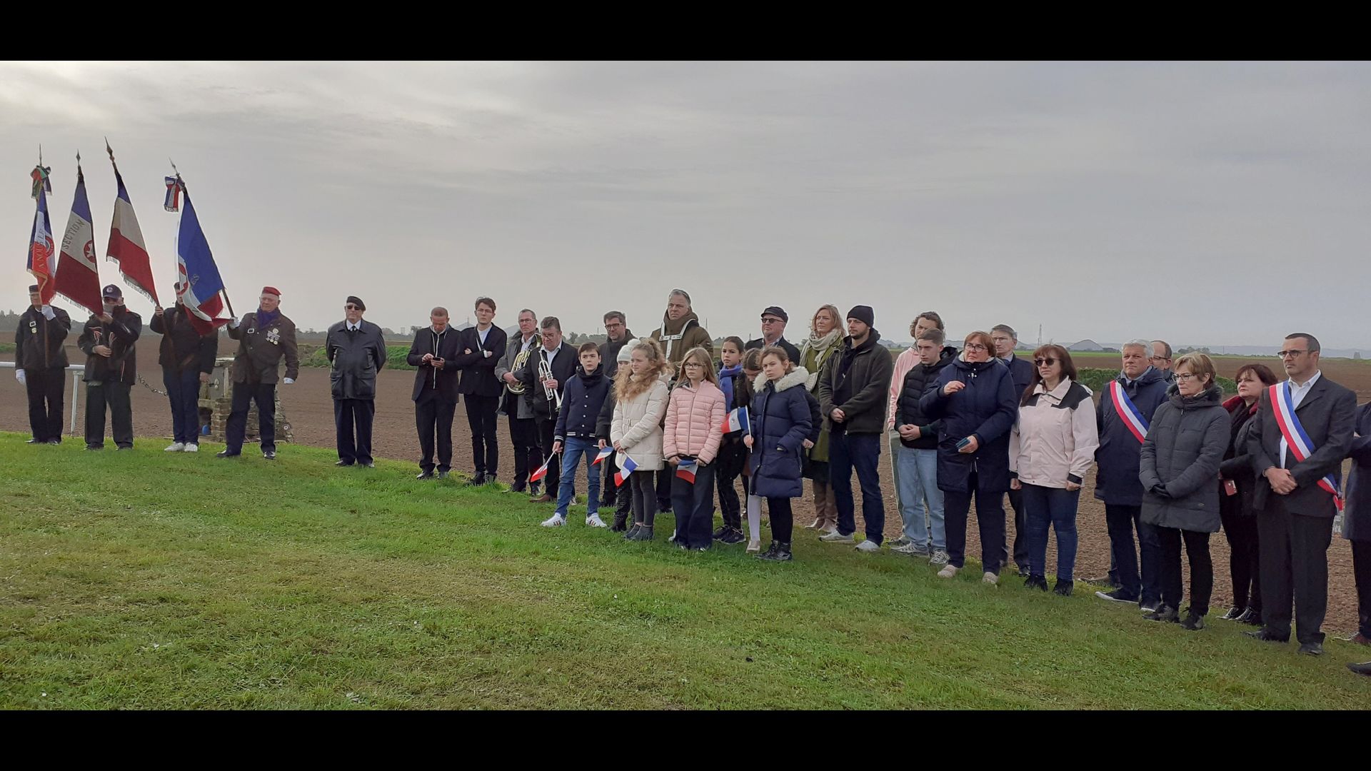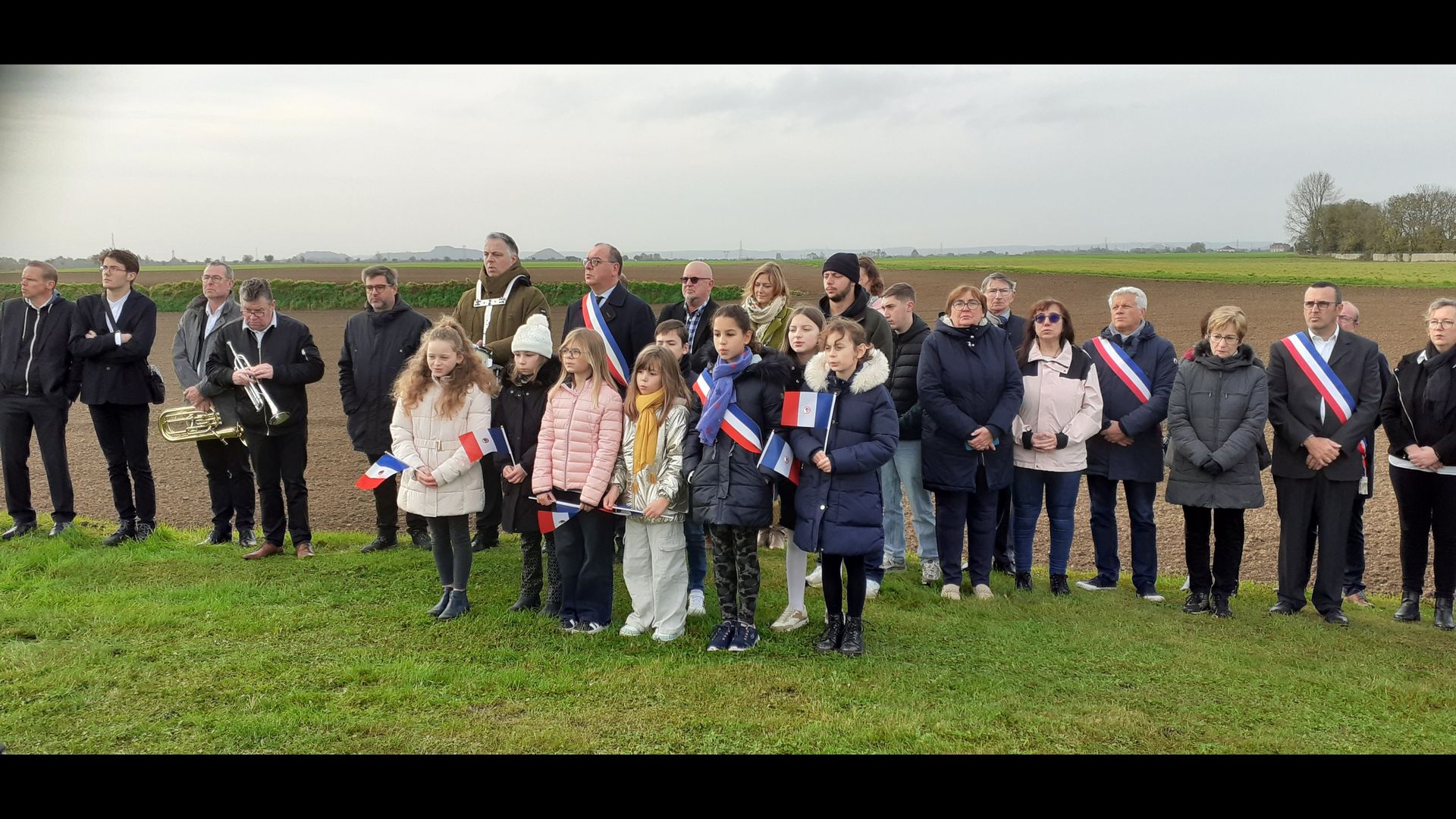 | Dépôt d’une gerbe de fleurs. Par Monsieur Jean-François Castell, Maire de Violaines, accompagné du CMJ de Violaines. |
